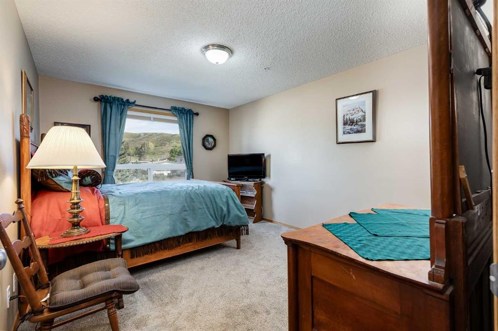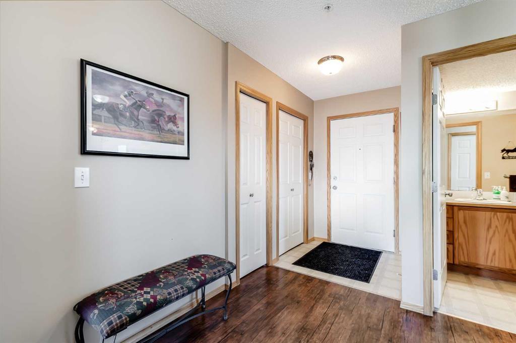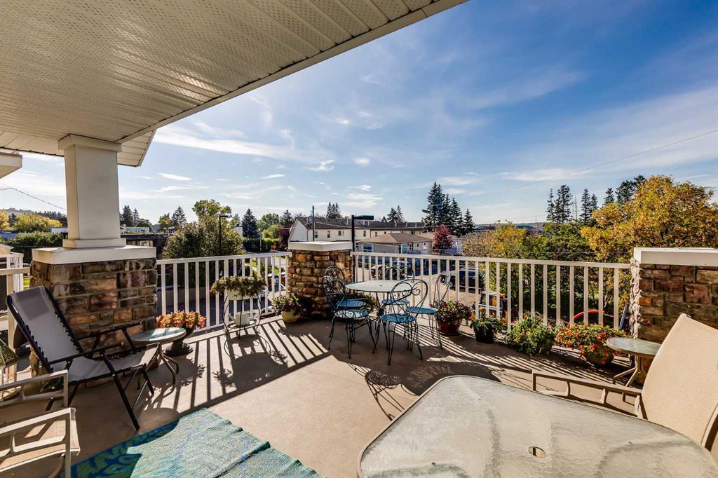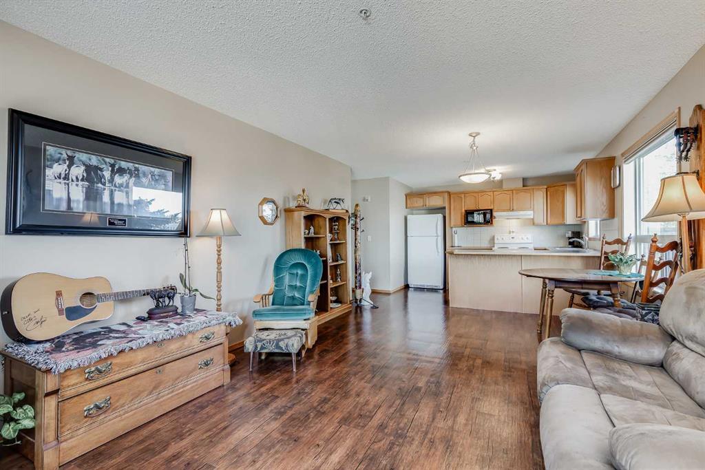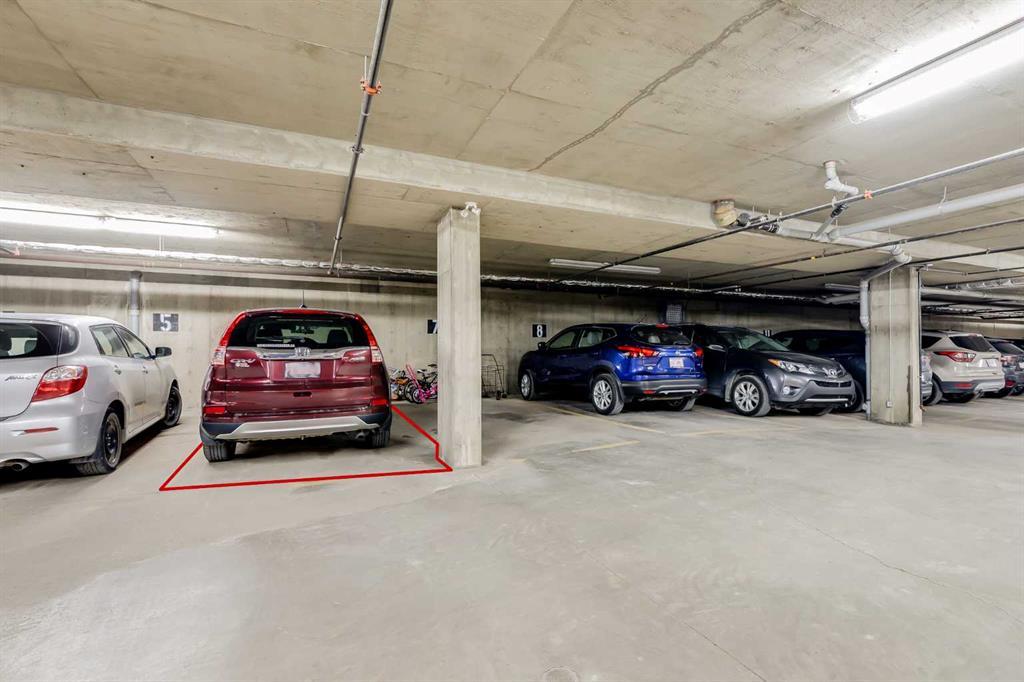 Welcome to the Heritage Building in Cochrane! This beautiful END UNIT 2 Bedroom and 2 Bath condo has it all! Check out all the many features of this incredible property that include; the large master bedroom with WALK IN closet and ENSUITE, a laundry room with extra storage space and NEW washer and dryer (Spring 2023), corner gas fireplace in the open concept living room to keep you warm and cozy on those chilly winter evenings, well appointed kitchen with plenty of counter space, NEW vinyl plank flooring in main areas and NEW carpet in the bedrooms, natural gas on the deck for your BBQ and A/C unit is included. Also comes with titled heated secure underground parking (#6) AND your own storage locker (#207). The building has many additional amenities that include; a Party Room to host family functions with a full kitchen area - FREE for use (book in advance), located conveniently on the 2nd floor too - just walk down the hall to take your meal there, to enjoy holiday gatherings, special occasions or a game night! There’s a large shared patio with flowers and outdoor seating areas to enjoy summer months, also many other indoor areas to enjoy quiet time and even a little library for sharing books with other residents. Affordable condo fees that include gas and water (you ONLY pay electricity on top of your condo fees). This property is move in ready and available for immediate possession. Make your appointment to view today! (id:22211)