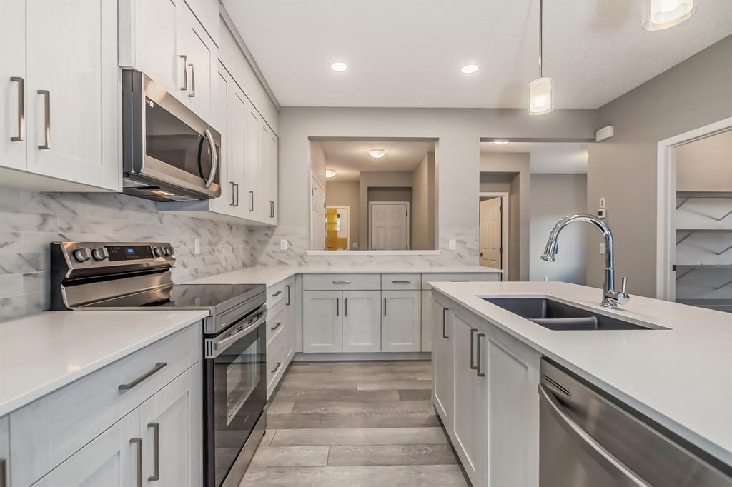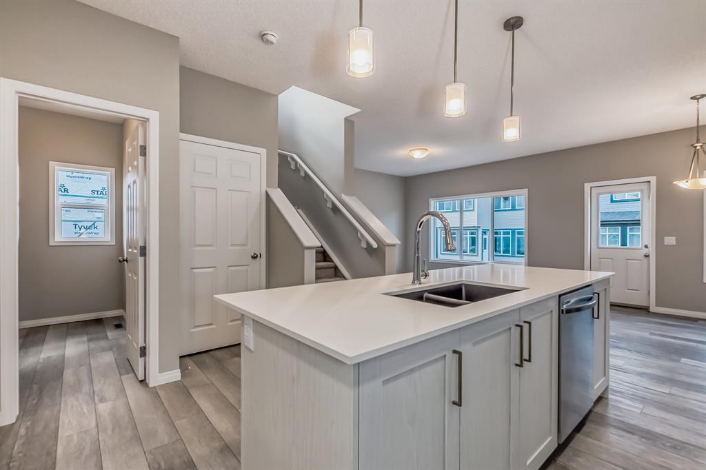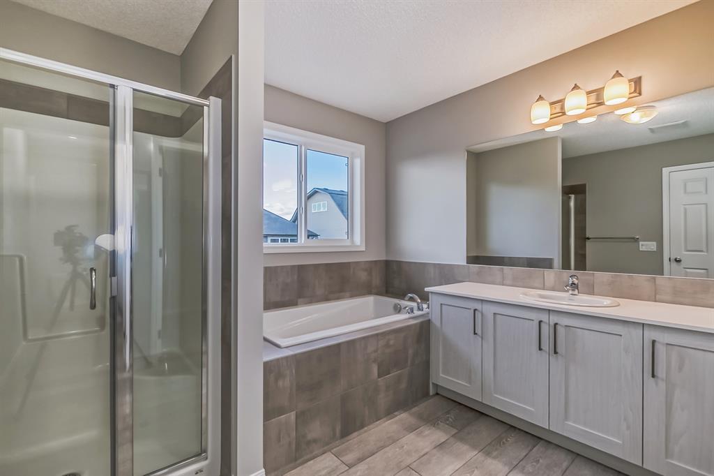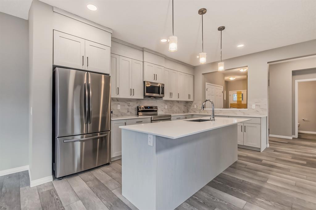 IMMEDIATE POSSESSION| BRAND NEW |OVER 2200 SQFT |NEW HOME WARRANTY | amazing 4 bedroom + bonus room home , potential the 5th bedroom on the main floor. This beautiful 2 story detached property located in the family friendly community of Heartland Cochrane. With a formal dining space could be turned to another bedroom on the main floor , the bright modern finished wide kitchen includes centre island, upgraded stainless steel Appliances, light colour quartz countertops and walk through pantry, full height kitchen cabinets with soft close doors/drawers. Main floor includes a bright living room allows tons of the nature sunshine comes into from the south facing back yard. The upper floor features 4 large bedrooms and a right size bonus room. The primary bedroom has large walk in closet and an elegant 4 piece ensuite. 3 more bedrooms with an additional 4-piece bath. and also a laundry room on the upper floor. A separate entrance will allow unlimited potential in the 9 foot high ceiling with 3 large windows unfinished basement.The basement is unfinished but has plumbing rough ins for future development.New home Warranty includes 1 yr comprehensive, 2 yrs heating, electric, plumbing, 7 yrs building envelope, 10 yrs structural. (id:22211)