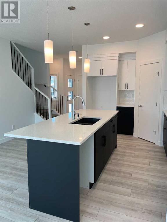 * SECONDARY SUITE OPPORTUNITY * DOUBLE FRONT DRIVE GARAGE. This gorgeous hillside home is located on a quiet street and backs north onto a future sports recreation area. The functional foyer has 2 closets and a bench with storage cubbies above the bench. As you move toward the rear of the home, you will be greeted by elegant wide plank flooring and metal spindles on the main floor staircase. Ceilings on the main floor are 9 feet high and the ceiling texture throughout the home is done in an upgraded California knockdown style. The great room is a perfect size for large family gatherings! This area has a large window so you can capture the views and also has a linear fireplace with a wrap around mantle. The nook is at the rear and features patio doors that lead out to a 100 sq. ft. deck! The wide open kitchen has so many upscale upgrades : quartz countertops, two tone soft close cabinets, extended island with eating bar, pendant lighting, Ortech Slim Lighting, oversized pantry and pots and pans drawers. The master retreat has an ensuite with quartz counters, gorgeous vinyl tile flooring and a 5 ft. wide stand up shower. The centralized bonus room is a great space for a home office or quaint TV space. The upper floor also features 2 other bedrooms, a linen closet, a third bathroom and a laundry area. The unfinished basement has been equipped with "Plumbing Rough-ins" for a future 4th bathroom, a future kitchen sink and future laundry area. (The basement has standard 8 ft. high foundation walls). The DOUBLE FRONT DRIVE GARAGE will keep your cars out of the weather and provide extra storage. Other included fine features are as follows : Triple pane windows, window covering package ( not on doors or in the basement or the stairwell window), upgraded ventilation system and a winter humidity control system. A SUPERB MODERN LIFESTYLE IN A PRIME SUMMIT LOCATION ! (Please note that photos are not of this exact home and certain components may not be included. T he sales staff will guide you through all particulars). RMS measurements taken from Builder's blueprints. Landscaping and fencing not included. No One Allowed On Site Without Builder Representative Present! A Secondary Suite Would Be Subject To Approval And Permitting By The Municipality. (id:22211)