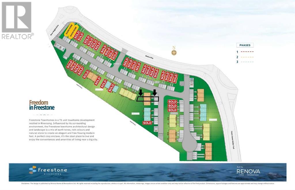 Welcome to Freestone! Expertly crafted by award winning builder Renova Homes, These brand new townhomes are ideally located at the corner of River Heights Drive & Riviera Way, close to all of Cochrane's main amenities & provides easy access to Hwy 22 & 1A for commuters. Freestone offers large fenced yards for your kids (or dogs!) to enjoy, nearly 1300 Sq Ft of open concept living on 2 floors, with 3 bedrooms & 2 1/2 baths, plus an option to finish the basement, which adds another bedroom, full bath, & Rec Room, & close to 500 Sq Ft of additional living space! Upscale finishes include luxury vinyl plank flooring, quartz counter tops, etc! Freestone townhomes offer great value starting at only $430,150 + GST! Visit the sales center, open 2-8pm Mon-Wed, 12-5pm Sat/Sun & Holidays. Pictures are from the Show Home. (id:22211)