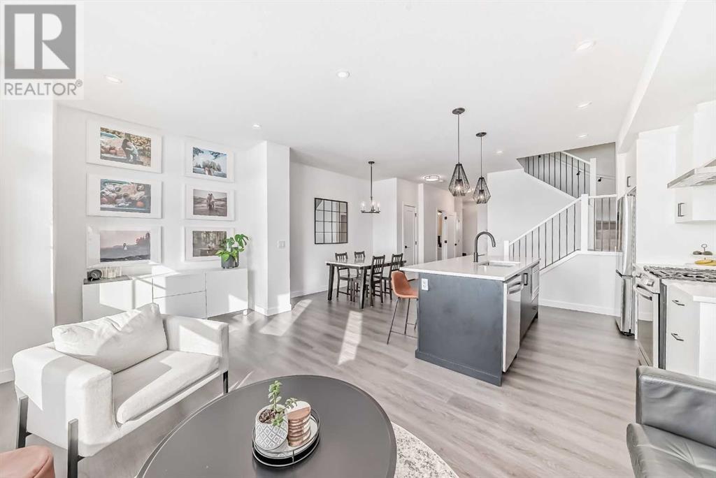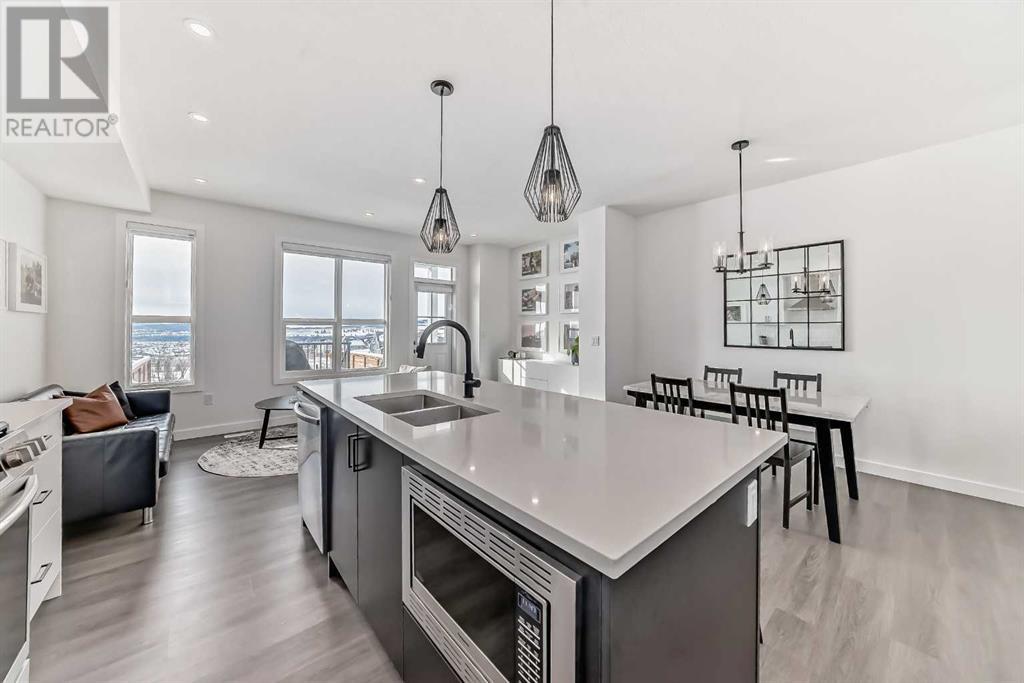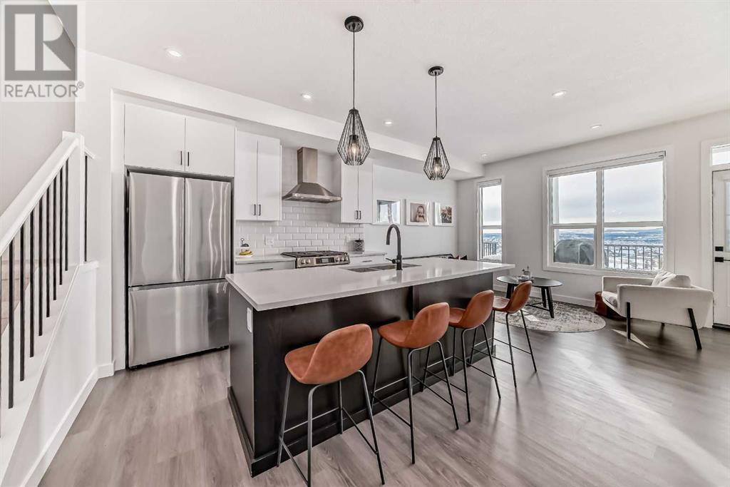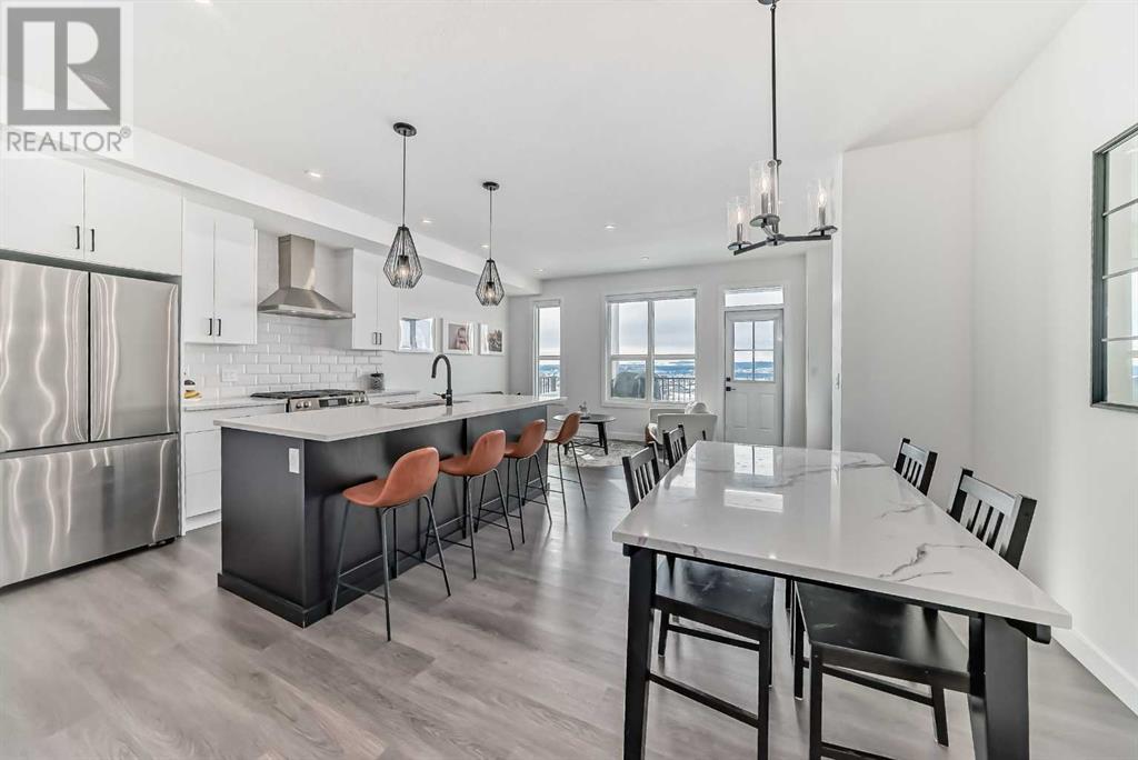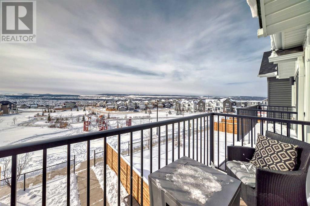 Indulge in luxury living in this remarkable townhome, nestled within the Heritage Hills community, offering the perfect blend of comfort and elegance. Situated against a backdrop of green space and a playground, this home presents an idyllic setting for family living with just over 1400 sq ft of living space. Step in to the open-plan layout of the main level, featuring a spacious dining area seamlessly connected to a stunning kitchen. Boasting stainless steel appliances, a sizable kitchen island, and abundant space for family and friends. The warm and inviting living room overlooks the backyard, providing direct access to your South facing deck, creating an ideal space for relaxation and entertainment. A convenient 2-piece bathroom completes this level. To the upper level, where the wonderful finishes continue, with a generously sized primary suite, walk-in closet and 5-piece bathroom featuring a double vanity. Step onto the balcony, offering stunning views of the town of Cochrane, perfect for savoring your morning coffee in peace. Two additional bedrooms and a well-appointed laundry room round out this level, providing convenience and functionality. The fully finished basement offers another 467 sq ft of living space, and is compete with spacious family room, great for movie nights and relaxation, complemented by a convenient 4-piece bathroom. An additional bedroom, currently utilized as a gym, offers flexibility to suit your lifestyle needs. Heritage Hills offers a 45 minute drive West to the mountains, and Cochrane just a 5 minute drive away, with access to top-notch amenities and recreational facilities, schools and the wonderful Bow River. Don't miss the chance to make this exquisite townhome your own. Schedule a viewing today and experience the epitome of luxury living! (id:22211)