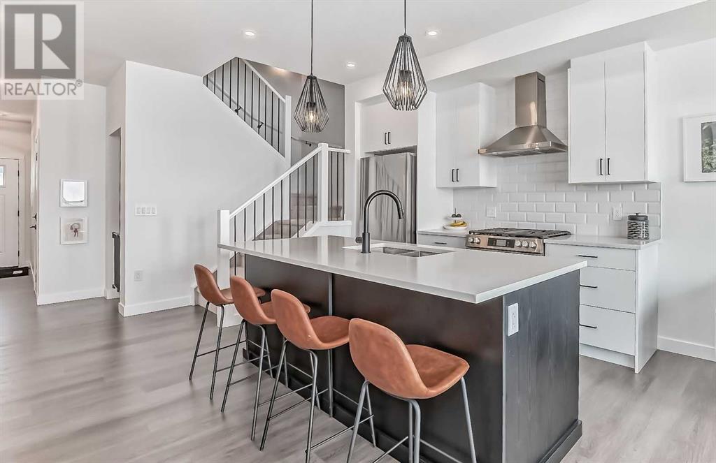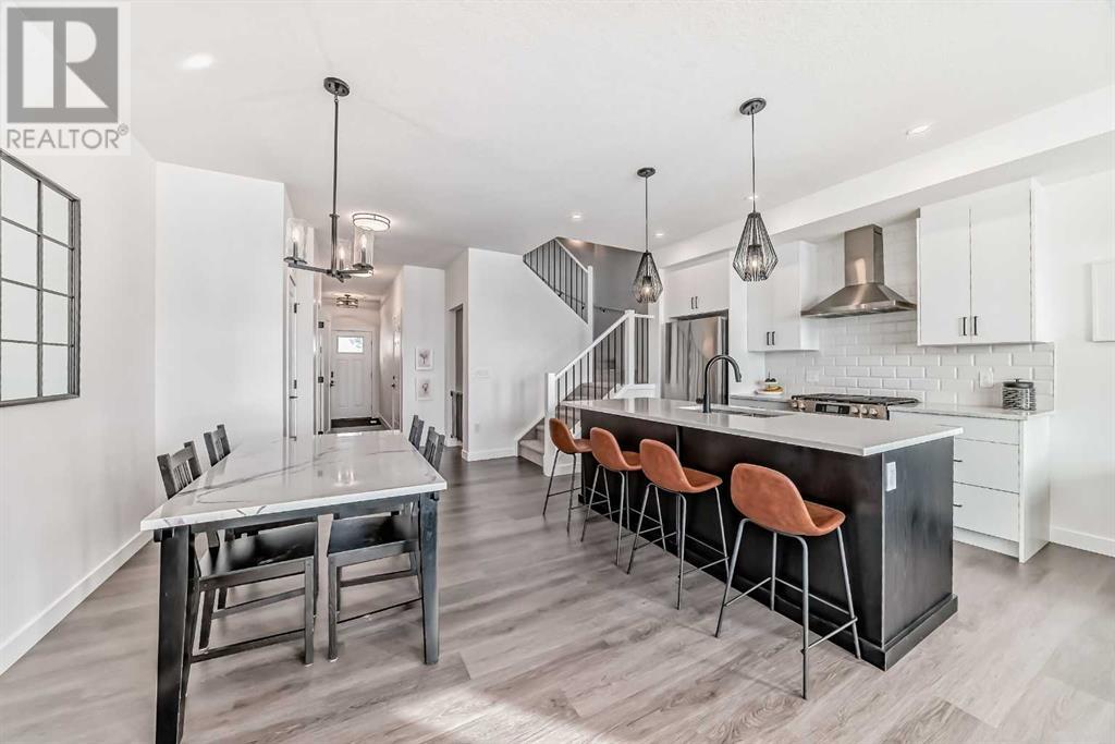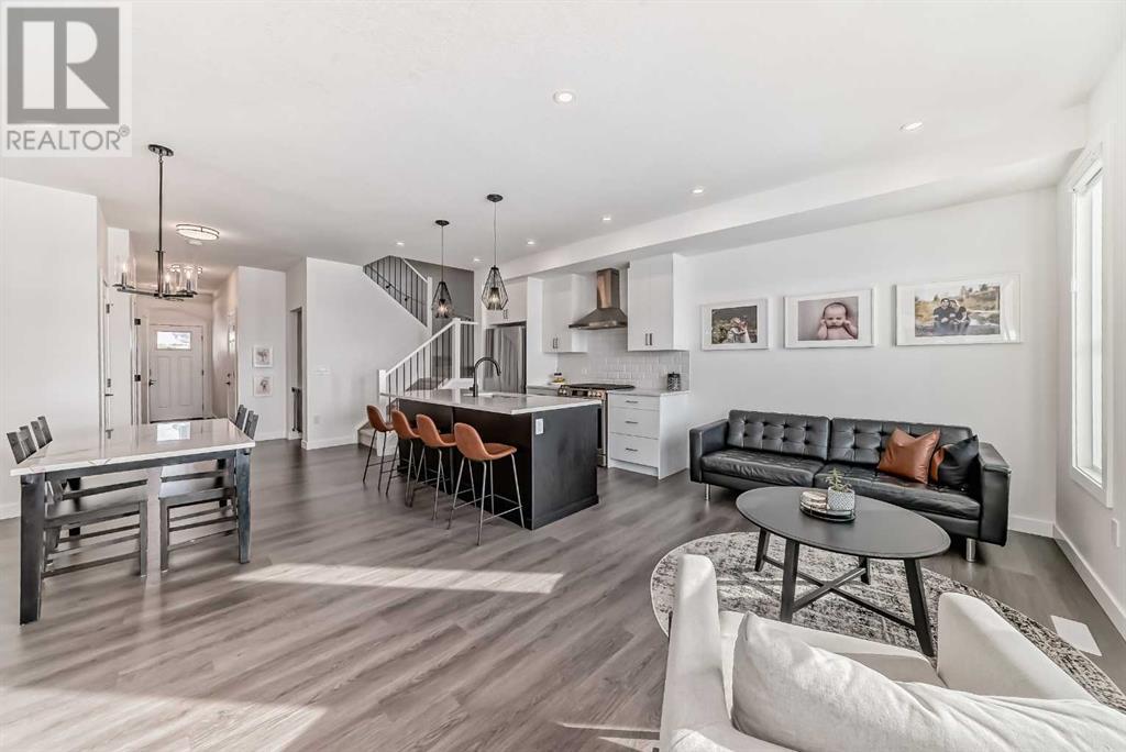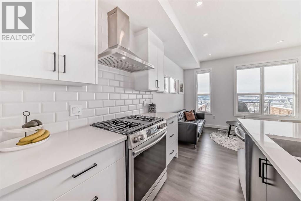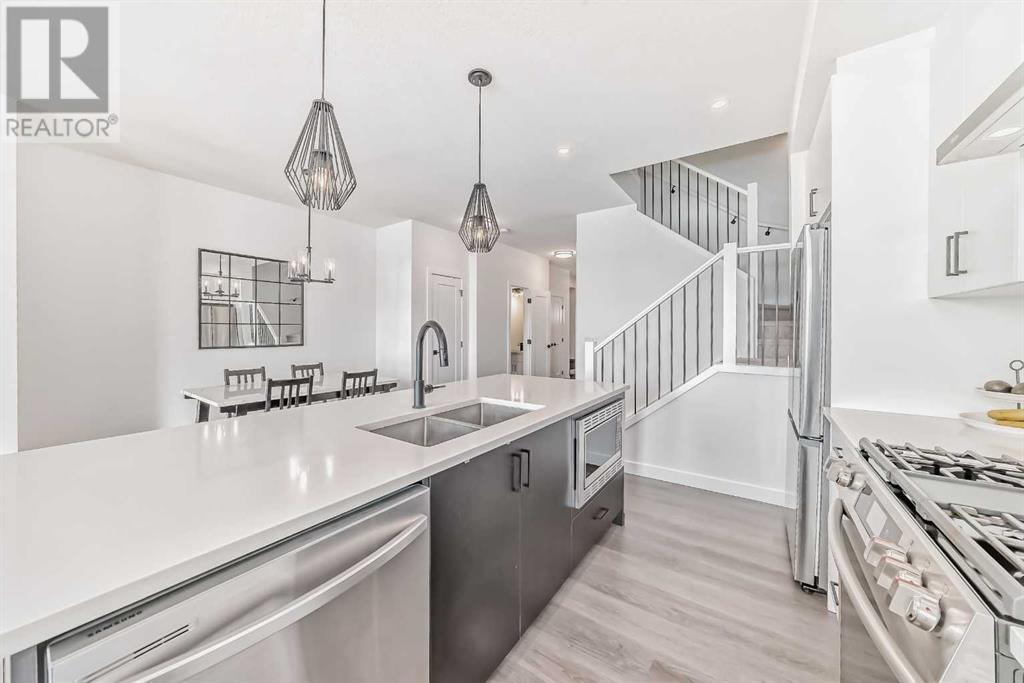 Indulge in luxury living in this remarkable townhome, nestled within the Heritage Hills community, offering the perfect blend of comfort and elegance. Situated against a backdrop of green space and a playground, this home presents an idyllic setting for family living with just over 1400 sq ft of living space. Step in to the open-plan layout of the main level, featuring a spacious dining area seamlessly connected to a stunning kitchen. Boasting stainless steel appliances, a sizable kitchen island, and abundant space for family and friends. The warm and inviting living room overlooks the backyard, providing direct access to your South facing deck, creating an ideal space for relaxation and entertainment. A convenient 2-piece bathroom completes this level. To the upper level, where the wonderful finishes continue, with a generously sized primary suite, walk-in closet and 5-piece bathroom featuring a double vanity. Step onto the balcony, offering stunning views of the town of Cochrane, perfect for savoring your morning coffee in peace. Two additional bedrooms and a well-appointed laundry room round out this level, providing convenience and functionality. The fully finished basement offers another 467 sq ft of living space, and is compete with spacious family room, great for movie nights and relaxation, complemented by a convenient 4-piece bathroom. An additional bedroom, currently utilized as a gym, offers flexibility to suit your lifestyle needs. Heritage Hills offers a 45 minute drive West to the mountains, and Cochrane just a 5 minute drive away, with access to top-notch amenities and recreational facilities, schools and the wonderful Bow River. Don't miss the chance to make this exquisite townhome your own. Schedule a viewing today and experience the epitome of luxury living! (id:22211)