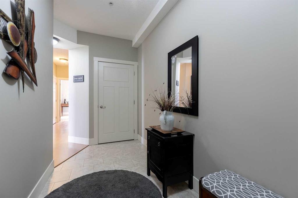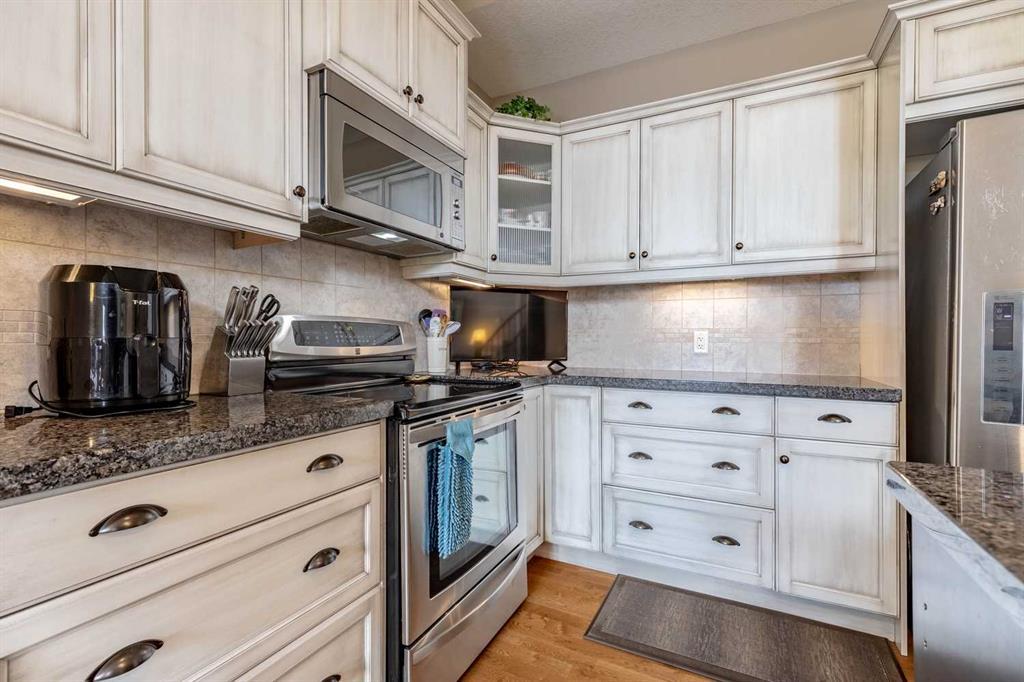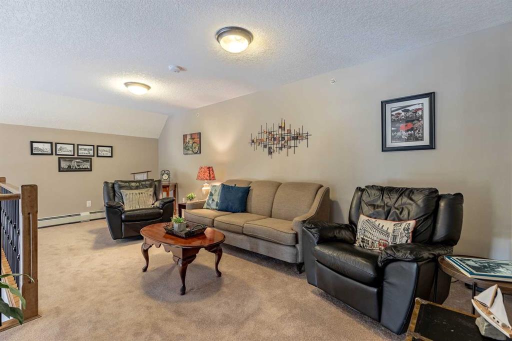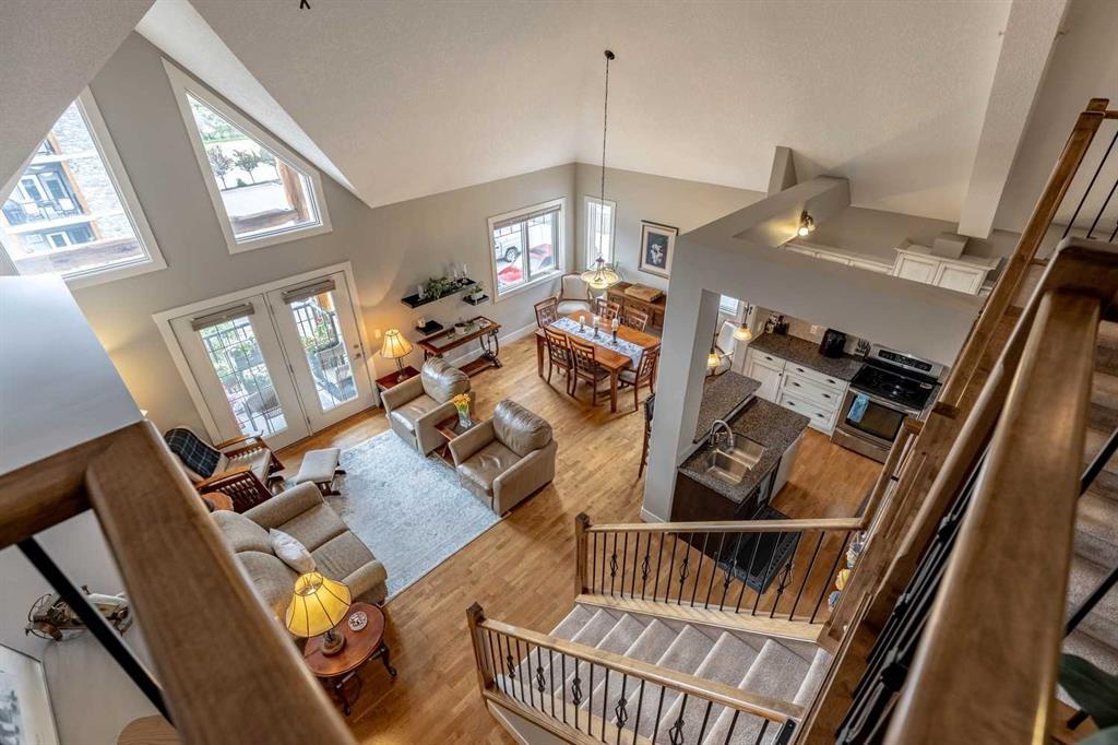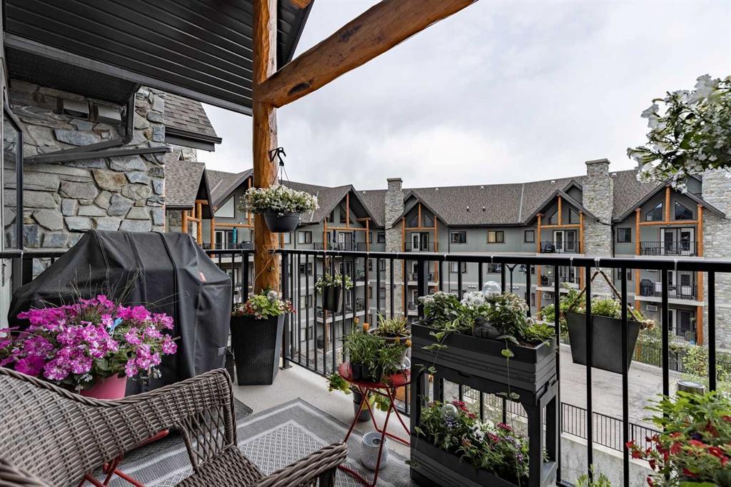 Welcome to the Lofts on the Bow, where upscale living meets tranquility in the heart of Cochrane, just steps from the river. Situated on the top floor of this coveted 55+ adult living building, this spacious unit offers a luxurious and comfortable setting with its impressive features and a prime location. With over 1400 square feet of living space, this unit provides an abundance of natural light and views of the green space to the south. Step inside to discover a thoughtfully designed floor plan that seamlessly combines style and functionality. The unit features two generously sized bedrooms and two modern bathrooms, offering privacy and convenience for residents and their guests. The master suite presents a serene retreat with ample closet space and a well-appointed ensuite bathroom, complete with elegant fixtures and finishes. The open-concept living area is perfect for entertaining or simply relaxing in style. The gourmet kitchen is a chef's dream, featuring sleek countertops, a large island with a breakfast bar, and stainless-steel appliances. Adjacent to the kitchen, the dining area and living room flow together seamlessly, creating a warm and inviting atmosphere. Expansive windows flood the living space with natural light, enhanced by the vaulted ceilings. From here, step out onto the private balcony with gas BBQ hookup and storage locker. This east facing balcony is perfect for taking in your morning coffee, and the reserve land to the south often provides views of local wildlife. The upstairs loft area is great for a number of uses including guest space, office, extra living room and more. Residents of the Lofts on the Bow have exclusive access to a range of amenities designed to enhance their lifestyle. Take advantage of the fitness center, where you can stay active and maintain your health, or gather with friends and neighbors in the communal lounge area. Don't miss this incredible opportunity to own a top floor unit in the Lofts on the Bow building, o ffering luxurious living in a 55+ adult community. Schedule your private viewing today and discover a new level of comfort and sophistication. (id:22211)