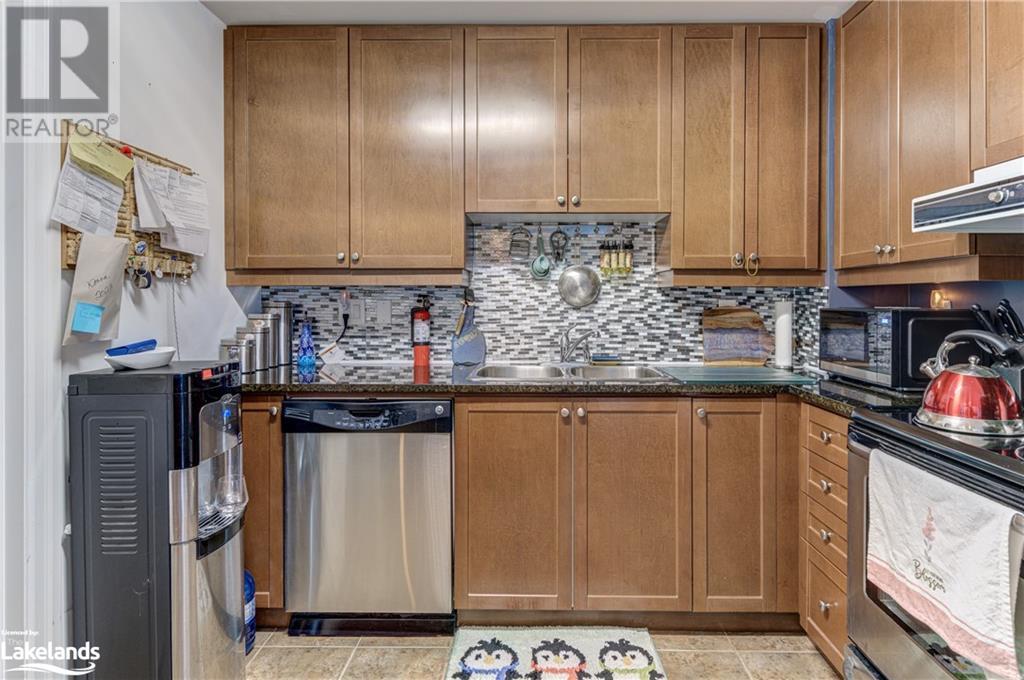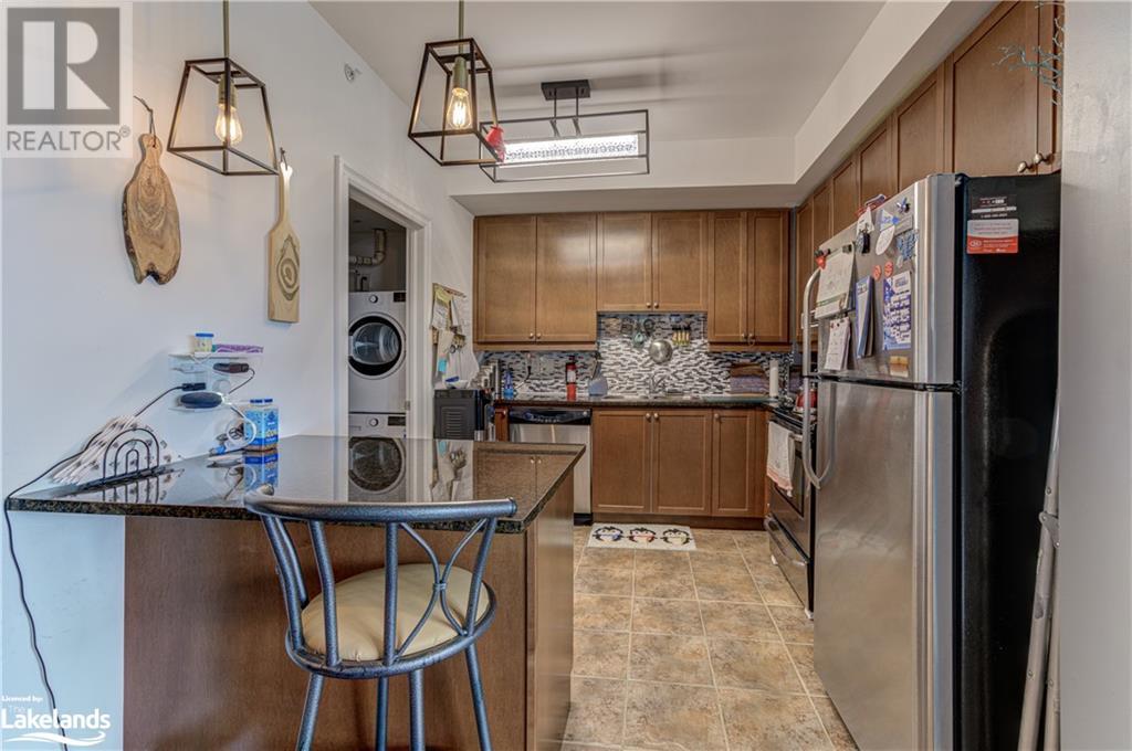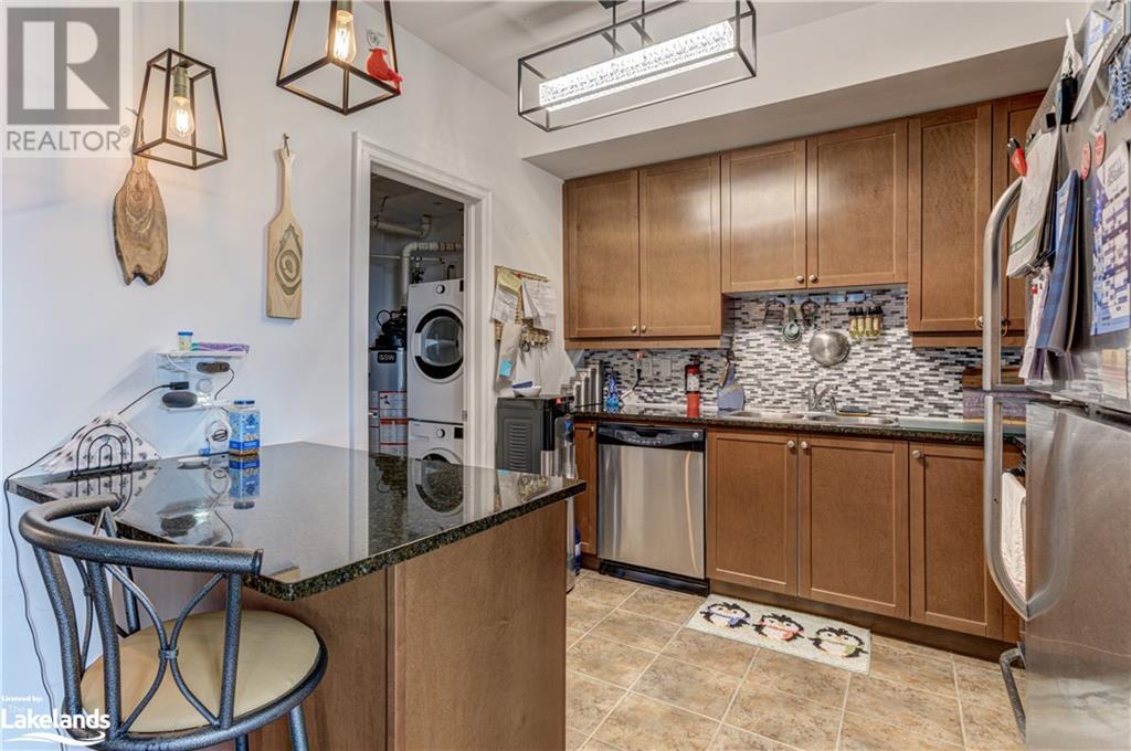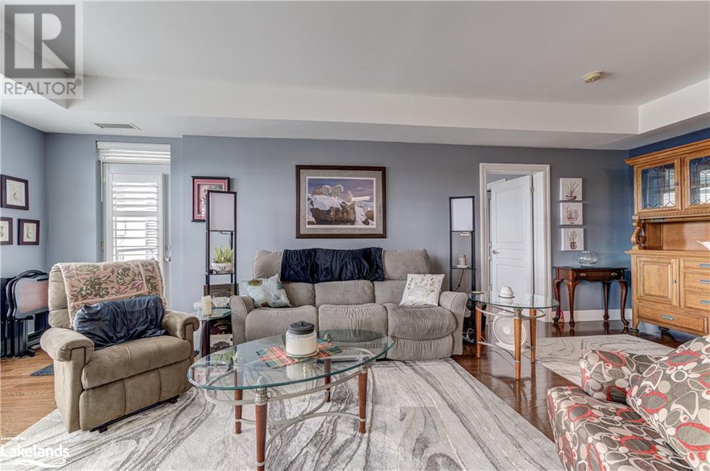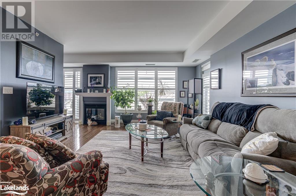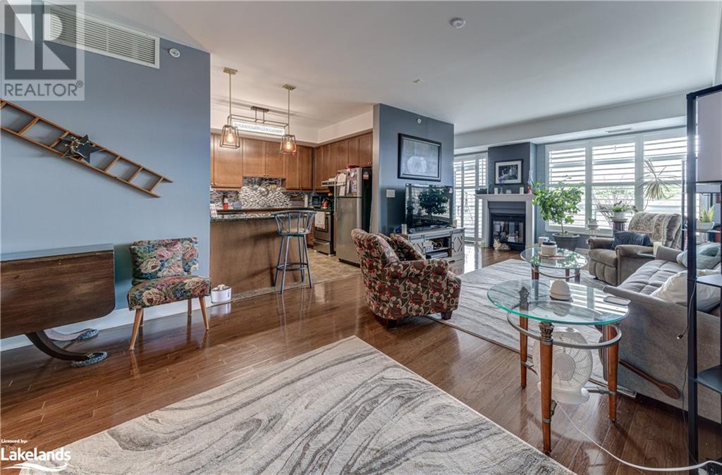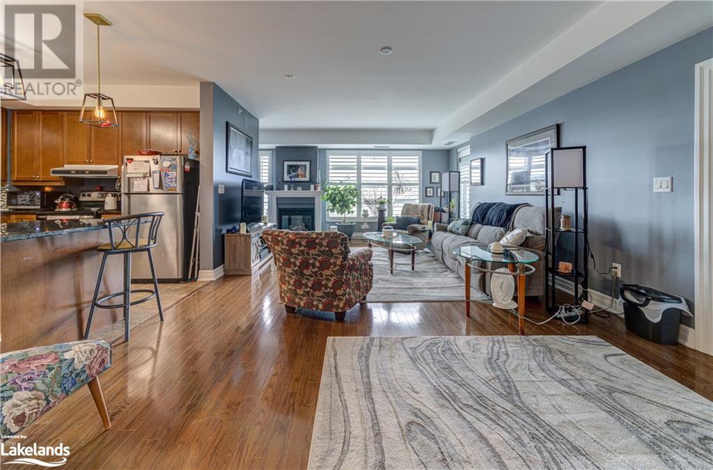 Welcome to The Shipyards! Beautiful west-facing 3rd floor unit within the 3-storey building in this desirable downtown condo waterfront community located on the spectacular Collingwood waterfront. Features elegant finishes, 9 foot ceilings, engineered hardwood flooring, Kitchen features cherry cabinet doors, granite countertops, stainless steel appliances, California Shutters throughout, 2 balconies overlooking spectacular views of Blue Mountain. Primary bedroom boasts a spacious walk-in closet and 5-piece ensuite bath with walk in tub. Large den area features sliding glass door to balcony, and is currently being used as a second bedroom. Includes secured underground parking space and storage locker. Main floor lobby with security system, party room with kitchen and outdoor BBQ. Features of the building include elevator, canoe/kayak room, and ski/bike room. Amenities are within walking distance! Waterfront promenade just around the corner from your front door! Collingwood has something to offer everyone with trails, shopping, boating, swimming, golf, skiing, and just a short drive to Blue Mountain and Wasaga Beach. (id:22211)