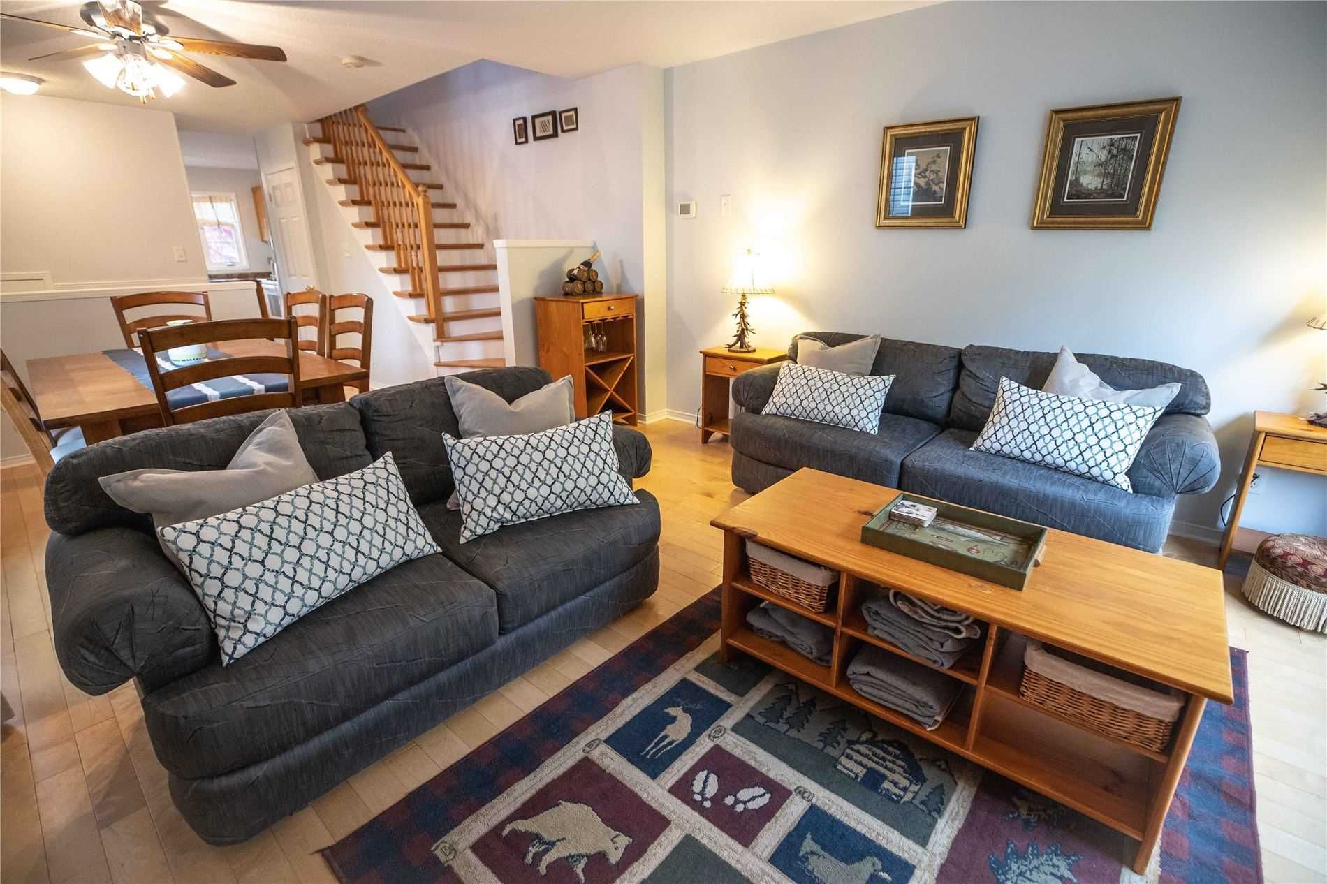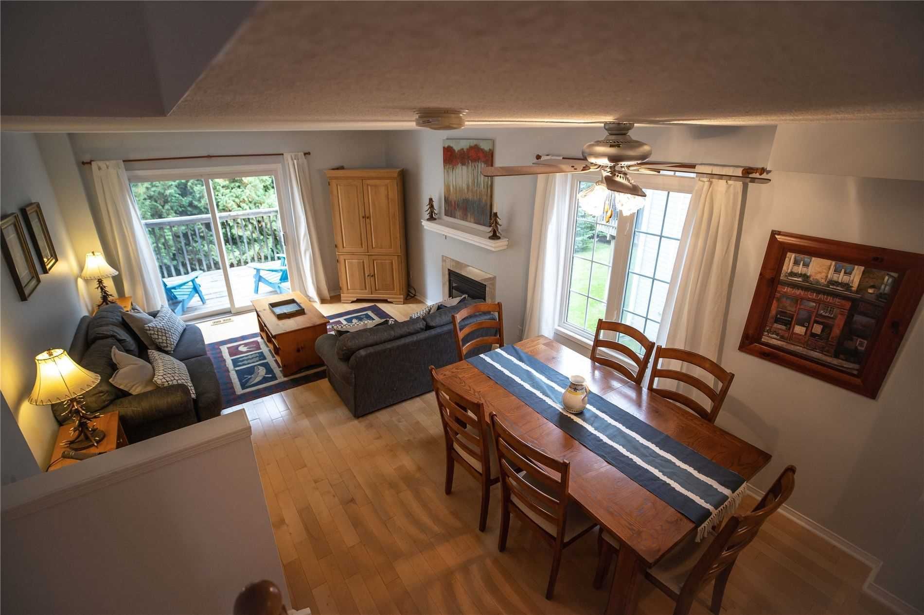 Welcome to 4 Season Lifestyle in Georgian Bay. Well maintained End-Unit Townhome is Suited for Fulltime Living/Weekend Retreat/Rental Investment. Spacious Main Floor with Eat-in Kitchen, Open Concept, Natural Light, Maple Hardwood Floors in Living Room with Gas Fireplace & Walkout to Private Deck, Upper Level with 2 Spacious Bedrooms & Updated Floors. Finished Lower Level with Walkout to Tree Lined Backyard, Ideal as in-law Suite with 4pc Bath.Amazing Location: Skiing, Hiking/Bike Trails, Golf, Marina, Shopping & Dining.