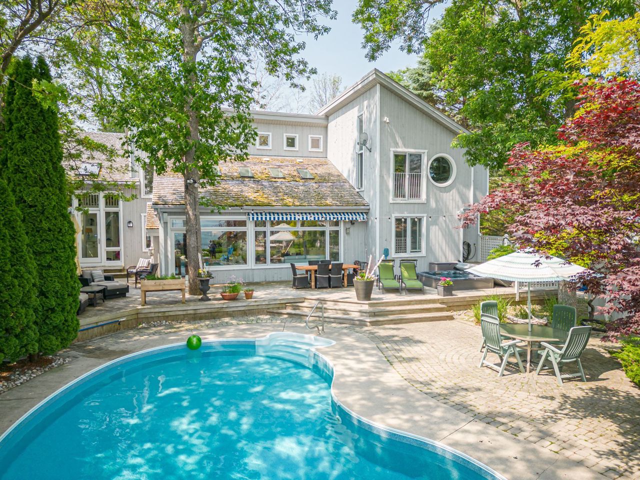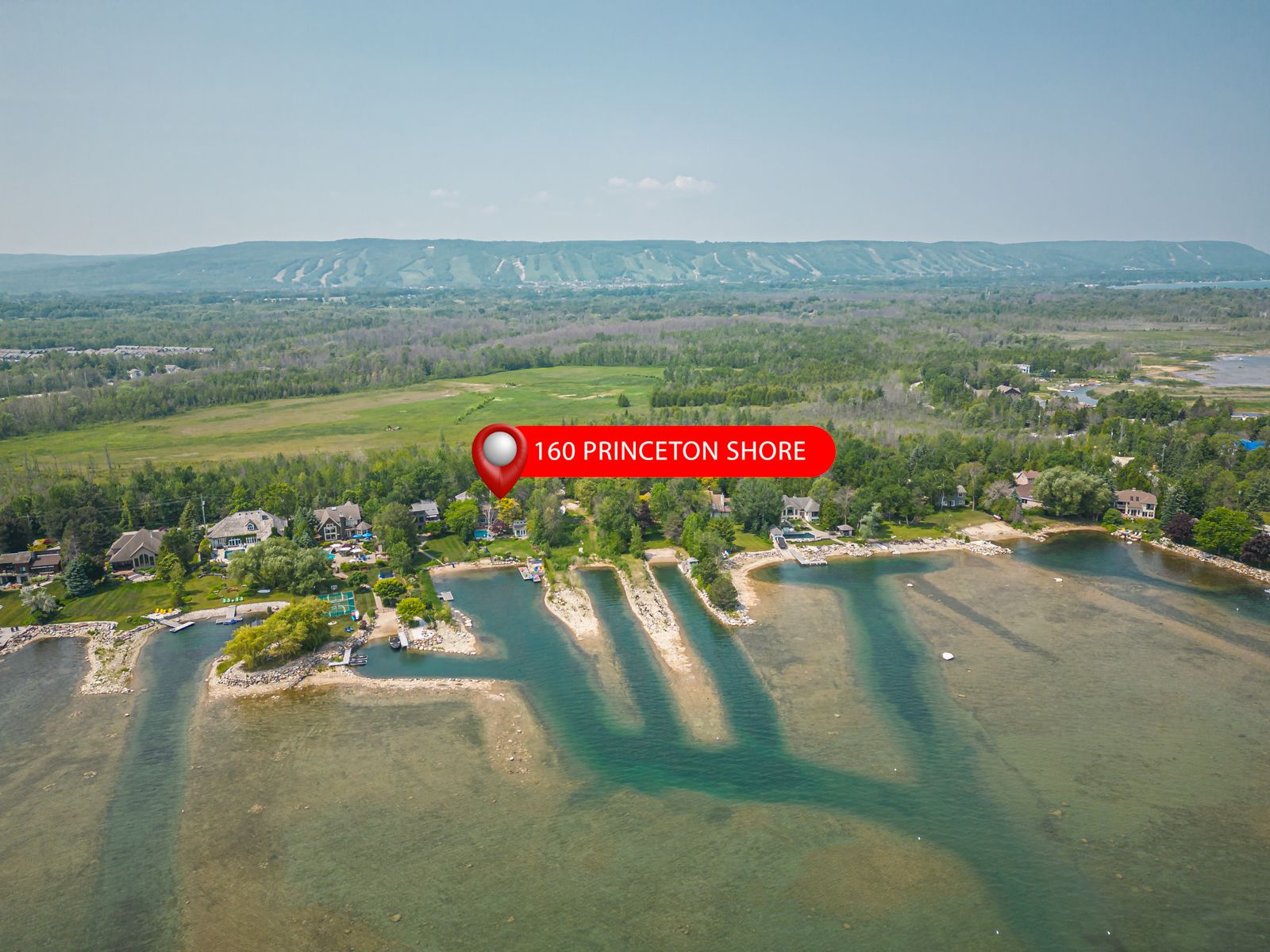 Welcome to one of Collingwood's most coveted residential waterfront locations. 160 Princeton Shores offers the best of four season Georgian Bay waterfront living being just 5 minutes to downtown Collingwood and the ski hills, as well as amazing waterfront amenities in your backyard.THE HOME: Upon entering the front door you are going to be mesmerized by the views from the open living room with gas fireplace, dining room, and kitchen. A bright open space with large windows that bring the views of the bay and your backyard oasis inside.The main floor offers all of this as well as two bedrooms, a full bath +2pc, laundry room with outside entrance to the deck for when coming in from the lake or pool, and a mud room off the inside garage entrance. Upstairs offers a primary bedroom with ensuite, a second bedroom also with ensuite, and a spacious family room with fireplace. The landscaped backyard boasts an in-ground pool, fully fenced and deep water protected dock, and amazing bay views