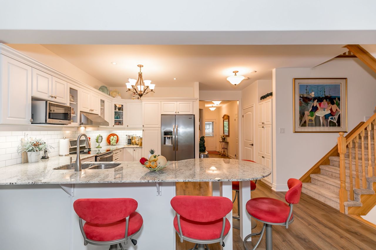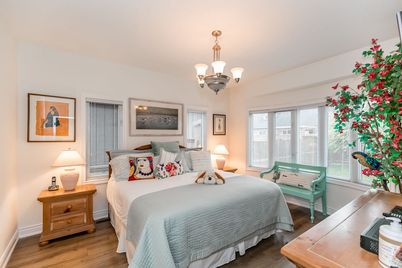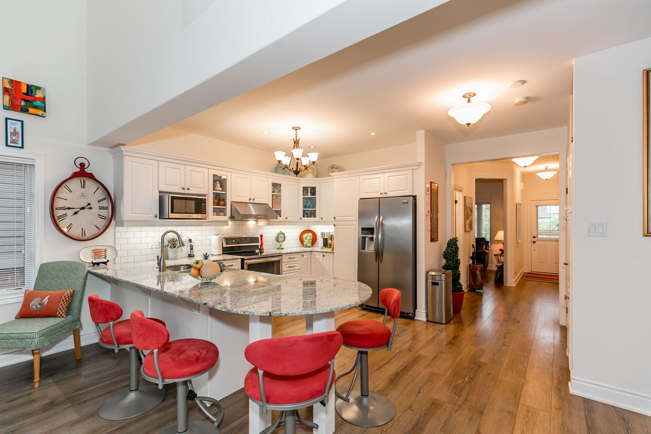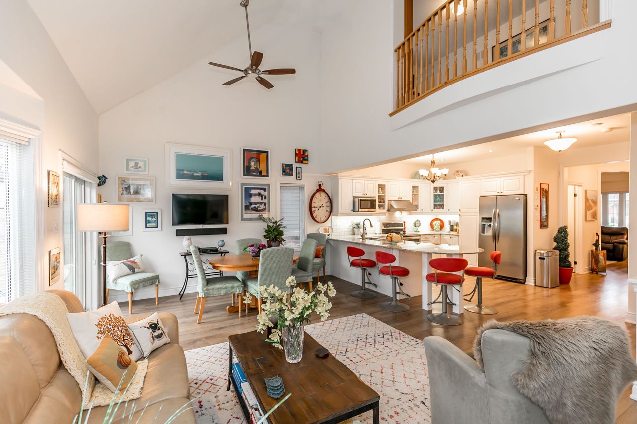 Immaculate Bungaloft Located in Pretty River Estates. The Alpine model offers a spacious floor plan with main floor primary and ensuite, second bedroom currently used as a den, vaulted ceiling, and loft with two additional bedrooms and full bath. Inside you will find a beautiful open concept with engineered wood floors and gas fireplace. The kitchen includes stainless steel appliances, pantry with pull out shelving, crown moulding, pot lights accented by under mount lighting. The unfinished lower level is pristine and ready to make it your own. Egress window, painted flooring, large cold seller and backwater valve system. Main floor laundry with walk out to the 2 car garage with garden door to the yard and the bonus of no sidewalk. You will be impressed with wood privacy fencing, grand 26’ x 20’ deck, 4 Japanese Willows and 12’ x 12’ aluminum hardtop gazebo. Walking distance to trails, park, dog park and schools. Minutes from town, beaches, golf and ski clubs.