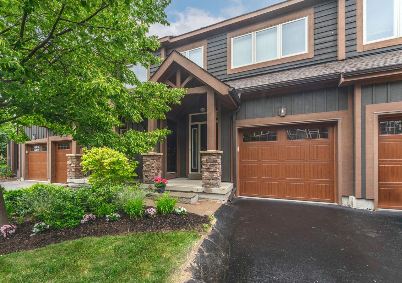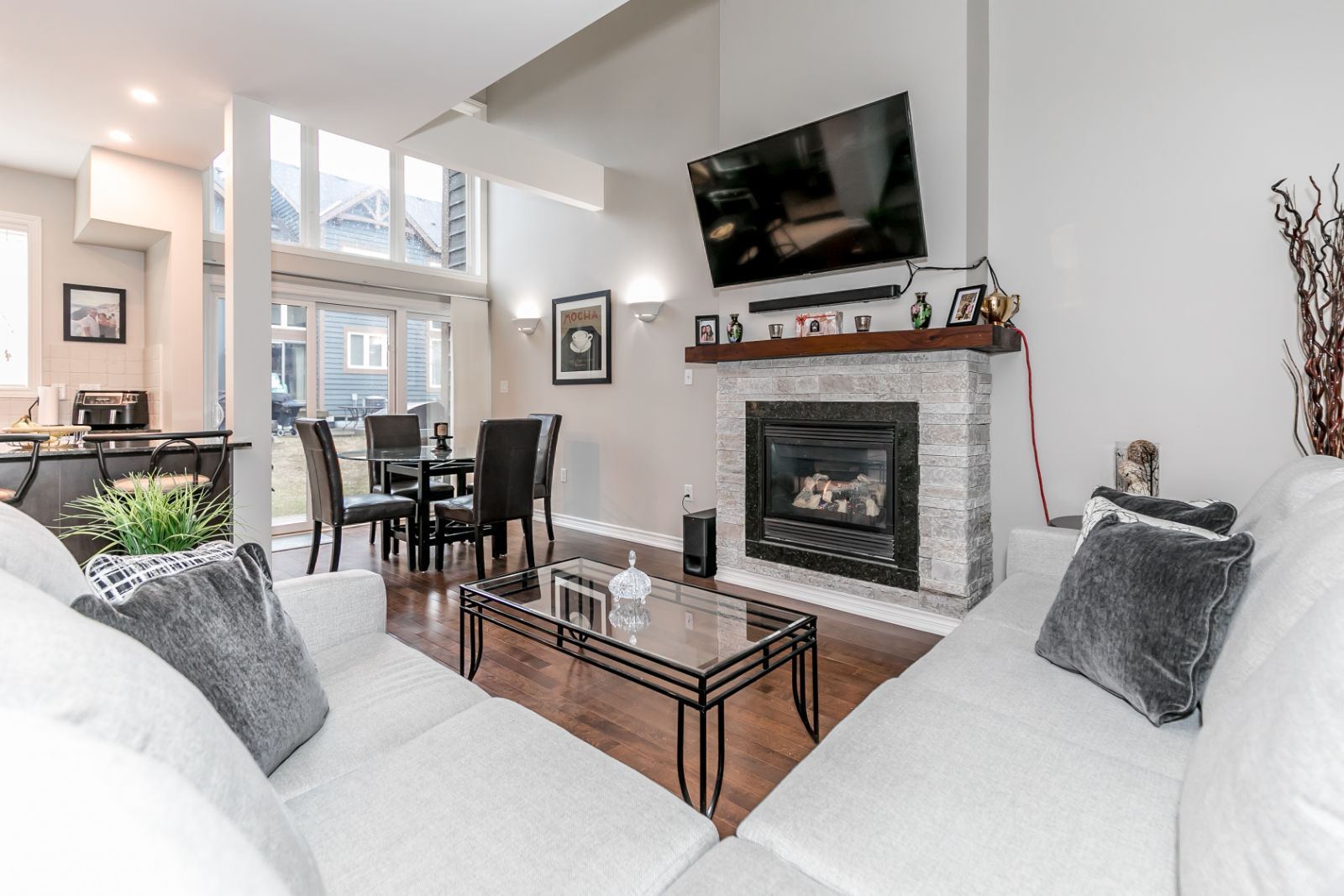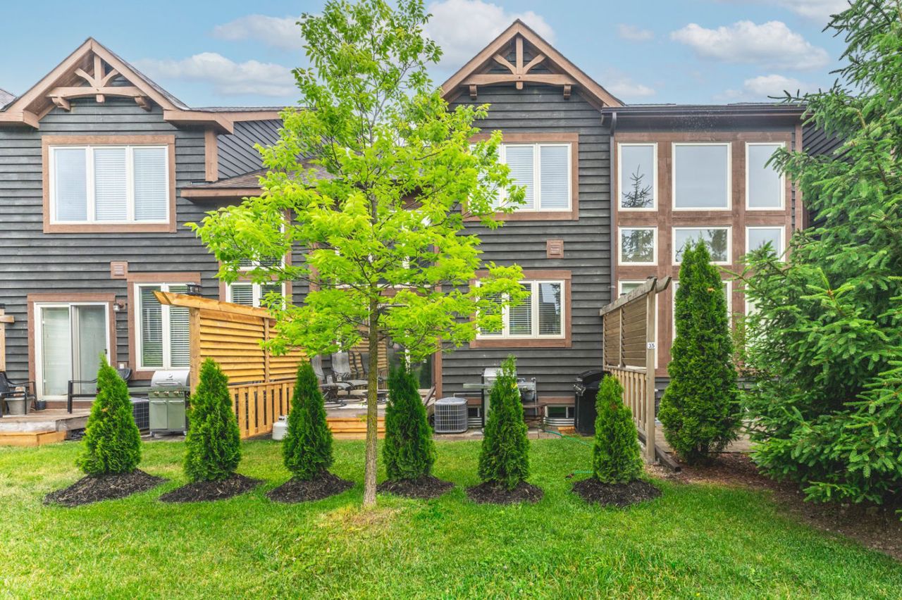 NOTE SOLD FIRM AWAITING DEPOSIT ADMIRABLE TOWNHOME LOCATED IN THE DESIRABLE TANGLEWOOD DEVELOPMENT OF COLLINGWOOD! Beautifully maintained 2 bed, 3.5 bath home w/1,600 sq ft of finished living space! The beautiful open-concept main floor includes a gas FP, hardwood floors & vaulted ceilings. Recent updates include new light fixtures, flooring, & paint, as well as a new FP facing. The kitchen is equipped with S/S appliances & a breakfast bar. The 2nd floor primary bedroom features a W/I closet & 4-pc ensuite. The 2nd bedroom is served by a 4-pc bath. Enjoy the convenience an upstairs stackable laundry closet offers. Fully finished basement w/4-pc bath, a rec room, & cold cellar. R/I for Cent Vac. The landscaped backyard has a gas line for BBQ. Appreciate the single-car garage & tons of guest parking. As a resident of this complex, you’ll be able to enjoy the benefits of having an I-G heated pool! Enjoy being within walking distance of the golf course, trails, & parks.