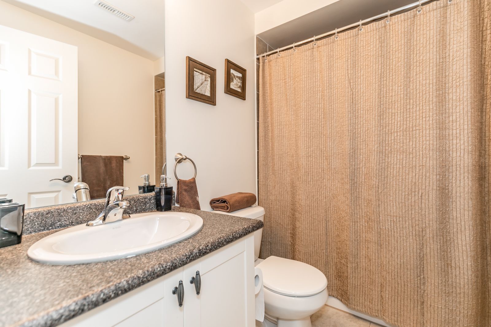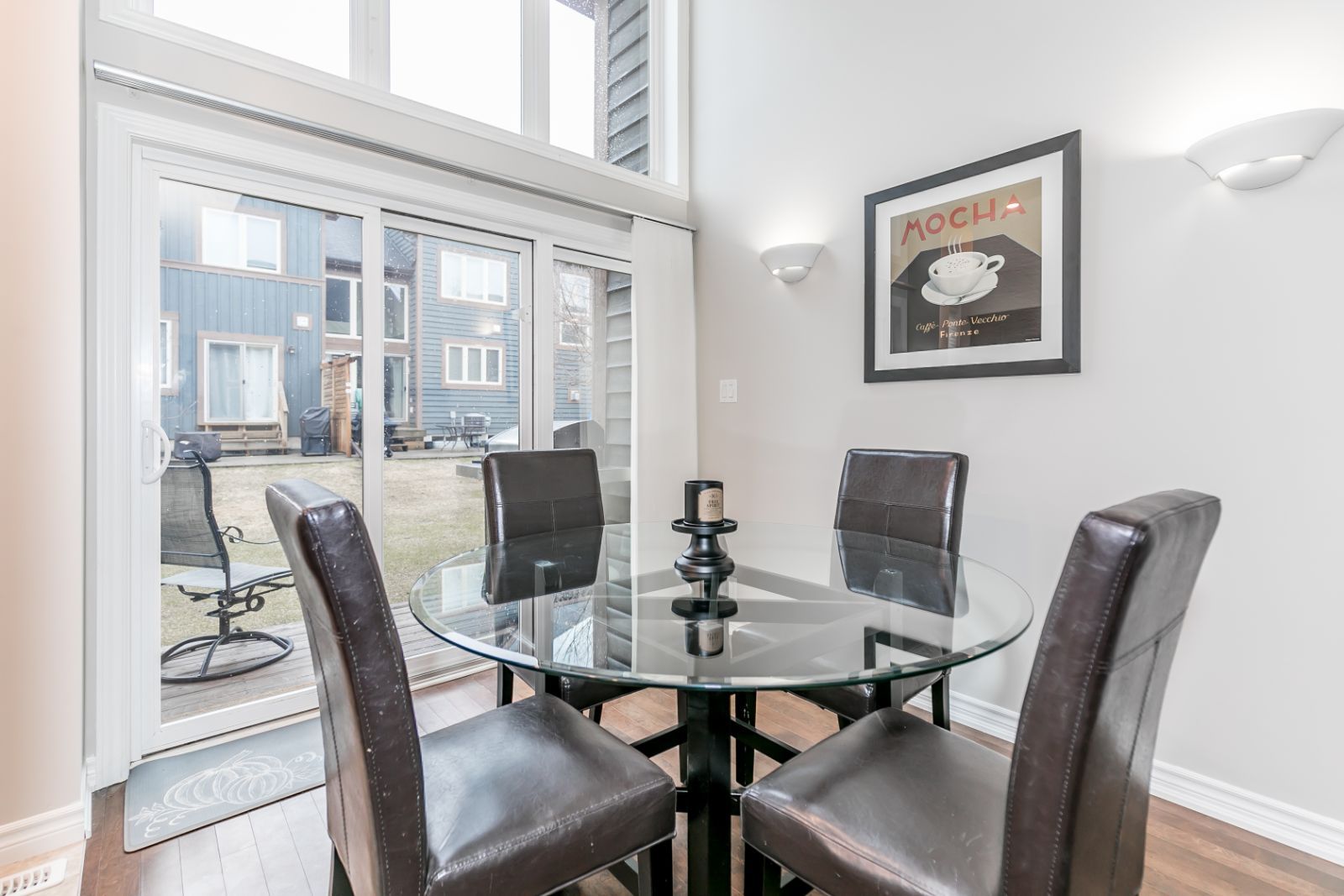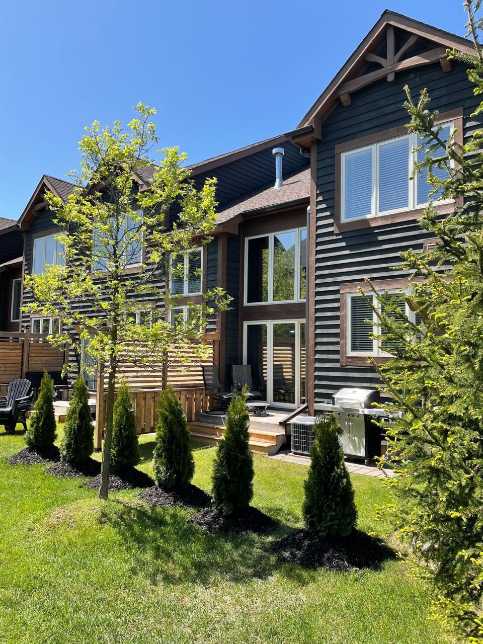 NOTE SOLD FIRM AWAITING DEPOSIT ADMIRABLE TOWNHOME LOCATED IN THE DESIRABLE TANGLEWOOD DEVELOPMENT OF COLLINGWOOD! Beautifully maintained 2 bed, 3.5 bath home w/1,600 sq ft of finished living space! The beautiful open-concept main floor includes a gas FP, hardwood floors & vaulted ceilings. Recent updates include new light fixtures, flooring, & paint, as well as a new FP facing. The kitchen is equipped with S/S appliances & a breakfast bar. The 2nd floor primary bedroom features a W/I closet & 4-pc ensuite. The 2nd bedroom is served by a 4-pc bath. Enjoy the convenience an upstairs stackable laundry closet offers. Fully finished basement w/4-pc bath, a rec room, & cold cellar. R/I for Cent Vac. The landscaped backyard has a gas line for BBQ. Appreciate the single-car garage & tons of guest parking. As a resident of this complex, you’ll be able to enjoy the benefits of having an I-G heated pool! Enjoy being within walking distance of the golf course, trails, & parks.