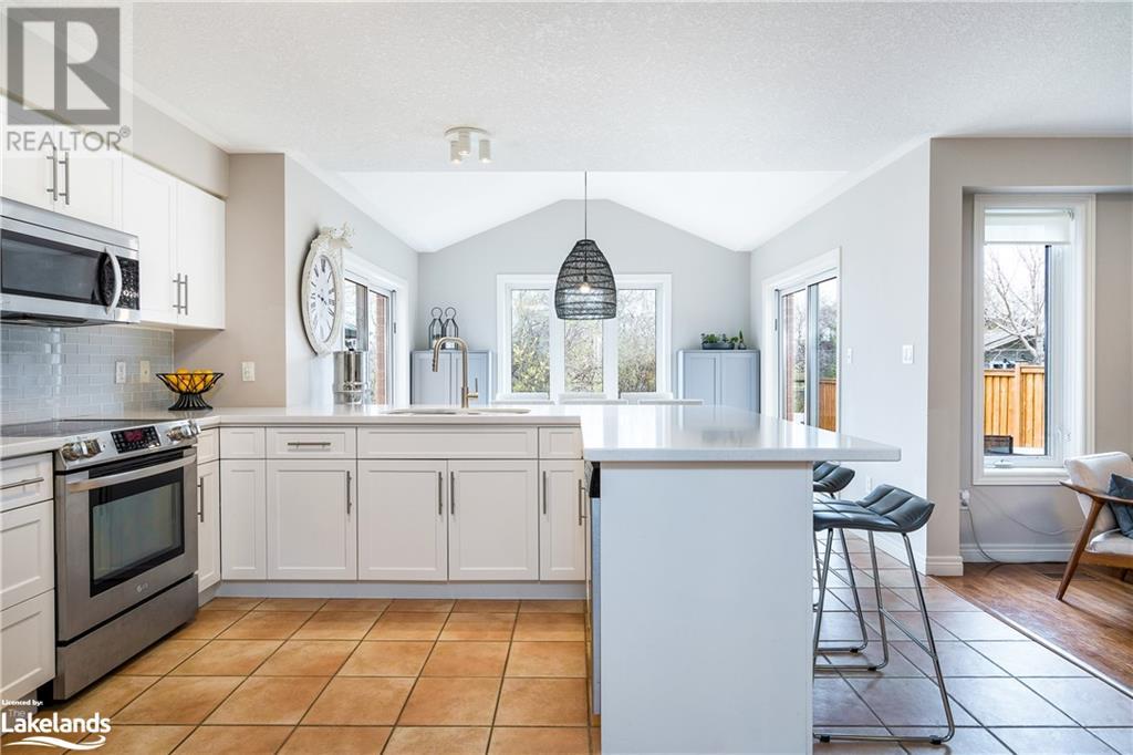 Wonderful family home on a 50 foot wide lot in Georgian Meadows. Over 3,500 square feet of total finished living space with six bedrooms, three and a half bathrooms, open concept kitchen, family and dining rooms with walkouts to two decks and a fully fenced yard backing onto a canopy of greenery. The home has space for family and friends to gather together but also plenty of areas for privacy and separate activities in the separate living room, den/media room and lower level recreation room with large south facing window. Many recent updates include two new decks (2022), new A/C (2021), new fully finished basement (2020), new roof (2019), new cabinet doors and countertops for kitchen and two bathrooms (2018), new lighting. Georgian Meadows has some of Collingwood's best playgrounds and boarders a vast green area with trails and the Black Ash Creek, great for walking, cycling and exploring. All of this plus quick access to shopping, restaurants, schools and the waterfront. Call to book your private viewing! (id:22211)