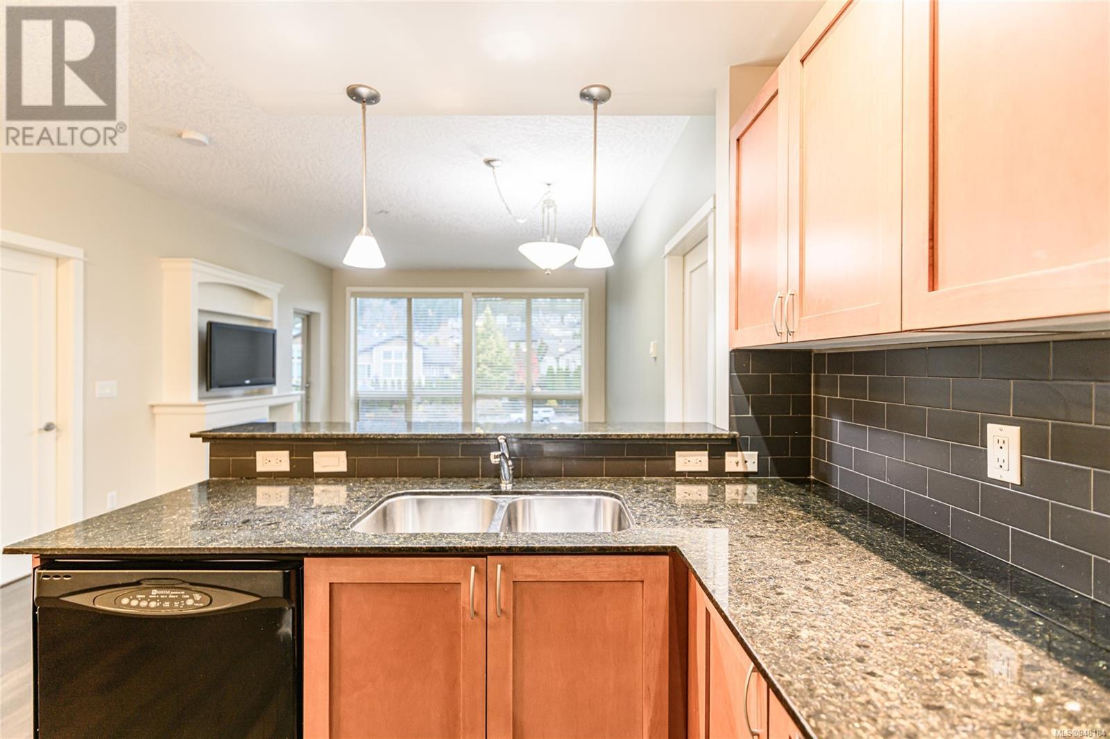Bright pet-friendly, rentable, two bedroom top floor corner unit with 9' ceilings This floor plan features a bedroom on each side of the living room and an open kitchen. Kitchen with, granite counter tops, tiled back splash and a breakfast bar. Large living room with electric fireplace and a door leading to one of the decks off the bedroom on the left. On the right is a large primary bedroom, with private deck, walk-in closet and en suite bathroom. Bright with natural light through many windows, this home is move-in ready with ample closet/storage space and includes 1 secure, underground parking space, storage locker and bicycle storage. Minutes from Royal Beach Park and all the amenities Langford and Colwood . (id:22211)