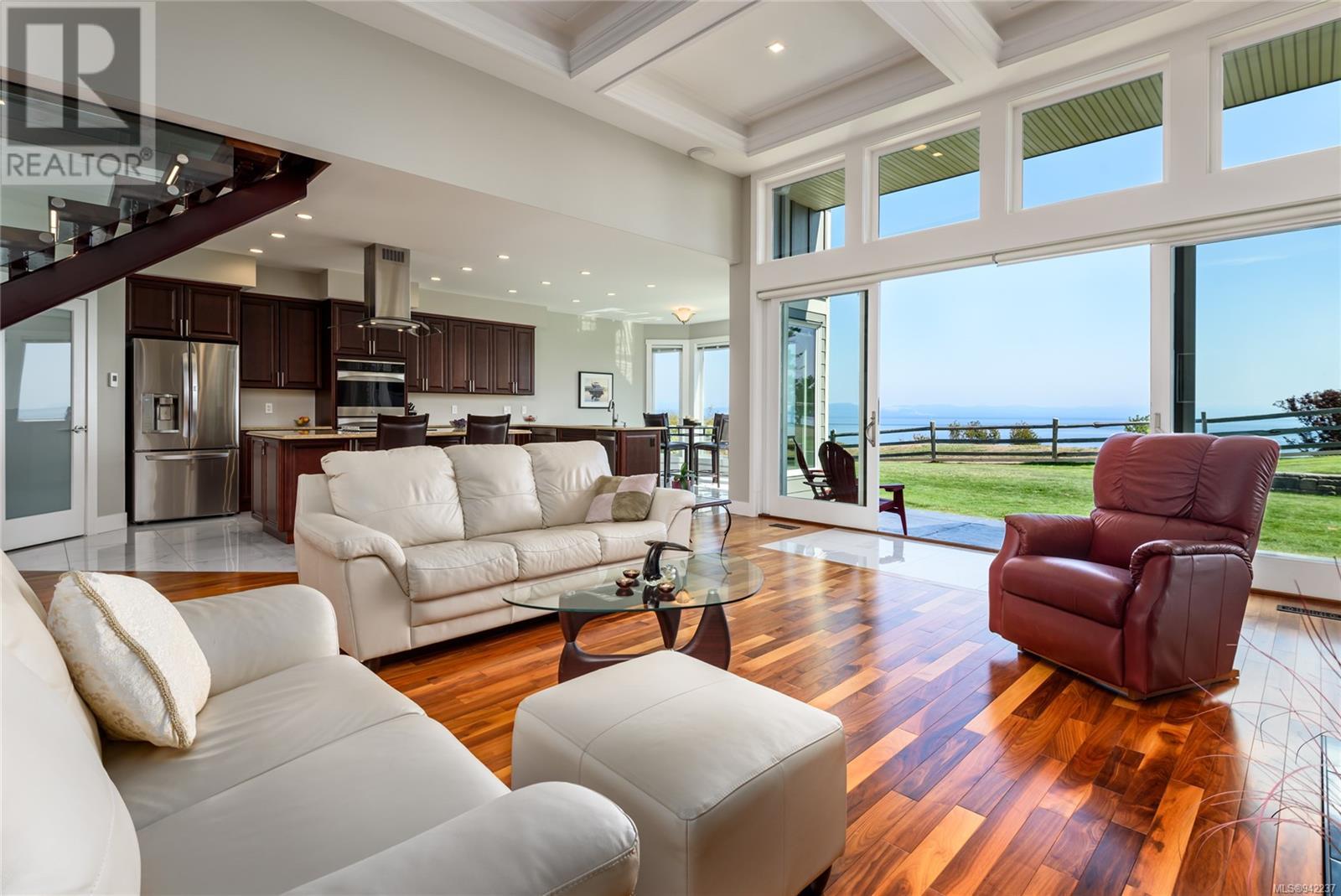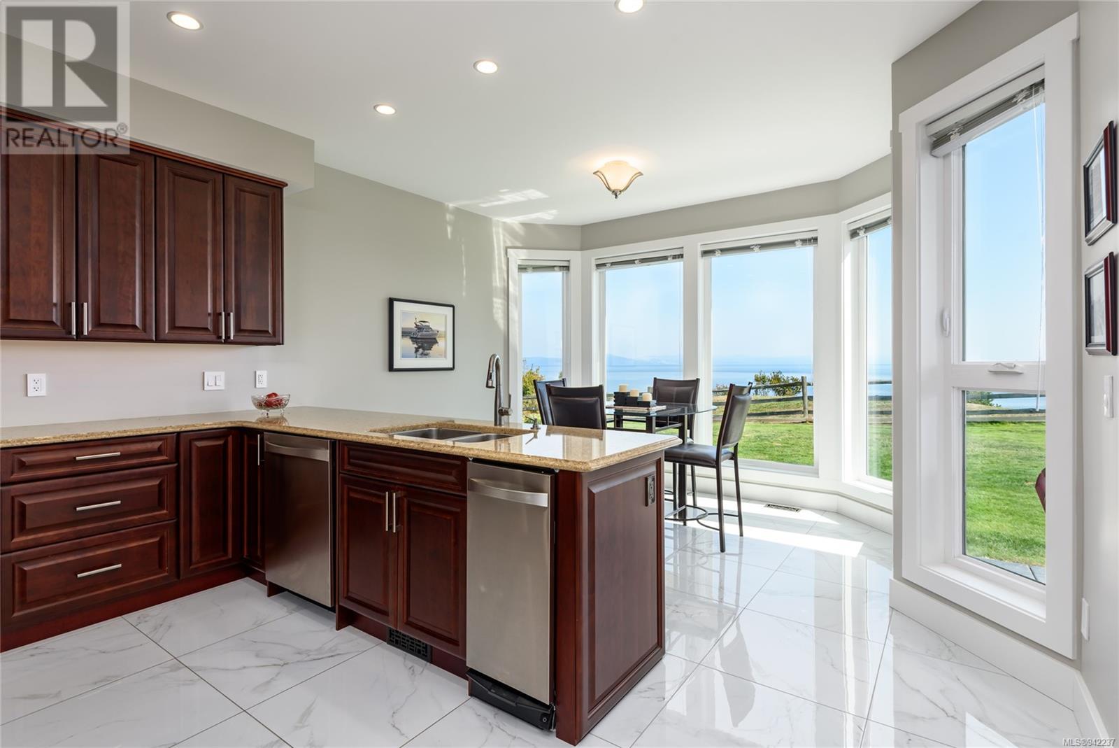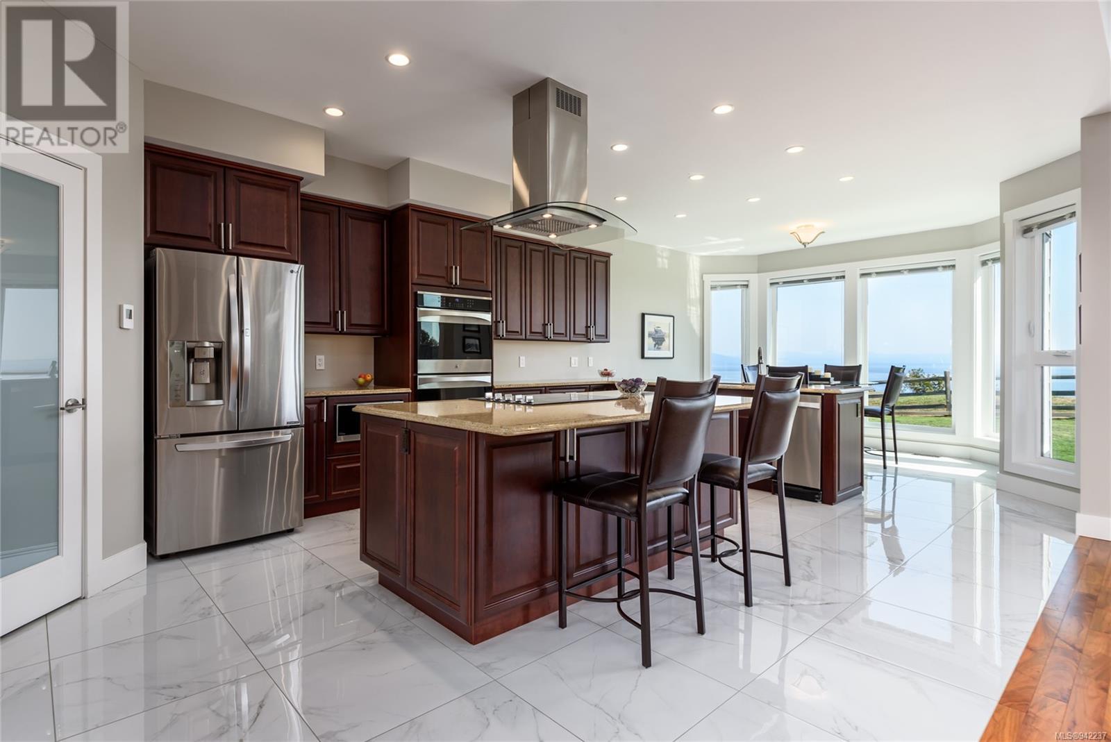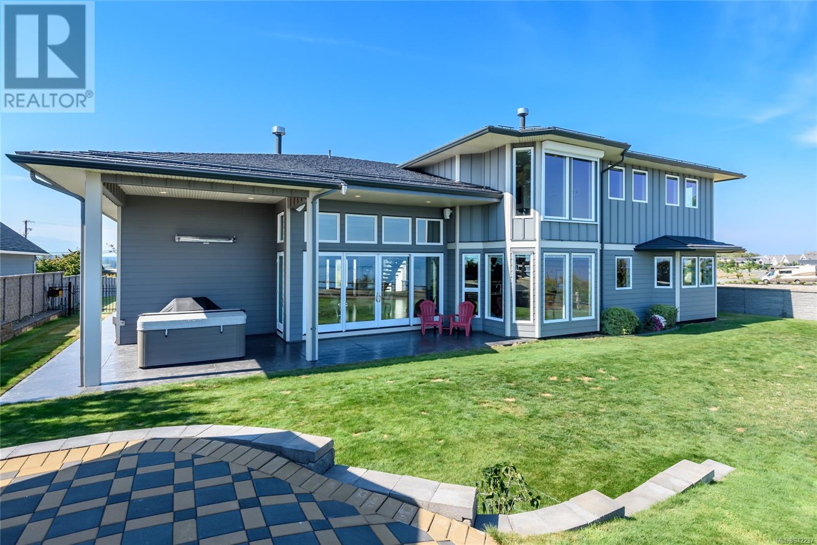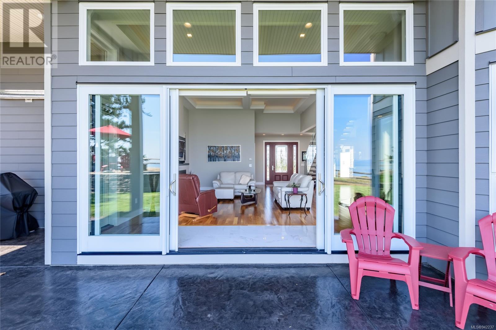 WATERFRONT! BREATHTAKING PANORAMIC OCEAN VIEWS! A home that exceeds all expectations. Stunning, custom-designed home offering a spectacular location and views on .74 acres, fully fenced, with privacy! This main floor open-concept design with exceptional quality features include soaring coved ceilings, floor to ceiling walls of windows throughout the principle rooms, engineered hardwood flooring and a floating stair-case encased by glass railings. The gourmet chef-inspired kitchen with endless custom cabinetry, large island for casual dining and quartz counters. The upper floor features a second kitchen and a games/recreation room. All three bedrooms are generous in size, fourth room is being used as an office, and a luxurious principle bedroom with spacious dual walk-in closet/dressing room and 5 piece en-suite. Also offered is a triple garage & a 4th attached garage for RV parking. There is an amazing outdoor entertainment area, a beautiful firepit and seating. Truly a spectacular home! Additional building specifics: Upstairs has a 1 1/2 concrete skim coat. Roof building code is 7 1/16 OSB we have 5/8 TG OSB. On-Demand Hot Water throughout the house. All interior doors 3 ft solid core. Motion activated lights in bathrooms and closets. Front entrance door 3 ft in by 8 ft. 220 power wired to the shop and three in garage, and all wiring is ready (pre-wired) for an Electric Vehicle. 400 amp of power available. 70 amp backup generator automatic start. Power and gas to the outside patio. Propane tanks are owned not rented. Sky walk built in shop attic, so easy to get around. Separate gas heaters in shop and garage. For more information please text or call John Kalhous directly at 250-334-SOLD (7653) or please email info@johnrealestate.ca (id:22211)