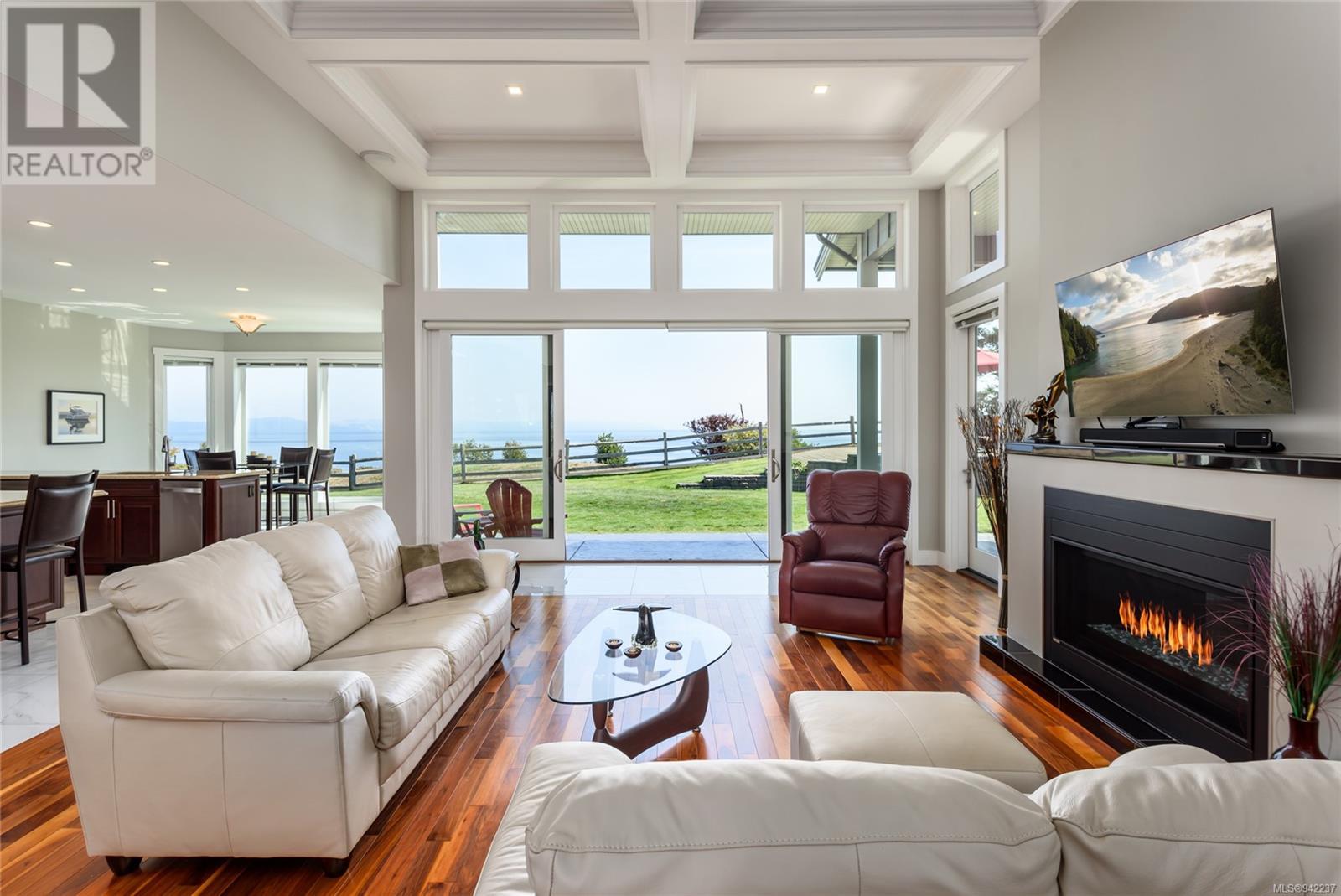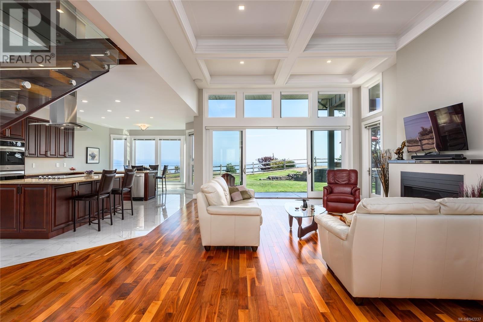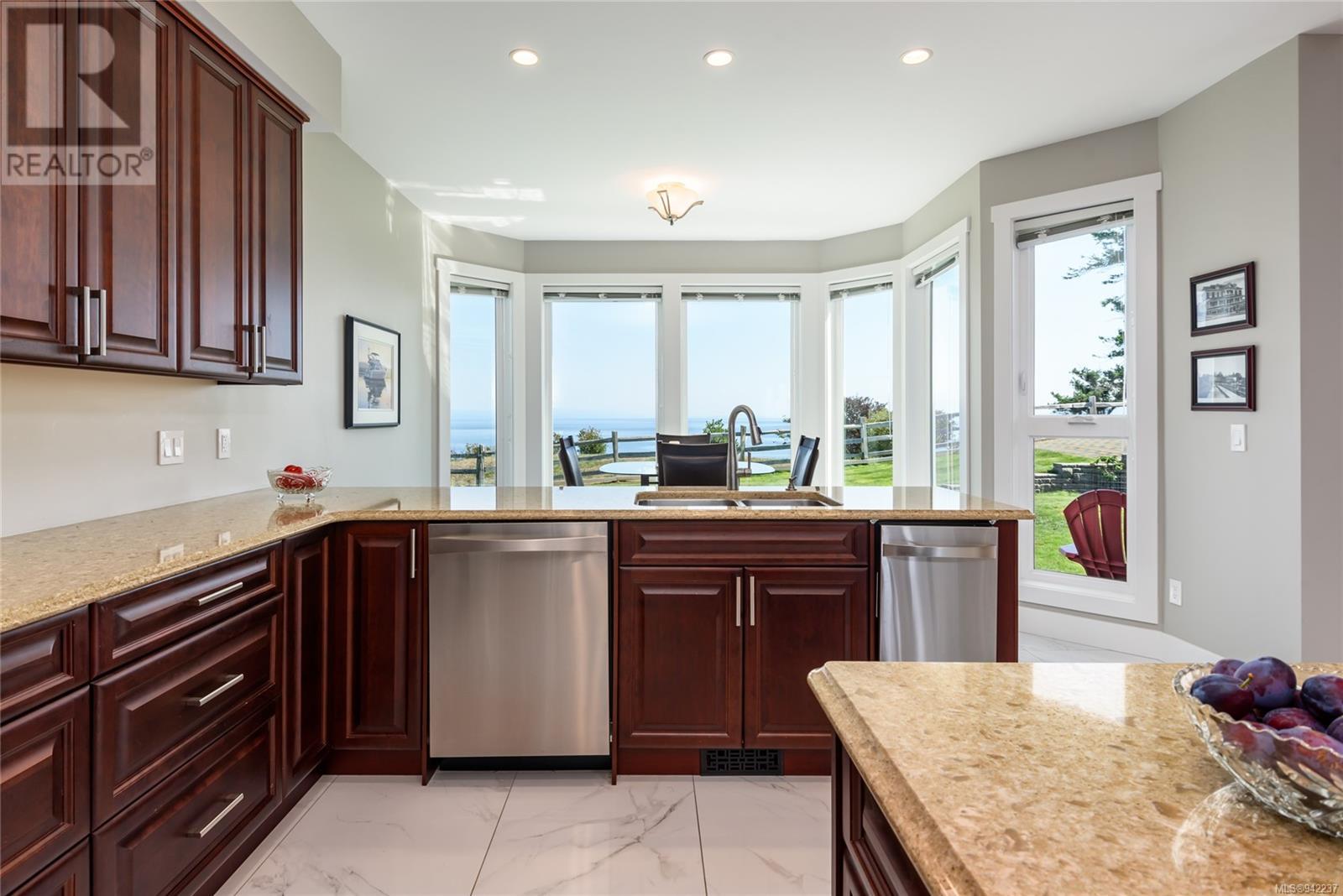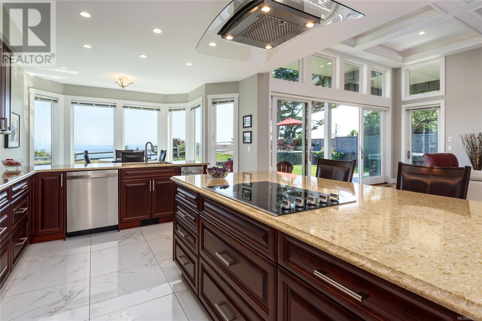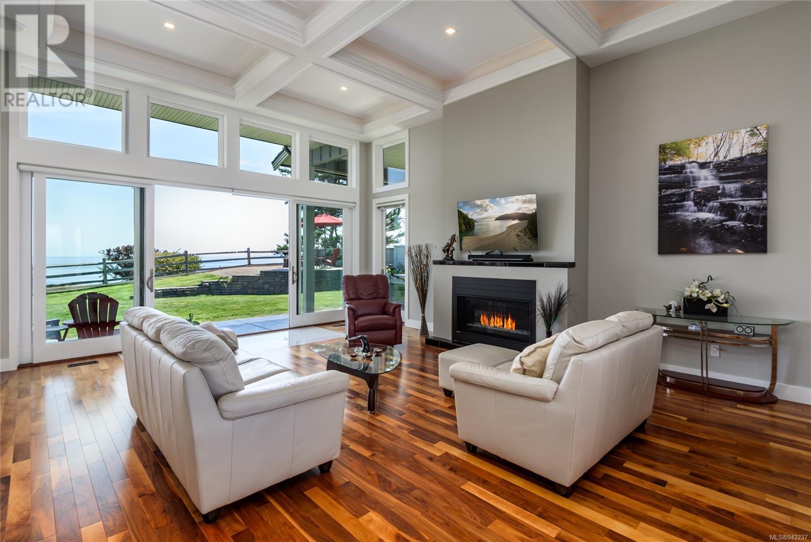 WATERFRONT! BREATHTAKING PANORAMIC OCEAN VIEWS! A home that exceeds all expectations. Stunning, custom-designed home offering a spectacular location and views on .74 acres, fully fenced, with privacy! This main floor open-concept design with exceptional quality features include soaring coved ceilings, floor to ceiling walls of windows throughout the principle rooms, engineered hardwood flooring and a floating stair-case encased by glass railings. The gourmet chef-inspired kitchen with endless custom cabinetry, large island for casual dining and quartz counters. The upper floor features a second kitchen and a games/recreation room. All three bedrooms are generous in size, fourth room is being used as an office, and a luxurious principle bedroom with spacious dual walk-in closet/dressing room and 5 piece en-suite. Also offered is a triple garage & a 4th attached garage for RV parking. There is an amazing outdoor entertainment area, a beautiful firepit and seating. Truly a spectacular home! Additional building specifics: Upstairs has a 1 1/2 concrete skim coat. Roof building code is 7 1/16 OSB we have 5/8 TG OSB. On-Demand Hot Water throughout the house. All interior doors 3 ft solid core. Motion activated lights in bathrooms and closets. Front entrance door 3 ft in by 8 ft. 220 power wired to the shop and three in garage, and all wiring is ready (pre-wired) for an Electric Vehicle. 400 amp of power available. 70 amp backup generator automatic start. Power and gas to the outside patio. Propane tanks are owned not rented. Sky walk built in shop attic, so easy to get around. Separate gas heaters in shop and garage. For more information please text or call John Kalhous directly at 250-334-SOLD (7653) or please email info@johnrealestate.ca (id:22211)