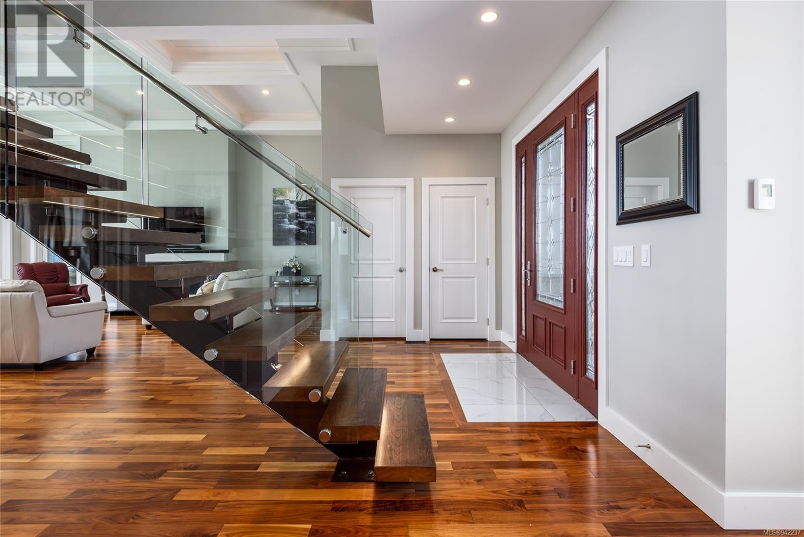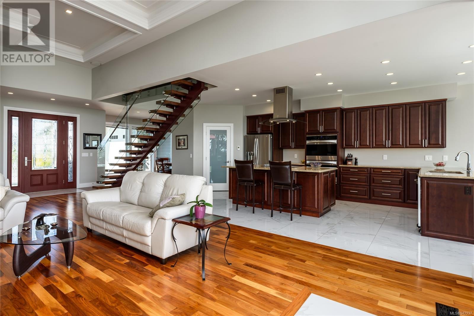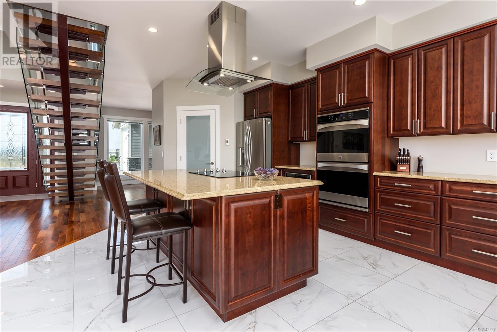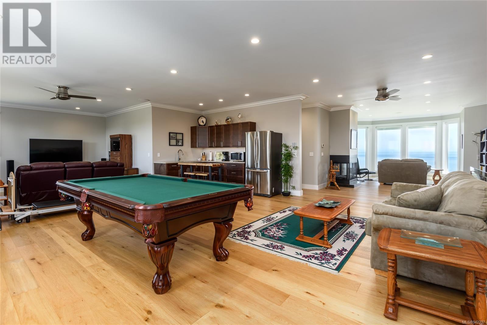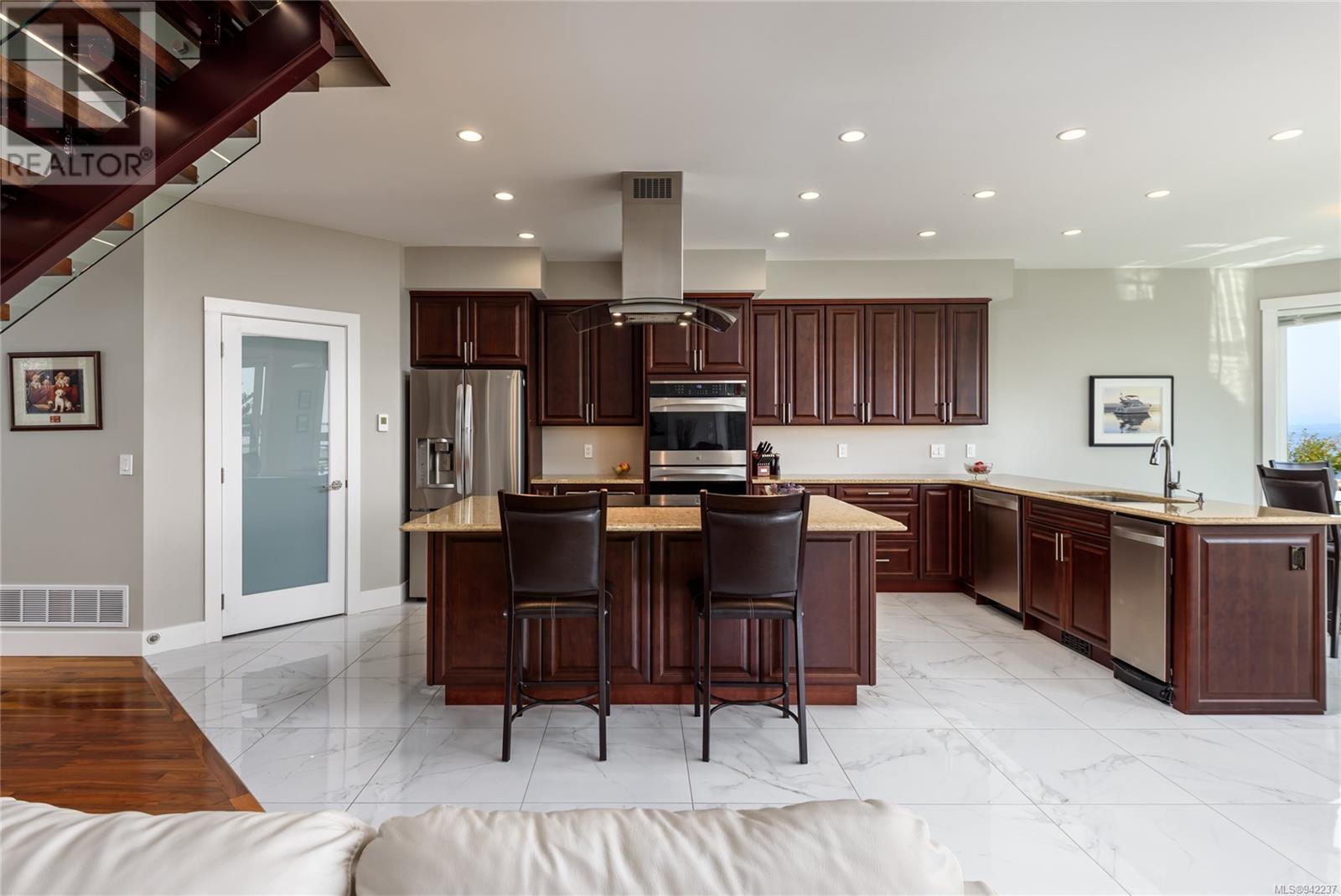 WATERFRONT! BREATHTAKING PANORAMIC OCEAN VIEWS! A home that exceeds all expectations. Stunning, custom-designed home offering a spectacular location and views on .74 acres, fully fenced, with privacy! This main floor open-concept design with exceptional quality features include soaring coved ceilings, floor to ceiling walls of windows throughout the principle rooms, engineered hardwood flooring and a floating stair-case encased by glass railings. The gourmet chef-inspired kitchen with endless custom cabinetry, large island for casual dining and quartz counters. The upper floor features a second kitchen and a games/recreation room. All three bedrooms are generous in size, fourth room is being used as an office, and a luxurious principle bedroom with spacious dual walk-in closet/dressing room and 5 piece en-suite. Also offered is a triple garage & a 4th attached garage for RV parking. There is an amazing outdoor entertainment area, a beautiful firepit and seating. Truly a spectacular home! Additional building specifics: Upstairs has a 1 1/2 concrete skim coat. Roof building code is 7 1/16 OSB we have 5/8 TG OSB. On-Demand Hot Water throughout the house. All interior doors 3 ft solid core. Motion activated lights in bathrooms and closets. Front entrance door 3 ft in by 8 ft. 220 power wired to the shop and three in garage, and all wiring is ready (pre-wired) for an Electric Vehicle. 400 amp of power available. 70 amp backup generator automatic start. Power and gas to the outside patio. Propane tanks are owned not rented. Sky walk built in shop attic, so easy to get around. Separate gas heaters in shop and garage. For more information please text or call John Kalhous directly at 250-334-SOLD (7653) or please email info@johnrealestate.ca (id:22211)