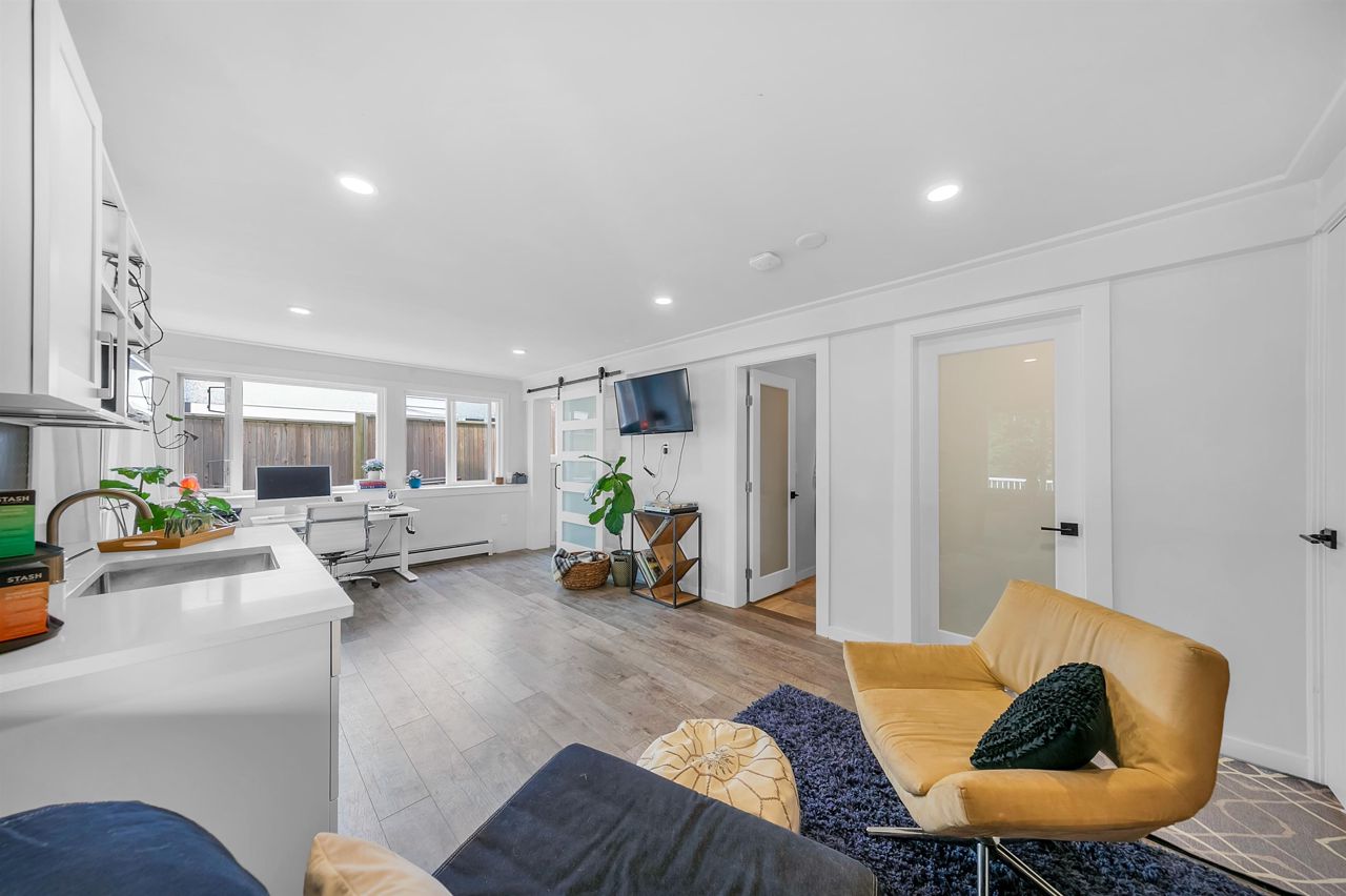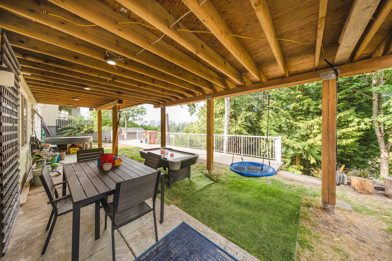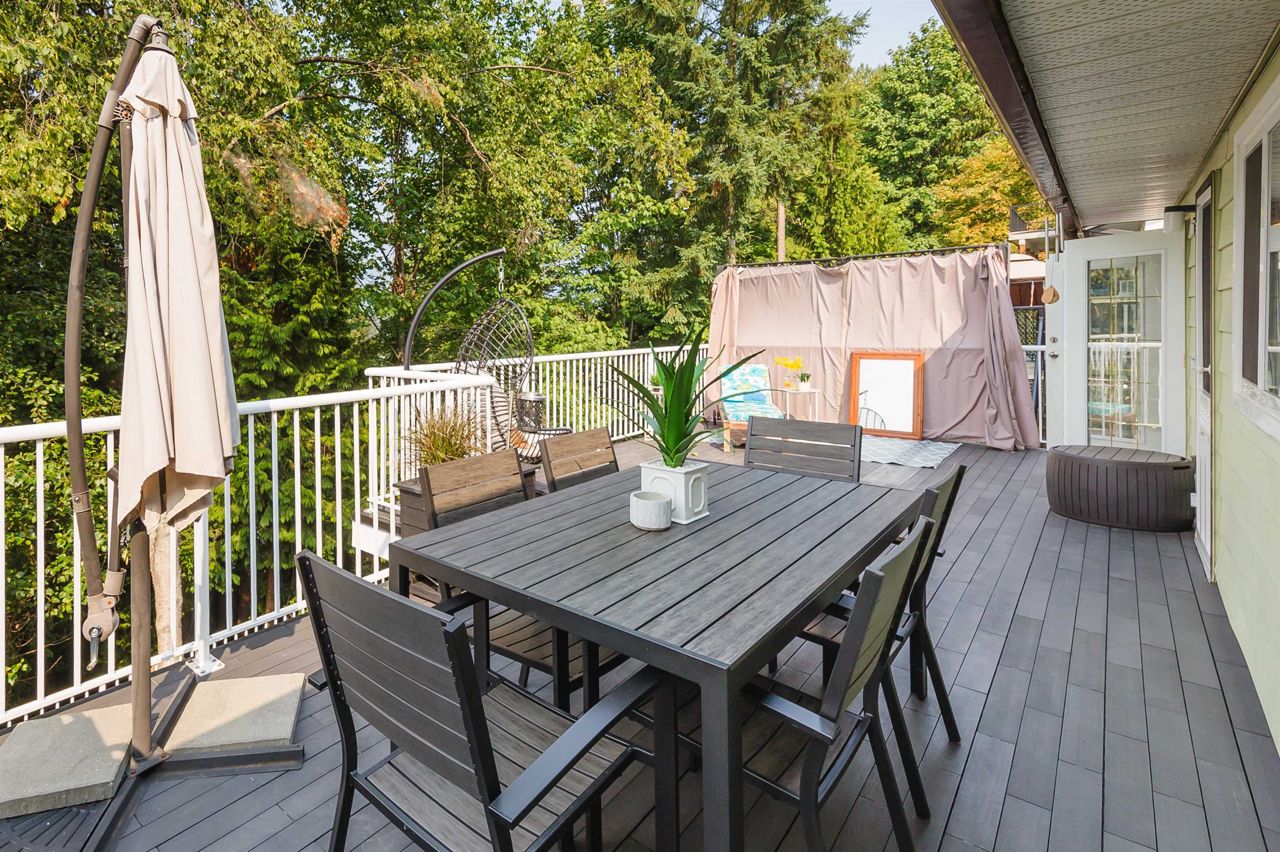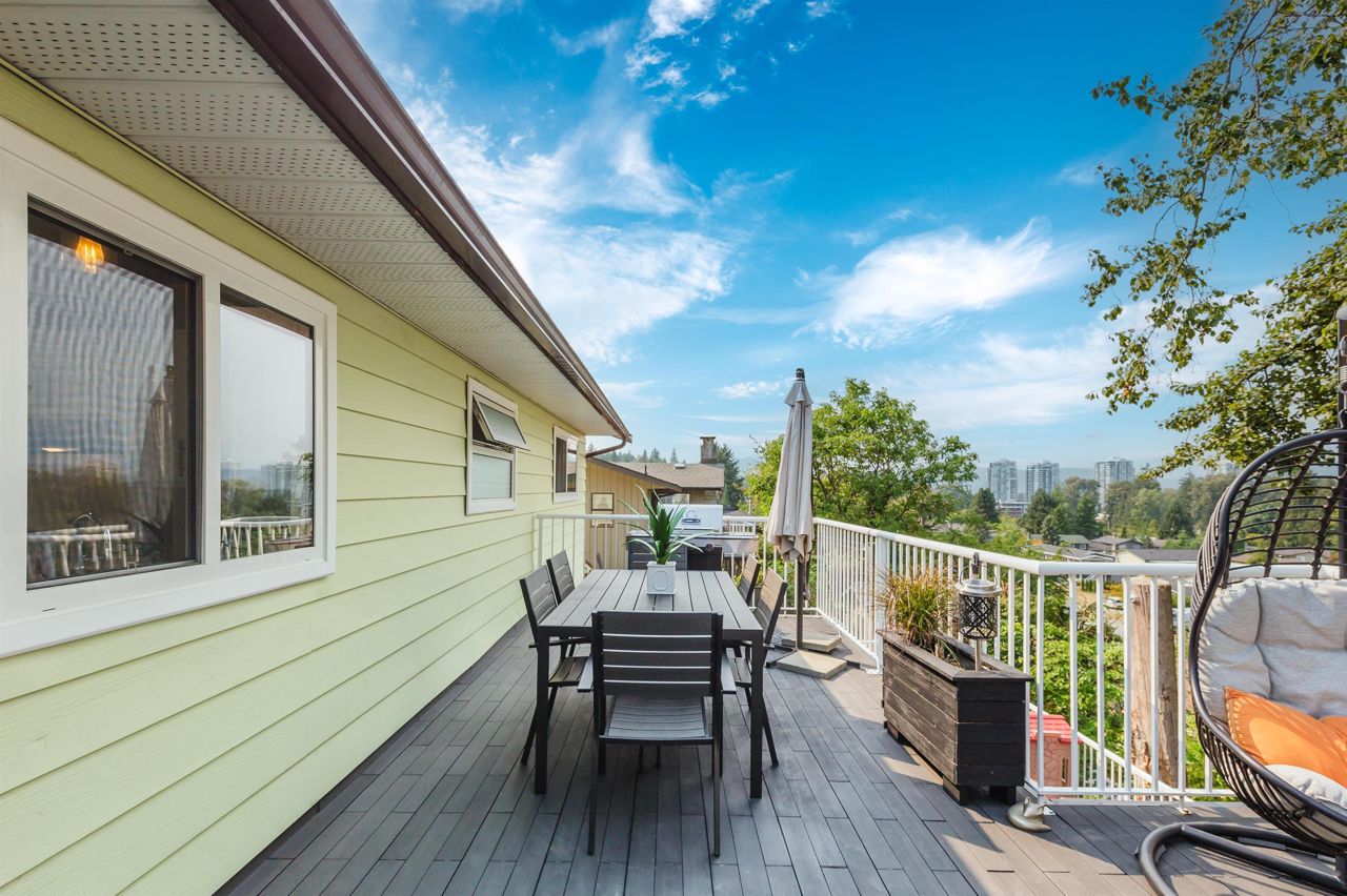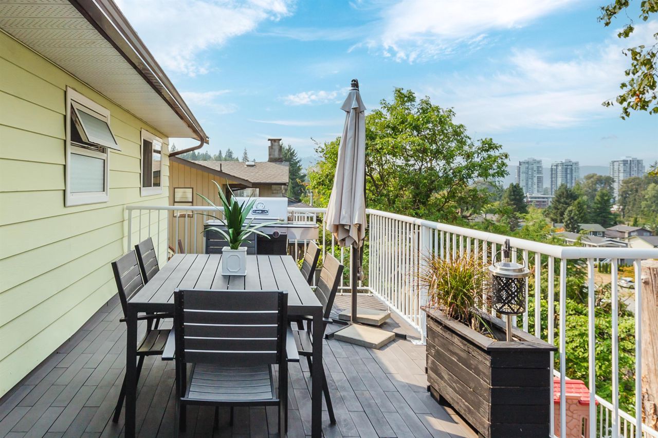 Beautifully designed 5 bedroom rancher with a basement with 3 separate living quarters in Ranch Park! Upstairs, you will find 3 bedrooms, 1.5 bathrooms, laundry and an adorable kitchen and dining space. Enjoy the great views looking towards the mountains and Suterbrook Village from the huge new deck. Downstairs you will find 2 separate living areas that can also be joined together as a 2 bedroom living space. This space is ideal for inlaws, or if you have 2 adult children who need their own separate living space! Flat, grassy yard with extended decking is perfect for family fun! Beautifully designed lounging space in front and side yards. Shed storage for all of your gear. Walking distance to the Skytrain and Suterbrook. The floorplan has so many options! Open House Sunday Dec 3rd 3-4pm.