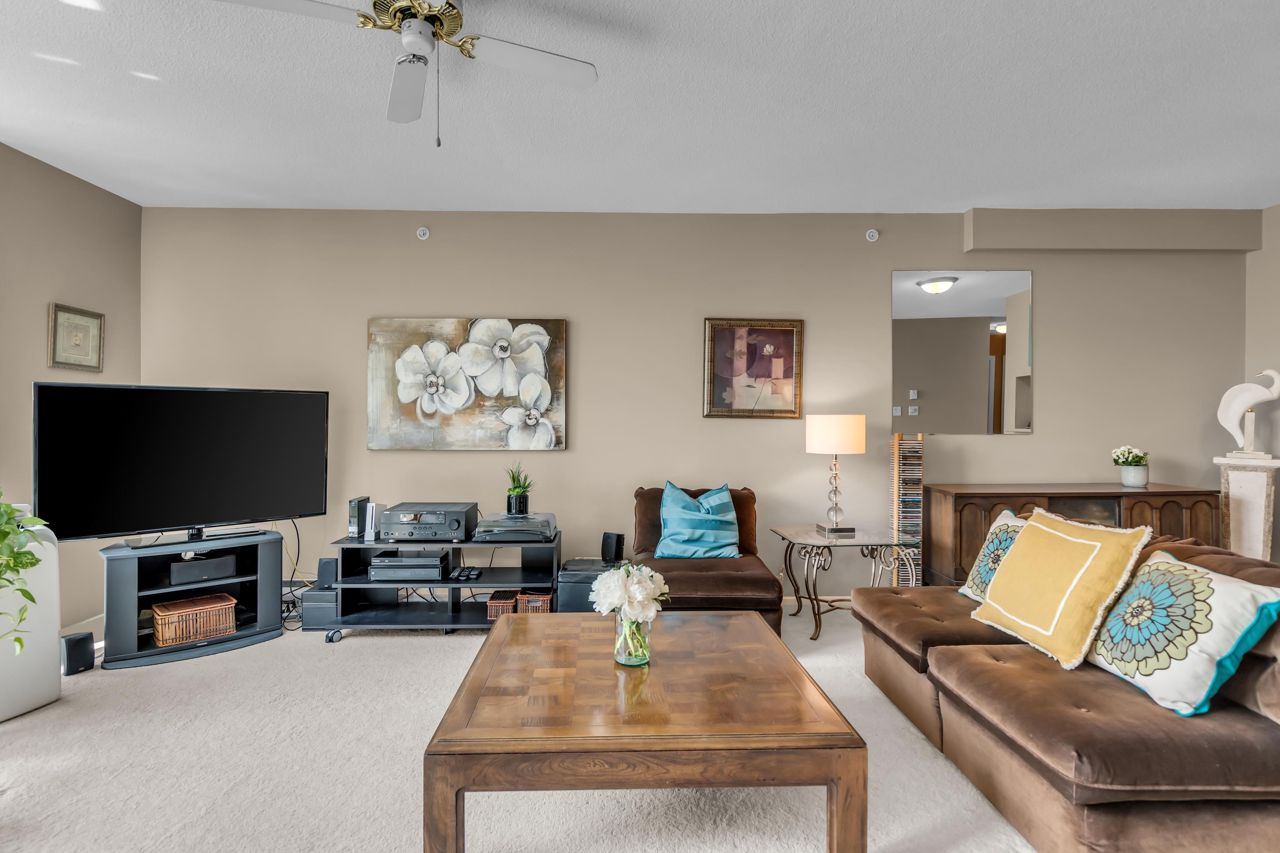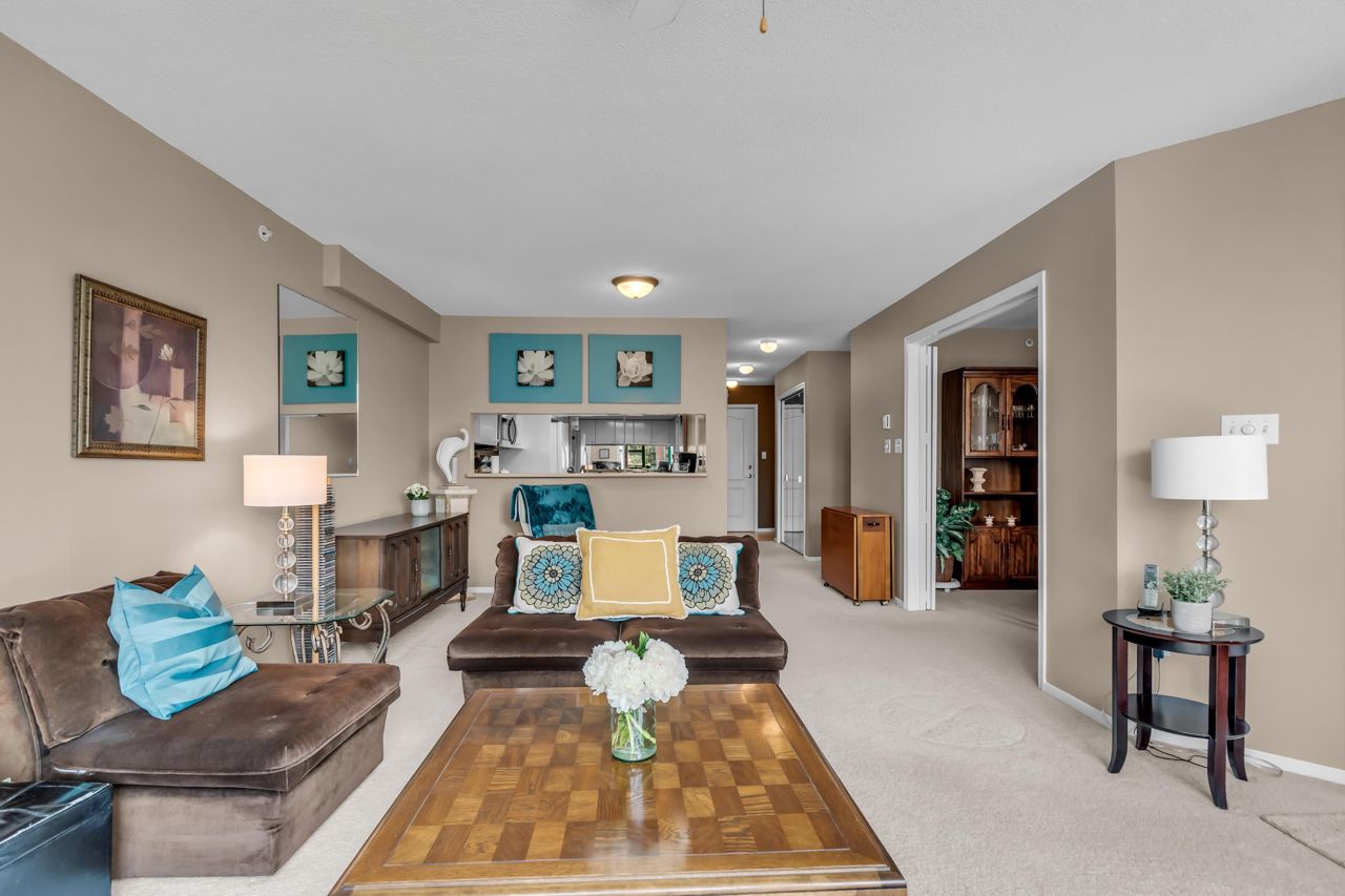 The HUDSON @ Westwood Place. This desirable BOSA built development offers quite the lifestyle with an indoor pool, sauna, racquet ball court, exercise/fitness centre and meeting rooms. This bright condo features Two bedrooms (one presently used as a dining room), two baths and a large spacious living area. Walk-in pantry and laundry room just inside the kitchen area. two sets of sliding glass doors leading you out to the "SOUTH" facing deck that overlooks the landscaped courtyard area & water fountain. Enjoy the convenient location to Coq Centre, Lafarge lake and surrounding amenities & parks.