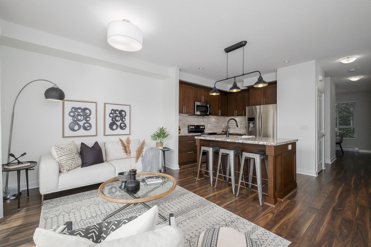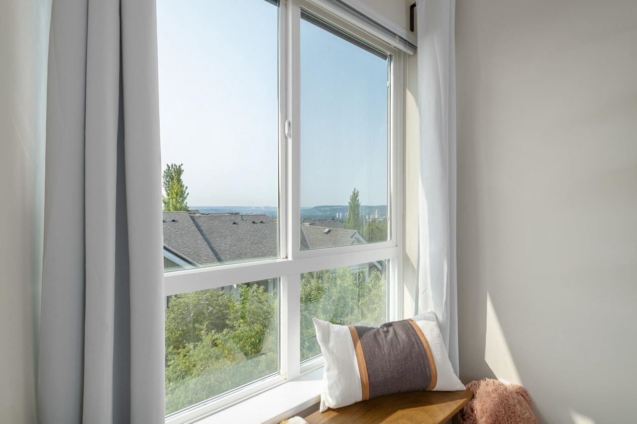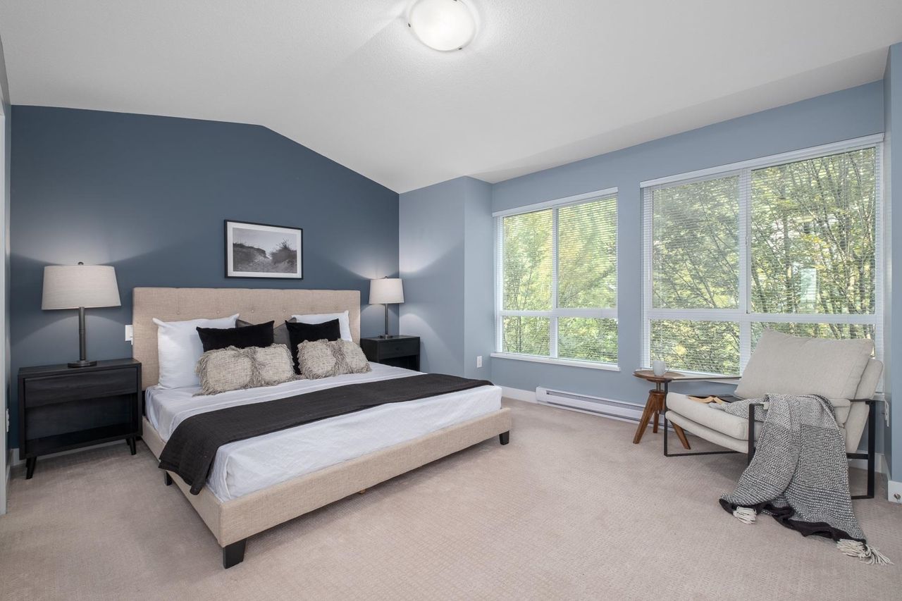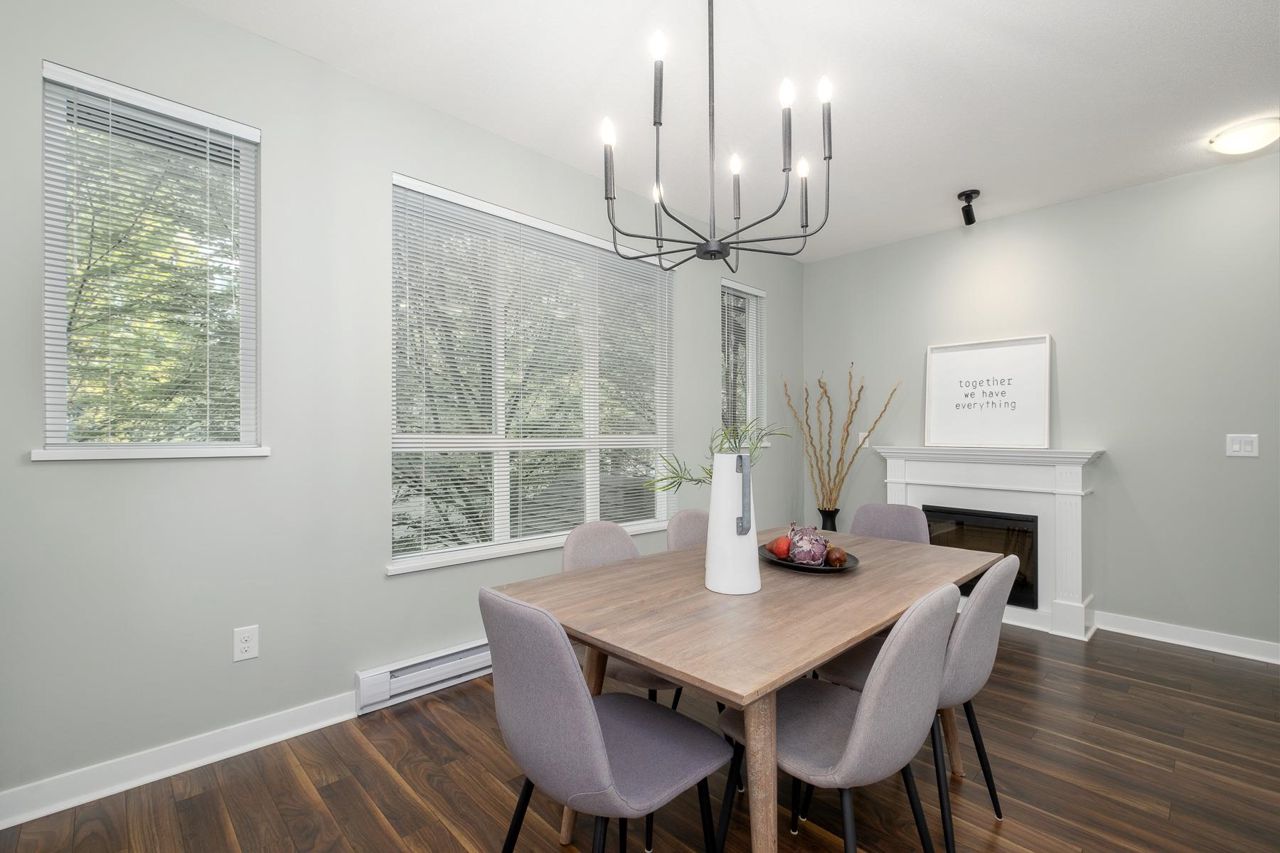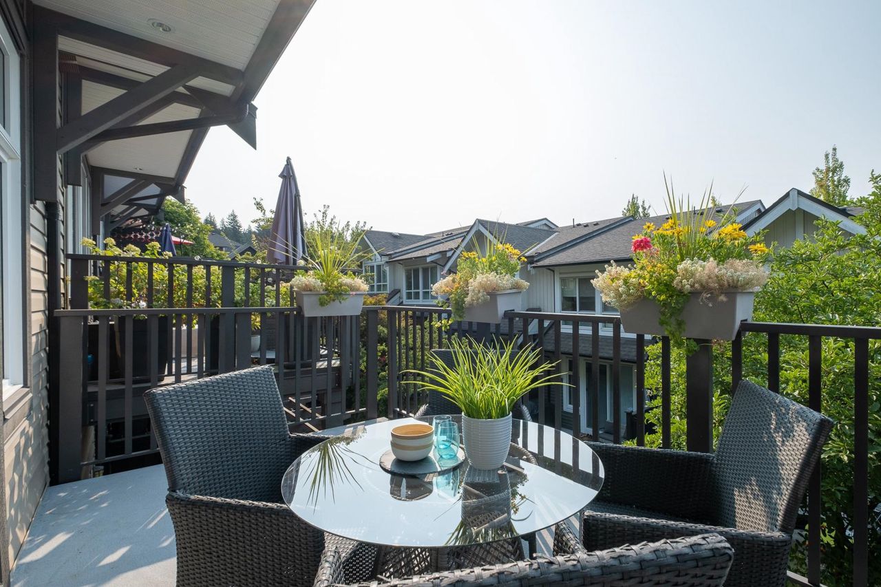 Burke Mountain: 1 of the best values available. Don't miss this one! South facing townhome complete with a fenced yard. Welcome to this 4bed/4bath/3lvl/1900sqft home located in Cedar Creek complex of desirable Burke Mountain. Main: 9' ceilings, great room style layout w/living area & kitchen w/SS appls, plenty of cupboard & counter space, island & breakfast bar, convenient pantry & access to large deck. Entertain in a formal dinning area w/cozy F/P & benefit from renovated powder rm & laundry. Up: large primary bedroom w/excellent closet space, 5pc ensuite w/dual sinks & soaker tub. The 2nd & 3rd rooms are well sized. Down: offers a huge room w/4pc bath; perfect for adult kids or guest room. Bonus: tons of storage, single car garage & covered carport. Act Now!