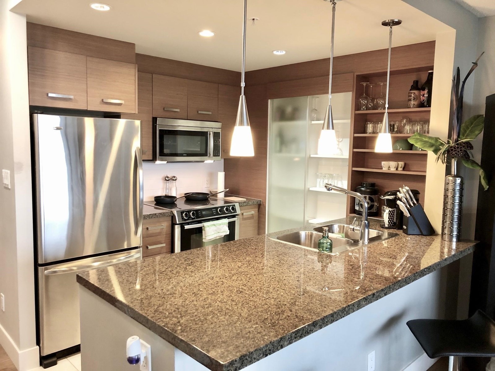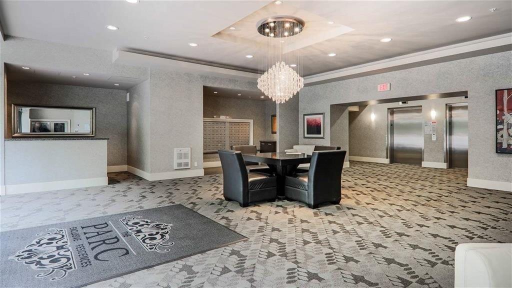 Welcome to The Parc! Gorgeous 680 square ft 1-bdrm + den suite with rarely available panoramic, unobstructed views. This home features a contemporary, open plan with gleaming engineered hardwood floors, granite countertops in both the kitchen and bath, stainless steel Bosch appliances, cozy fireplace and the floor-to-ceiling windows provide lots of natural light. Located in the heart of Coquitlam's vibrant Town Center - just a short walk to many different restaurants, shops, Coq Center and Skytrain. The Parc is a very well-run Strata with amenities that include a fully equipped gym, wine tasting room and storage locker. (id:22211)