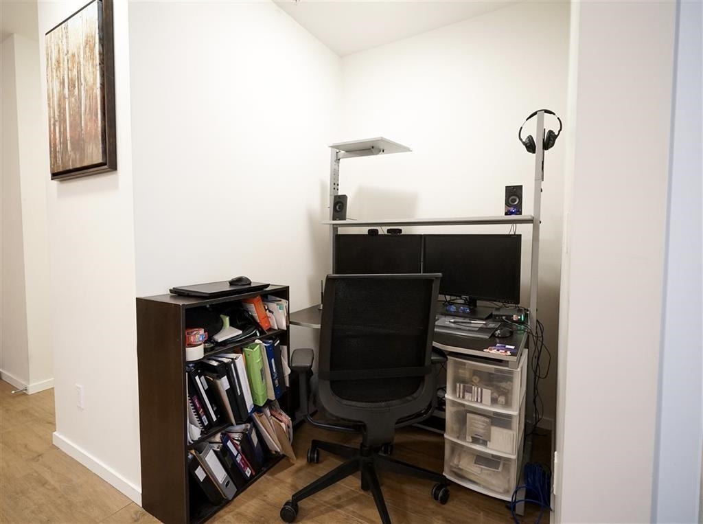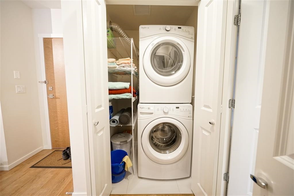 Welcome to Mackin Park by Bluetree Homes! This is the spacious 1 bedroom and den condo you have been looking for! No wasted space in this unit! Large kitchen with S/S appliances, plenty of cabinet space and quartz counters. Bathroom is modern and sleek with soaker tub and white tile surround. Nice sized den off main living area, generous sized master bedroom with dual closets and cheater ensuite access. Covered balcony great for year round BBQ's. Very central location close to shopping, transit. Louhgeed and Hwy 1 access. PET friendly building 2 cats or 2 dogs or 1 of each! Currently tenanted for $1,815 M/M Open House July 16th between 2pm-5pm