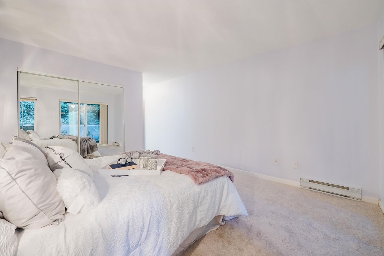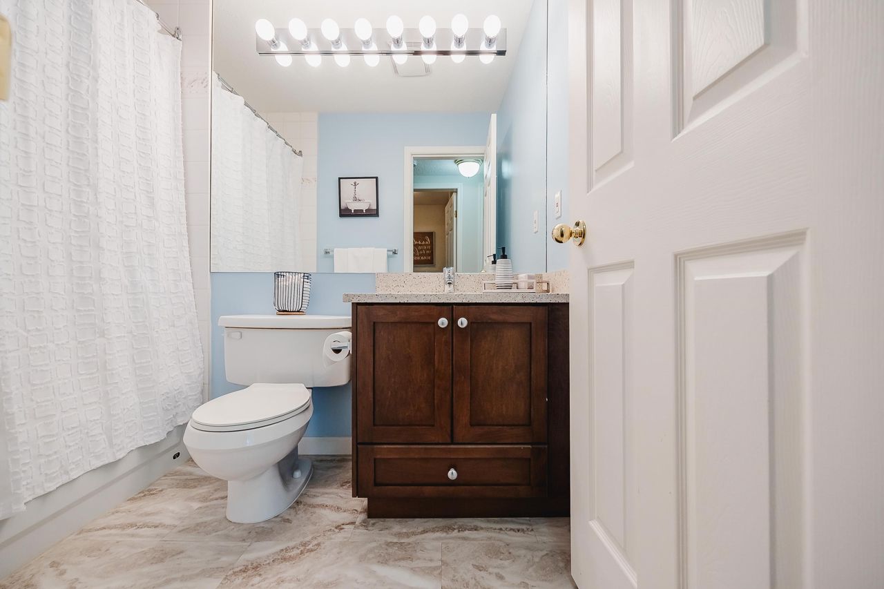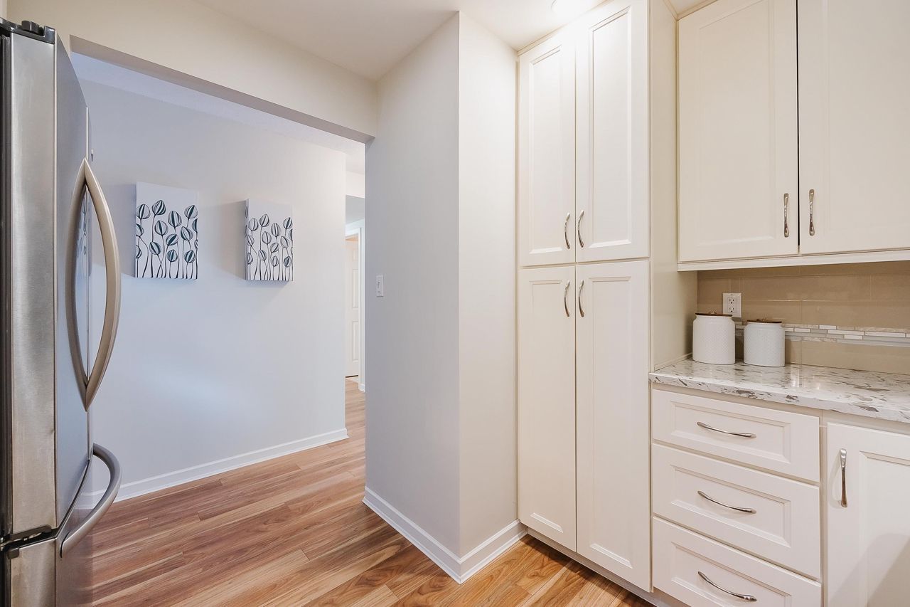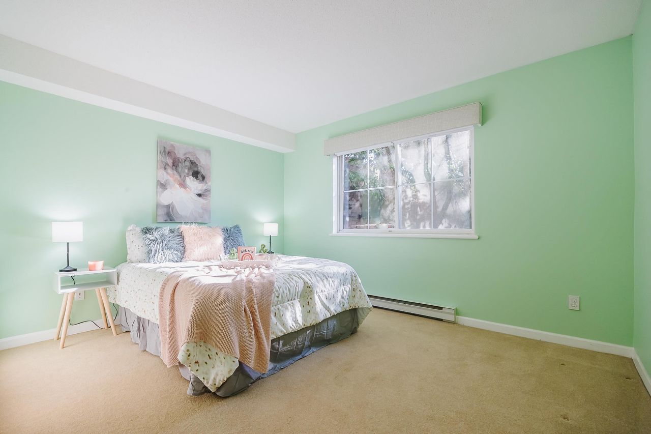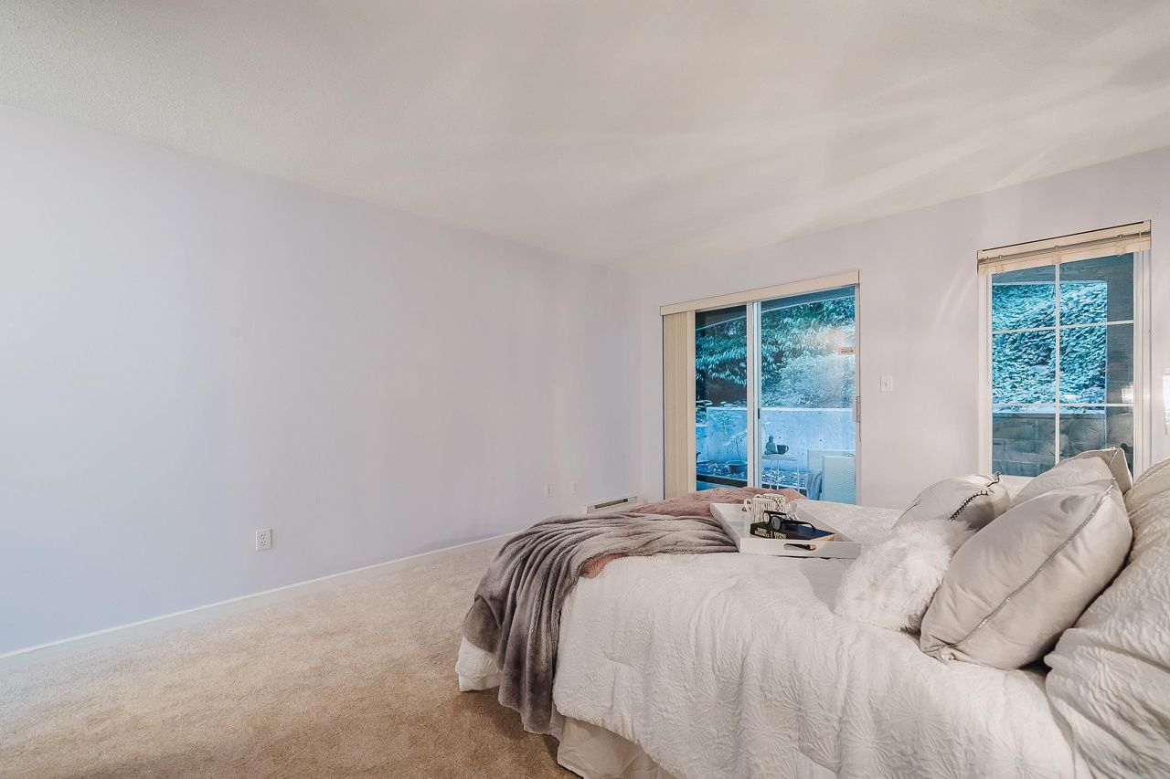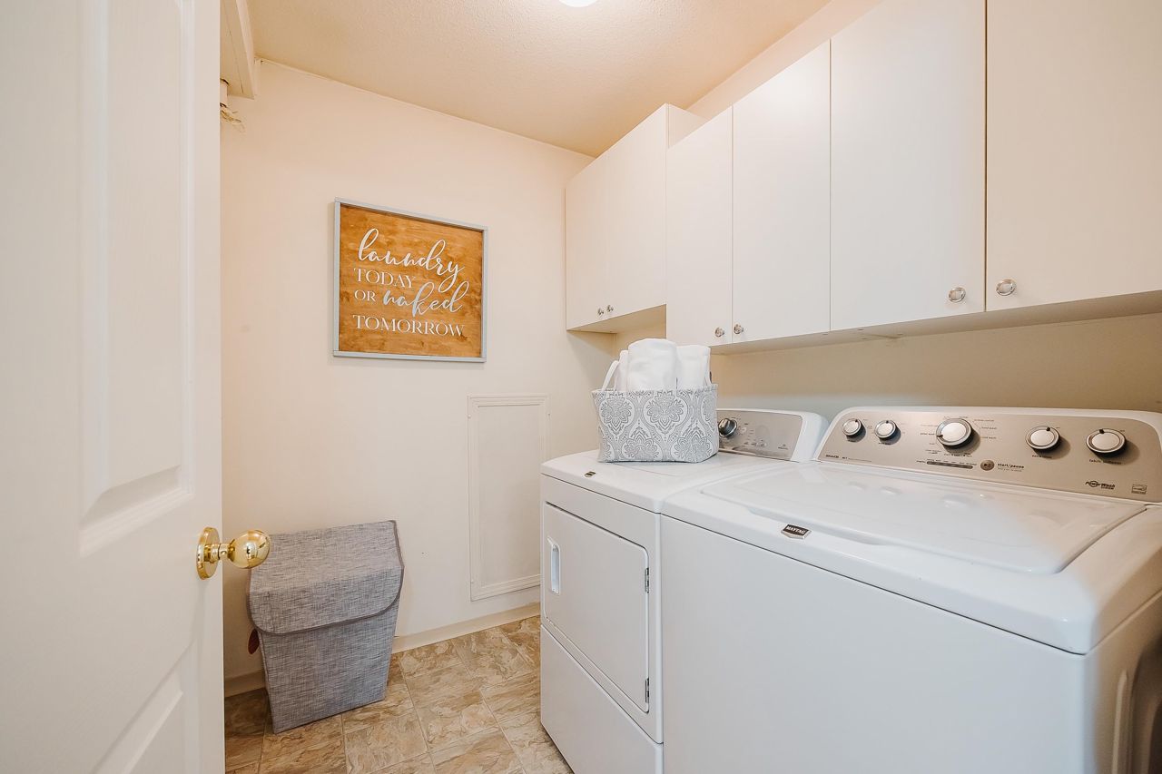 With over 1,200 sqft this 2 BDRM + DEN & 2 FULL BATHS Rancher T/house is not to be missed! Fresh Paint, Updated white Kitch w/Quartz Counters & S/S Appl. Dining Rm opens to Lvg Rm w/a cozy corner gas f/p (included in strata fee). Sliders lead out to the Huge Private Patio that runs the full length of the unit! Full size Laundry Rm w/extra storage, Updated Main 4pce Bath, great size 2nd Bdrm. The Lovely & Spacious Primary Bdrm boasts patio access, New Carpet, Updated Spa-like Ensuite complete w/Heated tile flrs & huge walk-in glass Shower. The airy Den/Office makes working from home a breeze. Prime location too – so close to shopping, schools, entertainment & Hwy 1. Be quick and be in before Xmas!