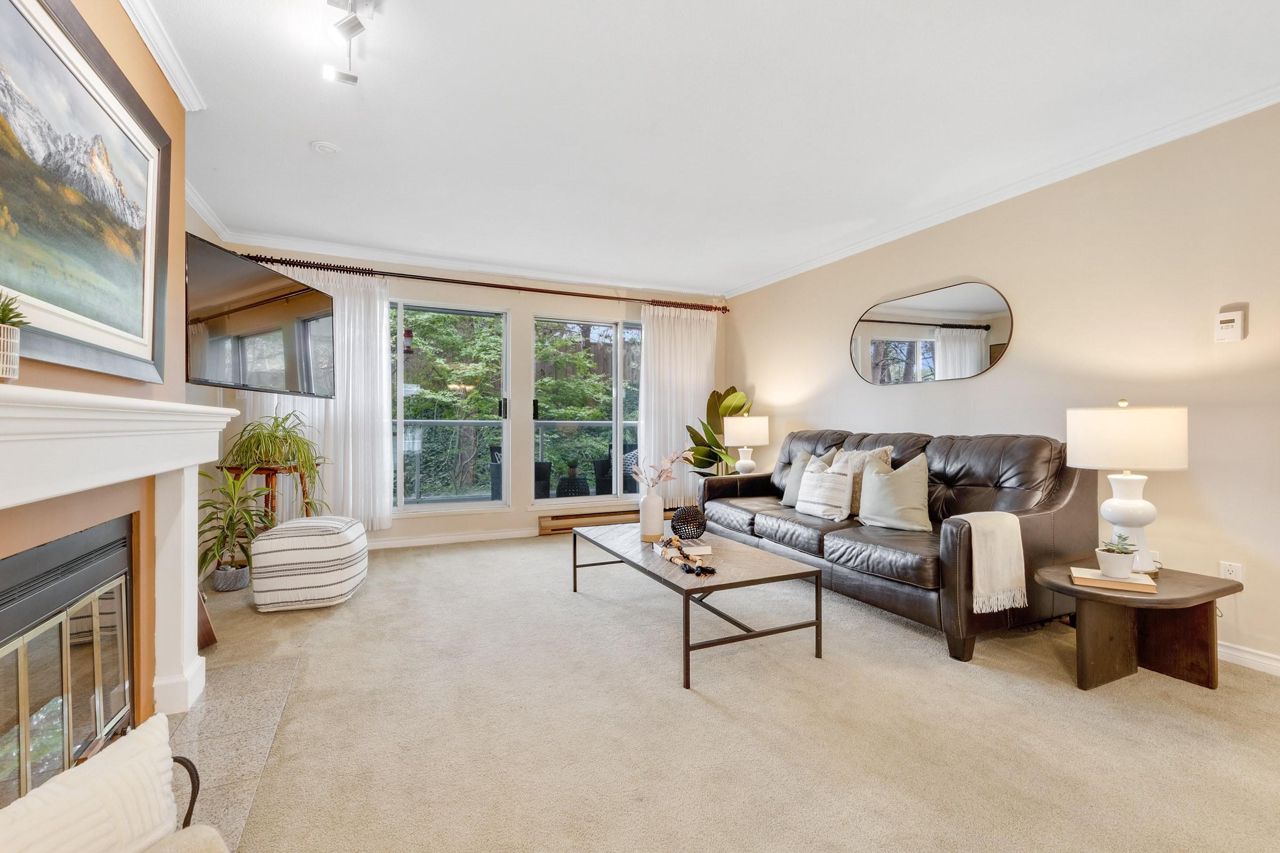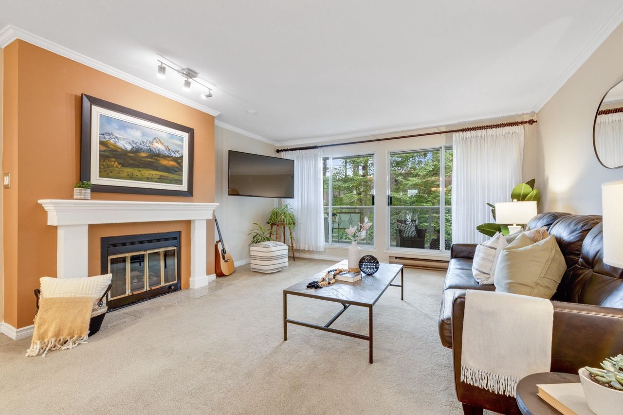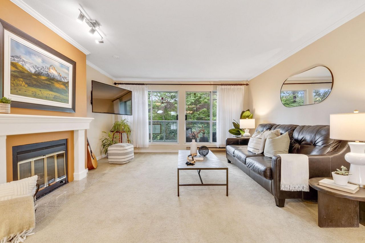 Beautiful 2 bedroom 2 bath condo with garden view. 1169 square feet of living space on one level. Separate dining area. Spacious kitchen with big centre island and cantilevered breakfast bar, pantry & extra storage. Gas fireplace in comfortable living room, sliders to covered balcony on treed side. Good size bedrooms on opposite sides. Well maintained building in quiet residential neighborhood. Proactive strata. Fabulous central location. Walk to Save on Food and Austin Station Mall. Close to Mundy Park and great schools. Fast easy access to Hwy 1 & 7.