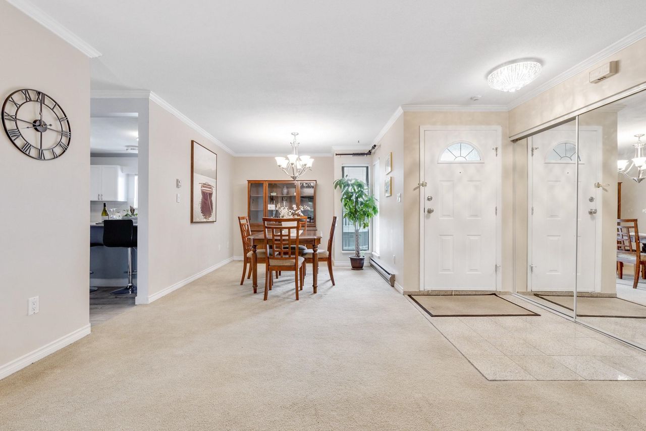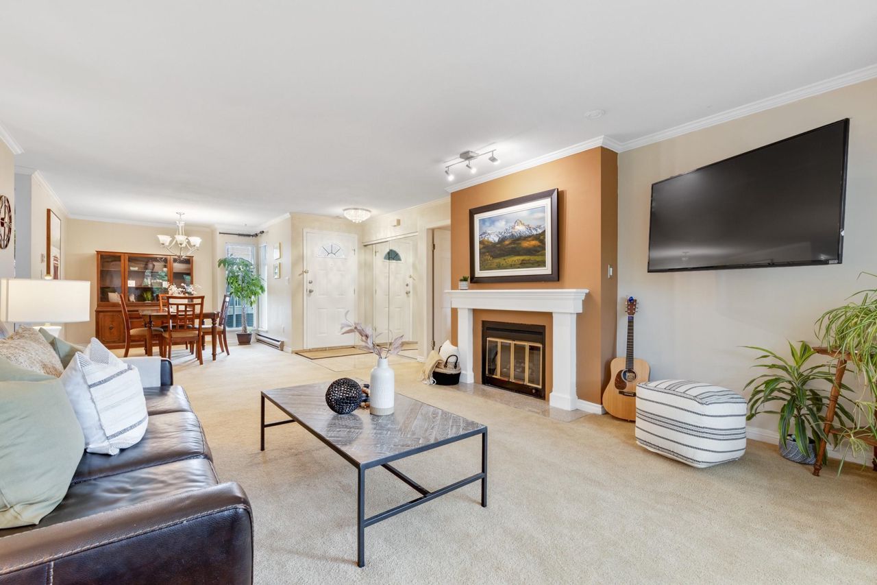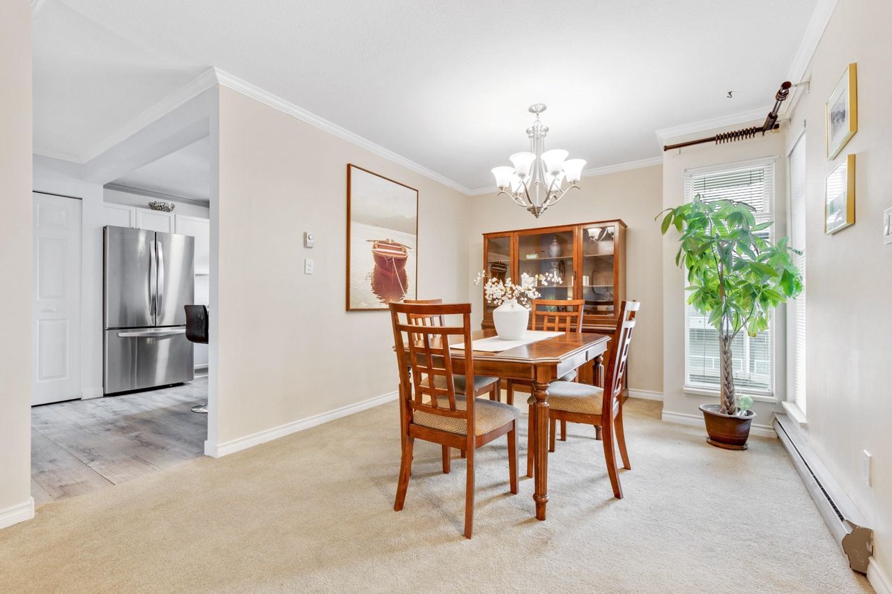 Beautiful 2 bedroom 2 bath condo with garden view. 1169 square feet of living space on one level. Separate dining area. Spacious kitchen with big centre island and cantilevered breakfast bar, pantry & extra storage. Gas fireplace in comfortable living room, sliders to covered balcony on treed side. Good size bedrooms on opposite sides. Well maintained building in quiet residential neighborhood. Proactive strata. Fabulous central location. Walk to Save on Food and Austin Station Mall. Close to Mundy Park and great schools. Fast easy access to Hwy 1 & 7.