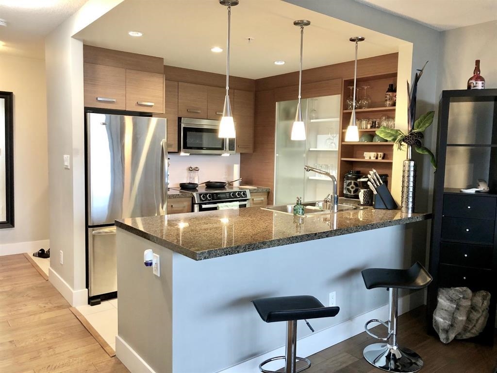 Welcome to The Parc! Gorgeous 680 sq ft 1-bdrm + den suite with rarely available panoramic, unobstructed views. This home features a contemporary, open plan with gleaming engineered hardwood floors, granite countertops in both the kitchen and bath, stainless steel Bosch appliances, cozy fireplace and the floor-to-ceiling windows provide lots of natural light. Located in the heart of Coquitlam's vibrant Town Center - just a short walk to many different restaurants, shops, Coq Center and Skytrain. The Parc is a very well-run Strata with amenities that include a fully equipped gym, wine tasting room and storage locker.