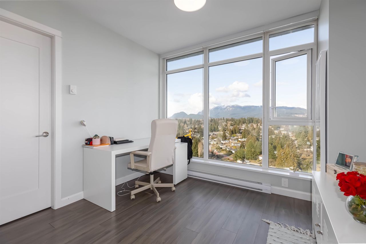 Welcome to the Crown! This 2 bedroom, 2 bathroom plus den corner unit has over 1000 sqft of living space & it is located on the 20th floor. Unit comes with quartz countertops, stainless steel appliances, & even a gas stove. Has floor-to-ceiling windows drawing in lots of natural light, & it includes a balcony great for entertaining. Has mountain views! Centrally located to Lougheed Mall, grocery stores, Coquitlam College, parks, restaurants, cafes, and so much more! Minutes away from BC Hwy 7, Lougheed Hwy, & Gaglardi Way. Convenient for transit users with many bus routes nearby & only a 5 minutes walk to Burquitlam Station. Amenities include a fully furnished guest suite, entertainment room, games room, fitness centre, playground & more. Rentals allowed. Call now to view!