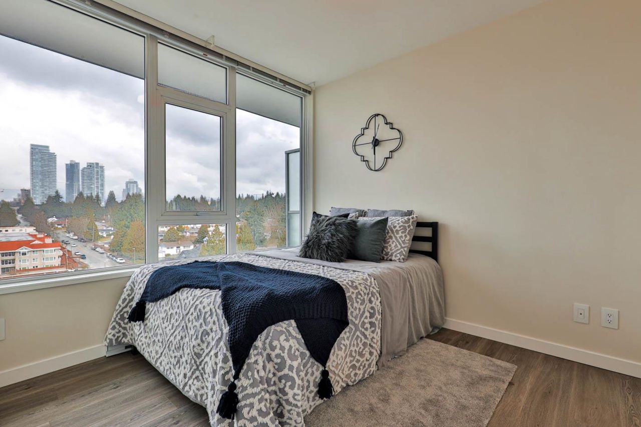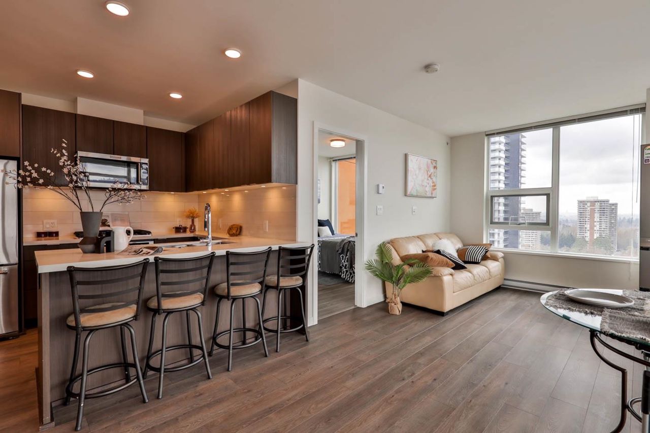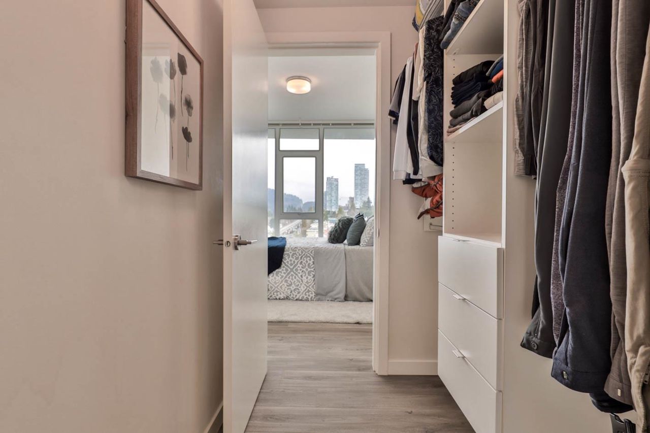 Brookmere Tower by ONNI. Excellent location walk to Lougheed Mall and Skytrain station. 2 BED & 2 FULL BATH NW corner unit with bright and open layout with an extra large balcony. The bedrooms are on opposite side for great privacy. Wide Plank Laminate Flooring throughout. Full sized appliances with quartz stone countertop, kitchen island provide ample space for your cooking or dining use. One parking stall with one spacious locker. Just steps away from Lougheed Town Centre, Lougheed skytrain station and bus stations. SFU is within a few minutes driving distance and Coquitlam College is right beside the building. PET AND RENTAL Friendly!
