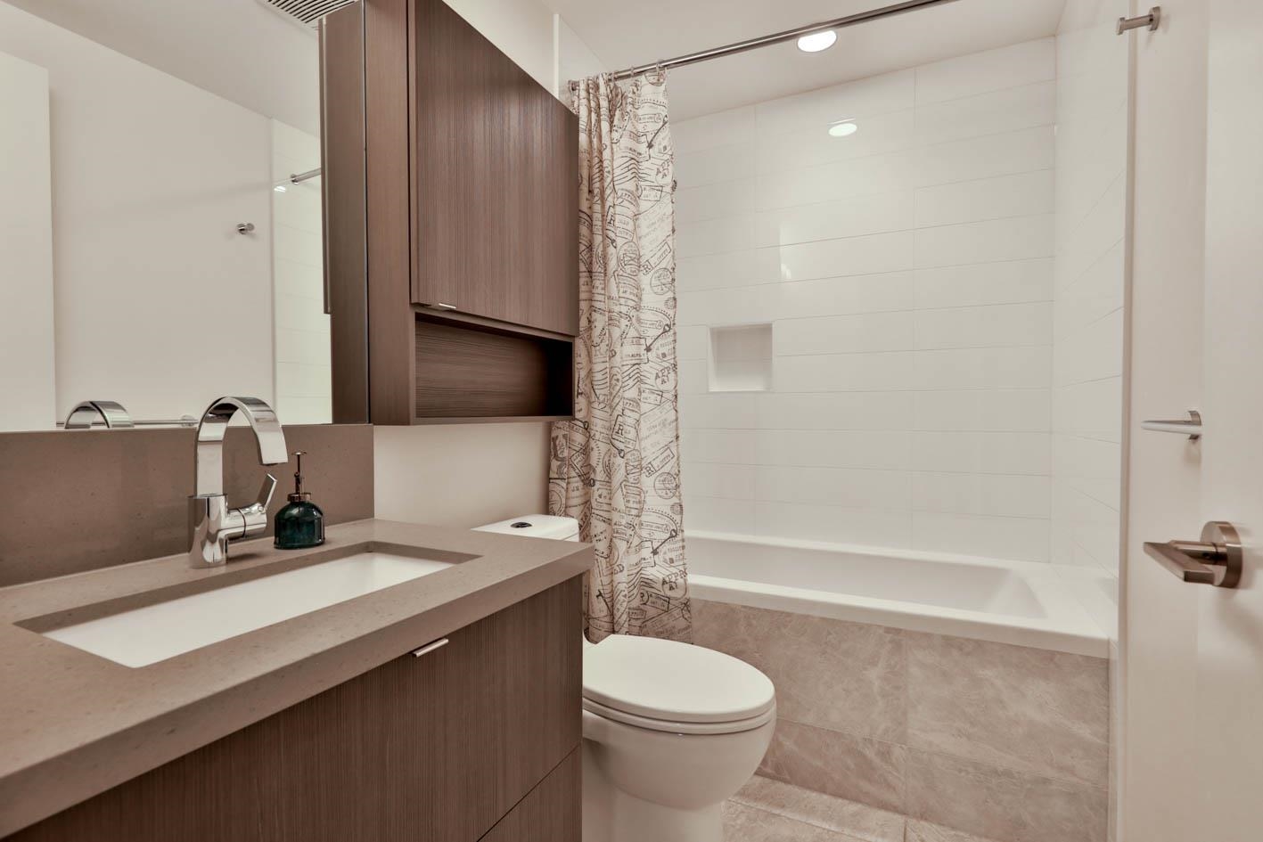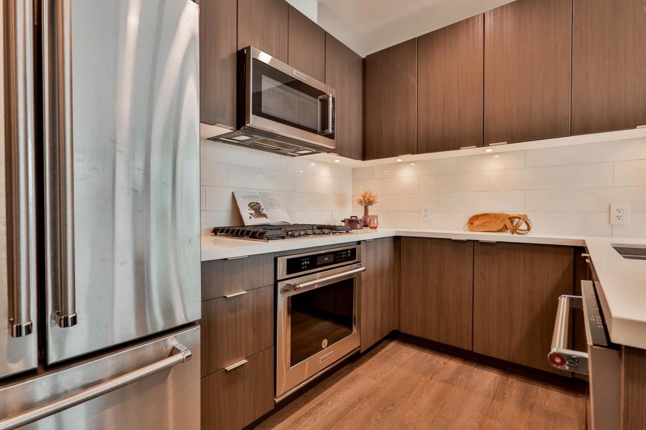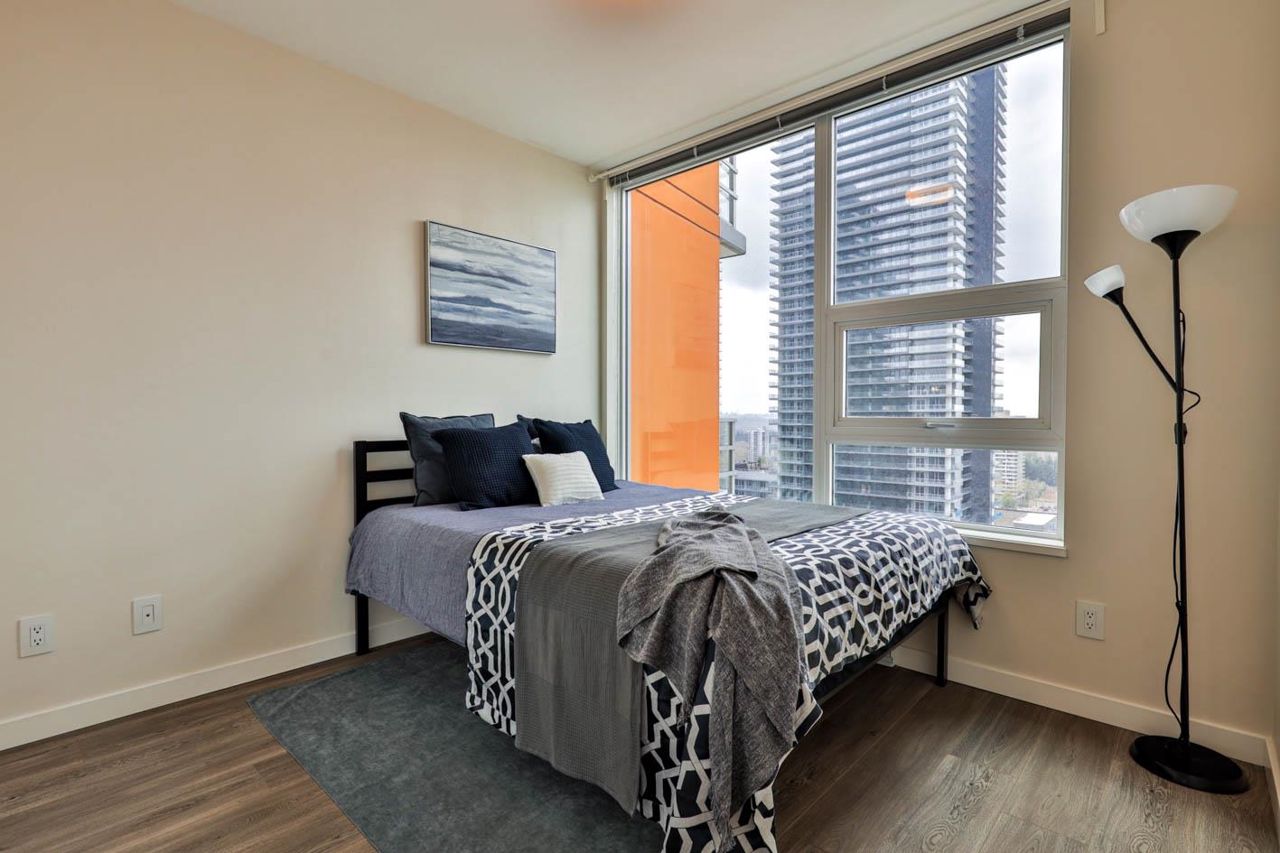 Brookmere Tower by ONNI. Excellent location walk to Lougheed Mall and Skytrain station. 2 BED & 2 FULL BATH NW corner unit with bright and open layout with an extra large balcony. The bedrooms are on opposite side for great privacy. Wide Plank Laminate Flooring throughout. Full sized appliances with quartz stone countertop, kitchen island provide ample space for your cooking or dining use. One parking stall with one spacious locker. Just steps away from Lougheed Town Centre, Lougheed skytrain station and bus stations. SFU is within a few minutes driving distance and Coquitlam College is right beside the building. PET AND RENTAL Friendly!
