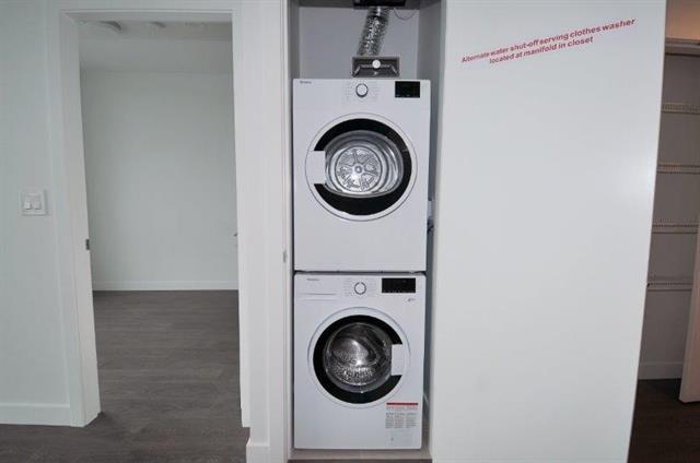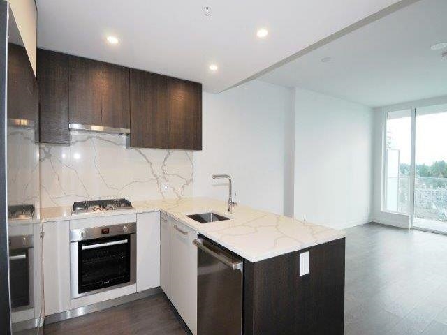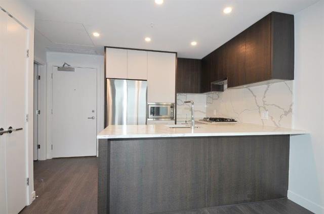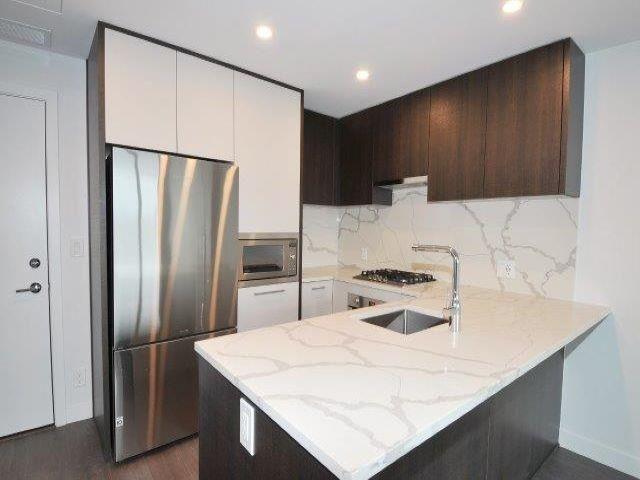 Brand New, never lived in, No GST! Top notch building with 5 star amenities located across from Skytrain, Safeway, local shopping and services. This one bedroom and den home features heat pump technology to provide cooling during those long hot summer days. Kitchen with solid quartz countertops, quality appliances including gas cook top, inverter microwave, disposal system, plus a full height pantry. Master bedroom with 2 closets and walk through bathroom. Huge 20ft by 6ft balcony offers expansive city views, plus plenty of room for patio furniture and barbeque. Parking spot has it's own EV charging station and storage locker is one of a handful of larger units. Amenities, amenities, amenities...too much to list here. Huge outdoor common spaces with killer views, this building has it all.