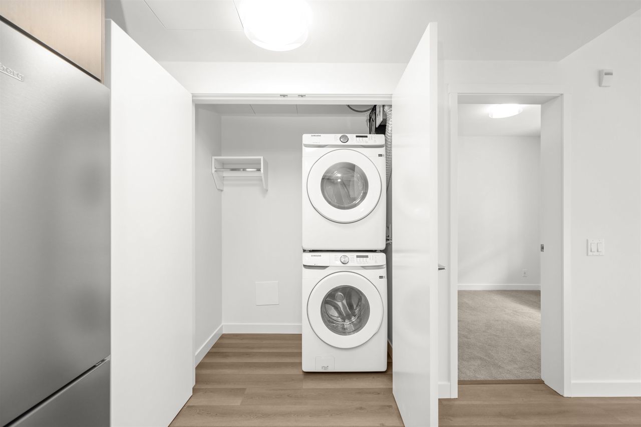 ALERT!! SOUTH facing. DEN. EV CHARGER! 1 PARKING and 1 storage LOCKER included in this 1 bedroom, 1 bath at Port & Mill by StreetSide! Underground parking is double gated. Features premium stainless-steel appliances with Kitchen Aid's 5-burner gas stove, quartz countertops, and Kohler bathroom pieces. The courtyard features an outdoor BBQ, patio seating, playground, indoor lounge, and exercise room. Within a 10-minute walk to Burquitlam SkyTrain and steps from the major bus route. A beautiful neighborhood surrounded by parks and lakes. School Catchment: Miller Park Elementary, Banting Middle, Port Moody Secondary. Book your showing today!