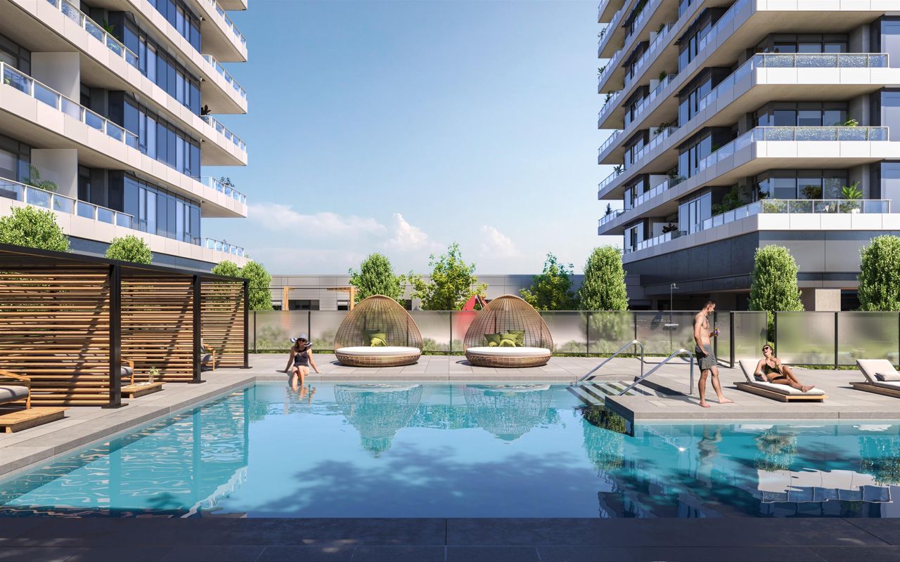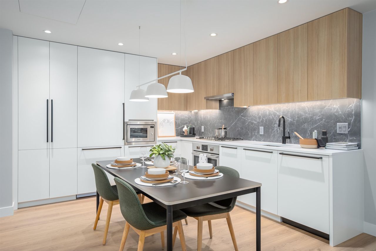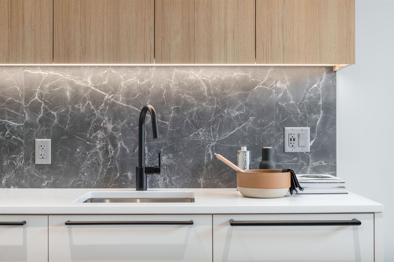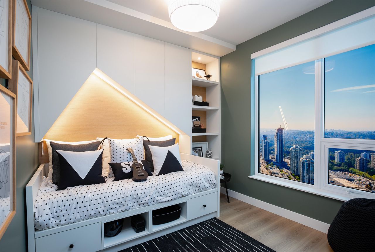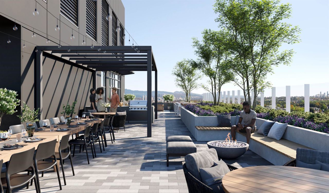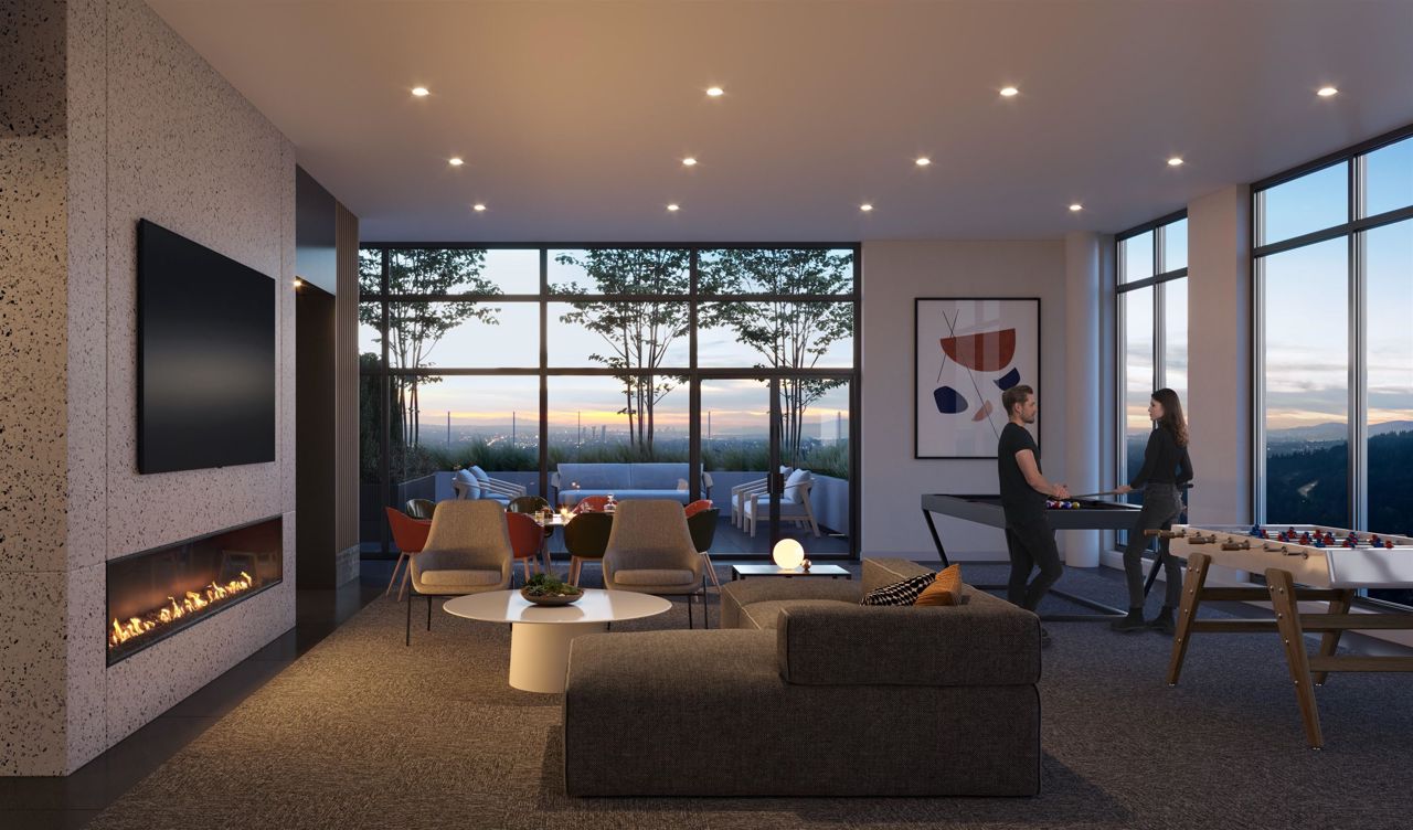 Band by Townline - a 45-storey tower in vibrant West Coquitlam resort inspired amenities and bold archiecture. With spectacular Mountain view, this 917sf home features a thoughtful layout with no wasted space, expansive dual glazed windows, spacious balcony, laminate flooring, kitchen with ample cabinet space, 30 11 integrated Fulgor fridge & dishwasher, Bosch gas cooktop & electric wall-mounted oven, quartz countertop & large format porcelain backsplash. Embrace over 27,000sf of amenities including an outdoor pool with cabanas, fully equipped gym, dance/yoga studio, dog run/wash, garden plots, music room, spa/sauna, co-work space, concierge, 2 guest suites, and a curated penthouse amenity level featuring games lounge,· chef s kitchen, outdoor areas with fire tables/BBQ's & views!