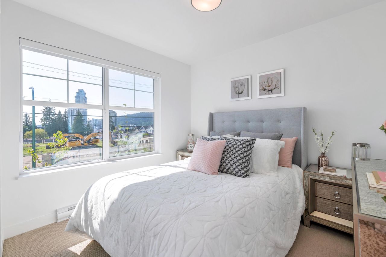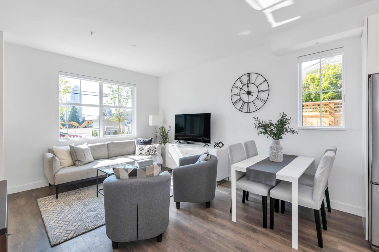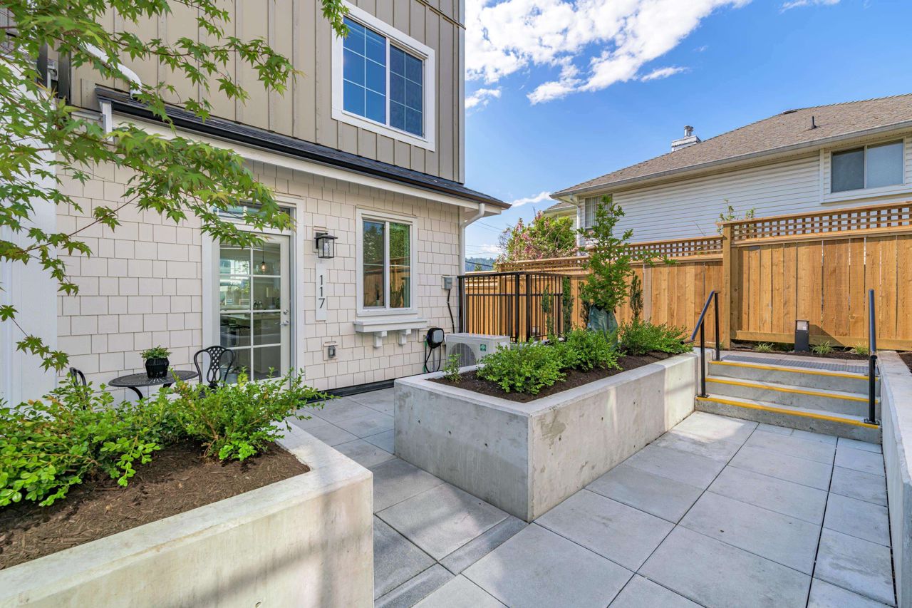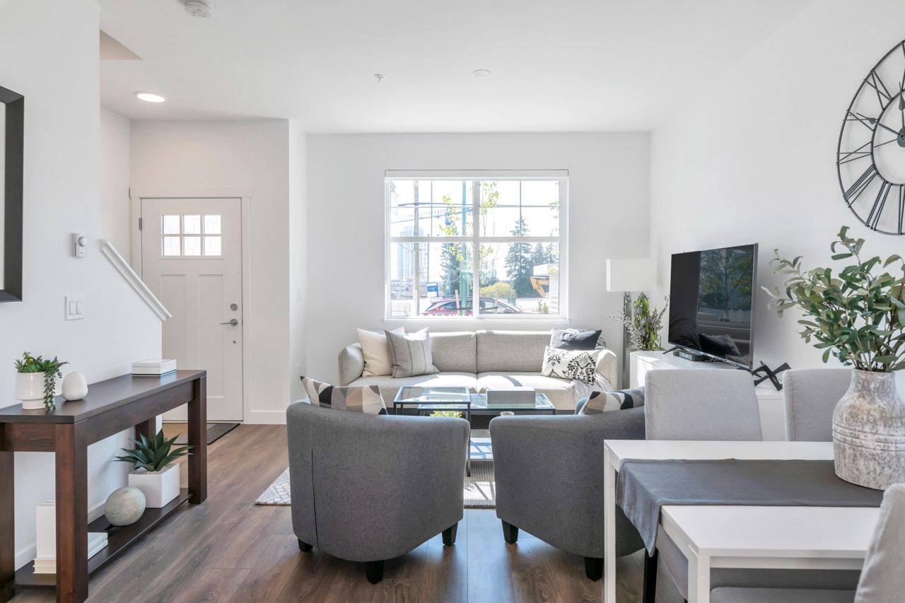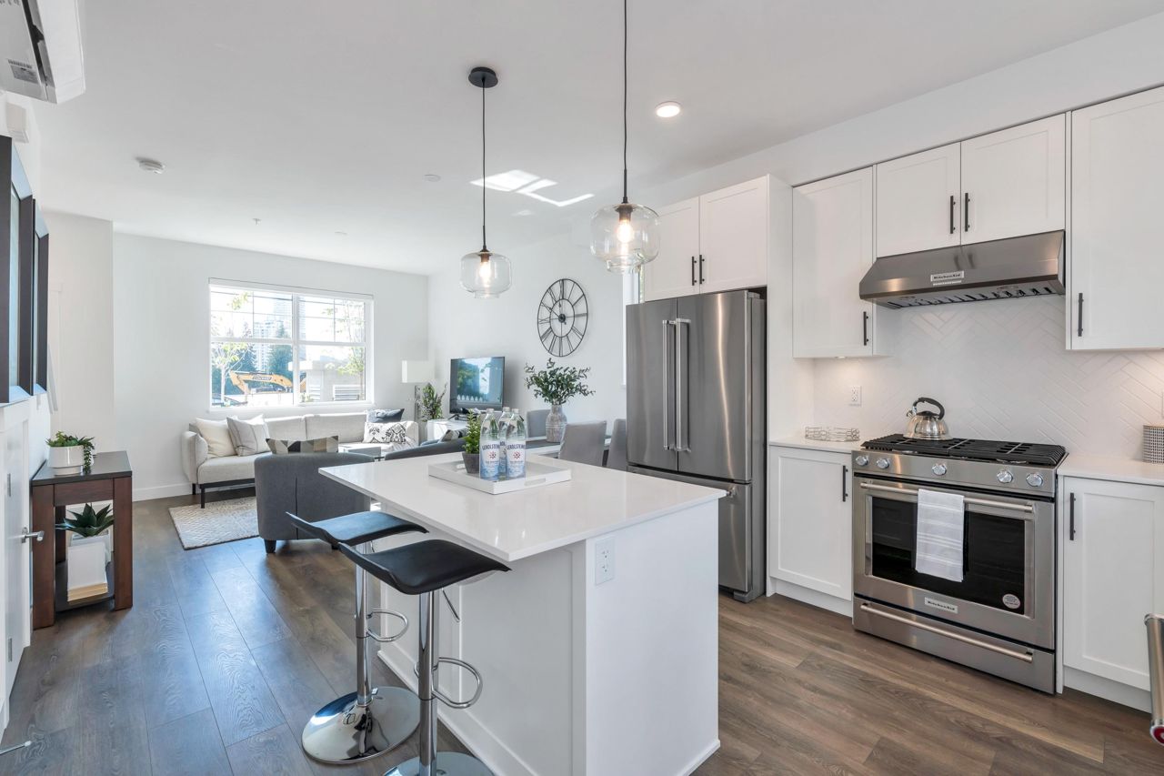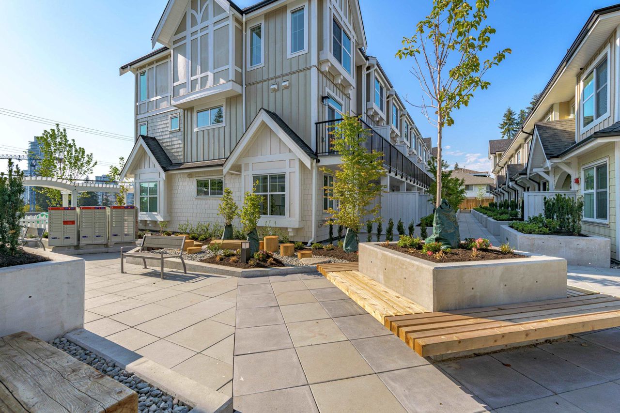 LOOKING FOR A BRAND-NEW TOWNHOUSE 1; LOOK NO FURTHER! This Spectacular 3 bedroom/2.5 bathroom townhouse built by award winning "Formwerks Boutique Properties" a corner prime end unit, facing west and features an open floor plan with premium finishing on 3 levels. Main patio entrance leads into a spacious living/dining/kitchen area with high end appliances, quartz countertops, shaker cabinets and A/C. Top floor is the Primary Bedroom with high vaulted ceilings~Close to schools, restaurants, new North Road shopping, brand new recreation centre, and Burquitlarn skytrain. Comes with 2 prime side by side parking stalls with their own EV charging station, playground, common areas, storage locker and 2 large outdoor patios! One of the nicest T/H available on today's market, come see for yourself!