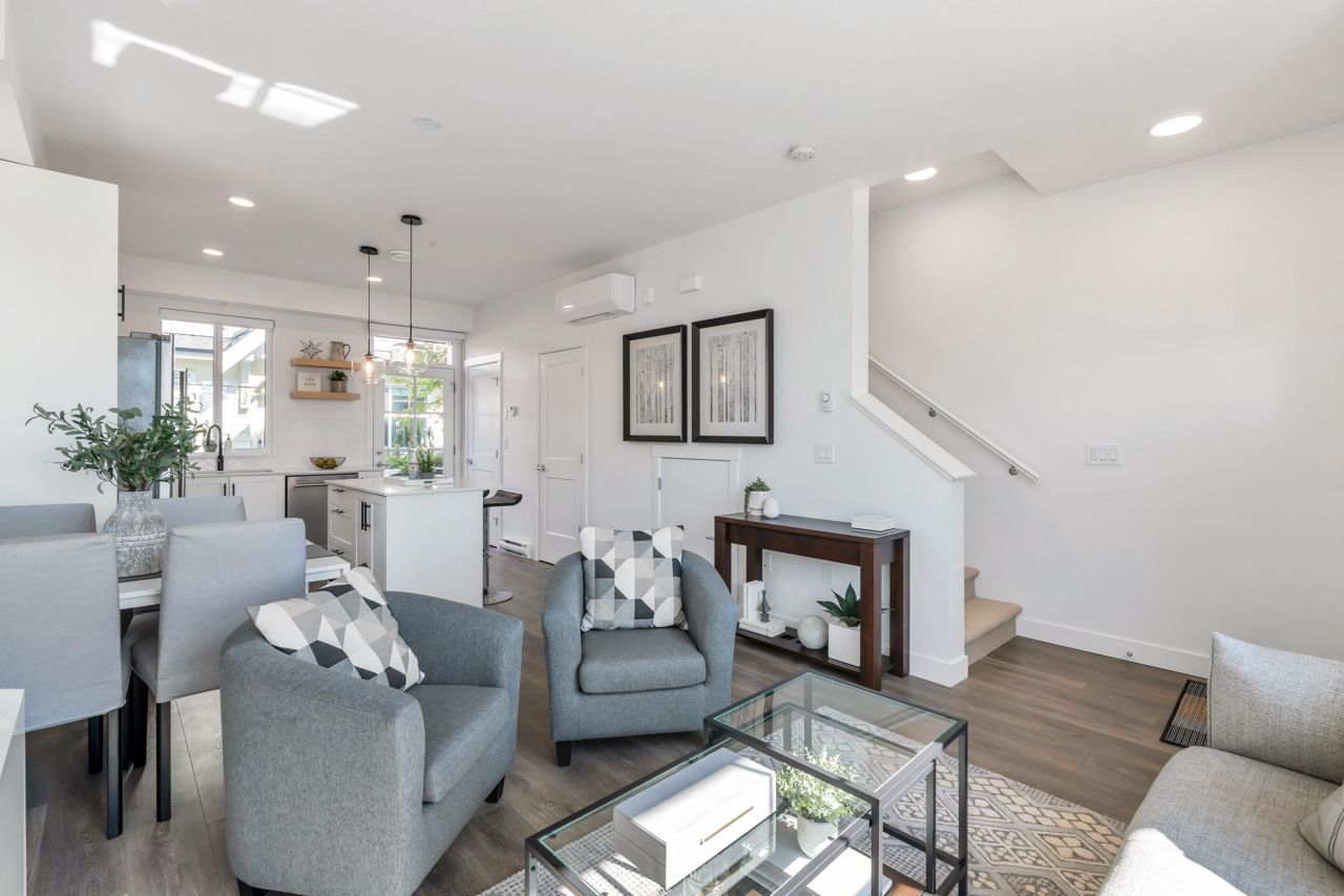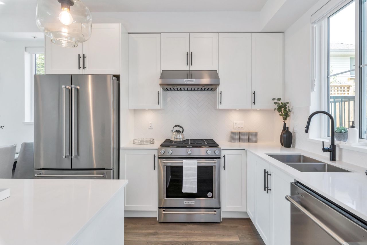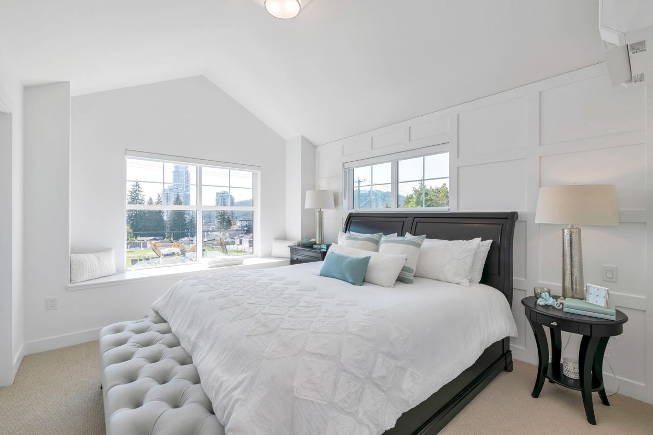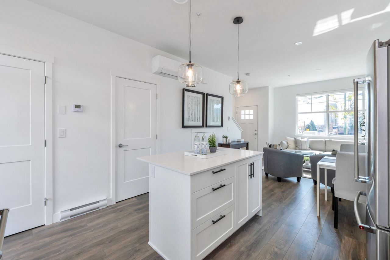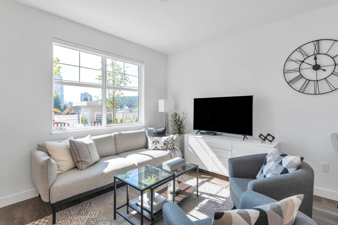 LOOKING FOR A BRAND-NEW TOWNHOUSE 1; LOOK NO FURTHER! This Spectacular 3 bedroom/2.5 bathroom townhouse built by award winning "Formwerks Boutique Properties" a corner prime end unit, facing west and features an open floor plan with premium finishing on 3 levels. Main patio entrance leads into a spacious living/dining/kitchen area with high end appliances, quartz countertops, shaker cabinets and A/C. Top floor is the Primary Bedroom with high vaulted ceilings~Close to schools, restaurants, new North Road shopping, brand new recreation centre, and Burquitlarn skytrain. Comes with 2 prime side by side parking stalls with their own EV charging station, playground, common areas, storage locker and 2 large outdoor patios! One of the nicest T/H available on today's market, come see for yourself!