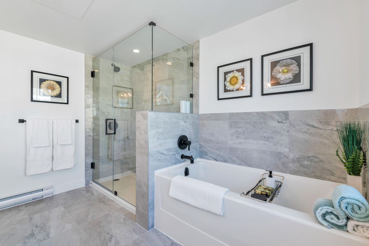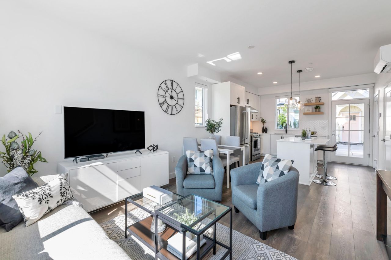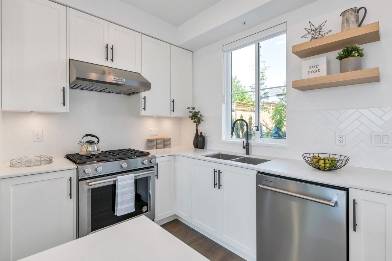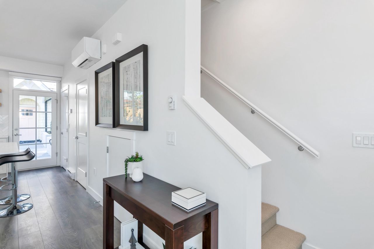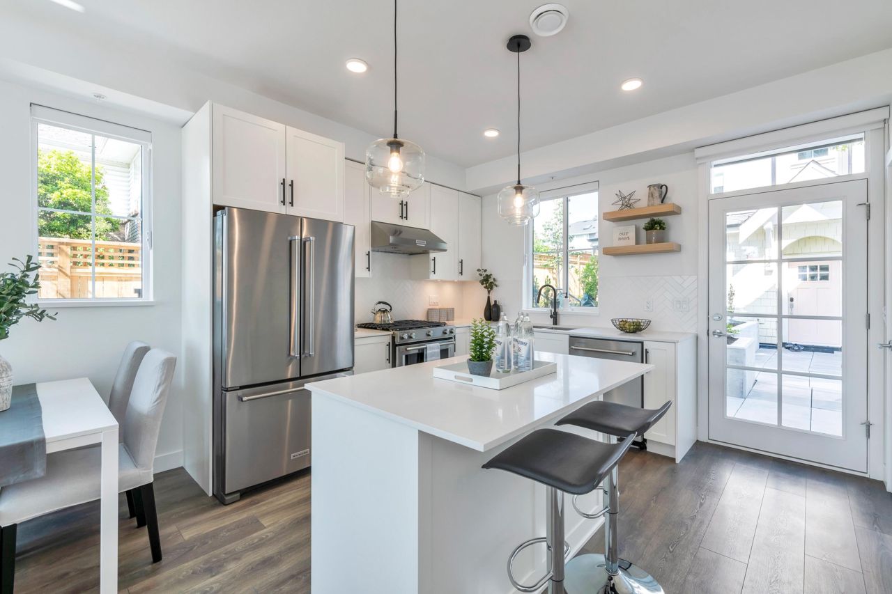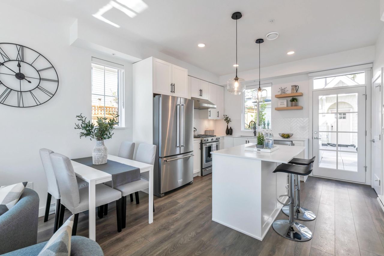 LOOKING FOR A BRAND-NEW TOWNHOUSE 1; LOOK NO FURTHER! This Spectacular 3 bedroom/2.5 bathroom townhouse built by award winning "Formwerks Boutique Properties" a corner prime end unit, facing west and features an open floor plan with premium finishing on 3 levels. Main patio entrance leads into a spacious living/dining/kitchen area with high end appliances, quartz countertops, shaker cabinets and A/C. Top floor is the Primary Bedroom with high vaulted ceilings~Close to schools, restaurants, new North Road shopping, brand new recreation centre, and Burquitlarn skytrain. Comes with 2 prime side by side parking stalls with their own EV charging station, playground, common areas, storage locker and 2 large outdoor patios! One of the nicest T/H available on today's market, come see for yourself!