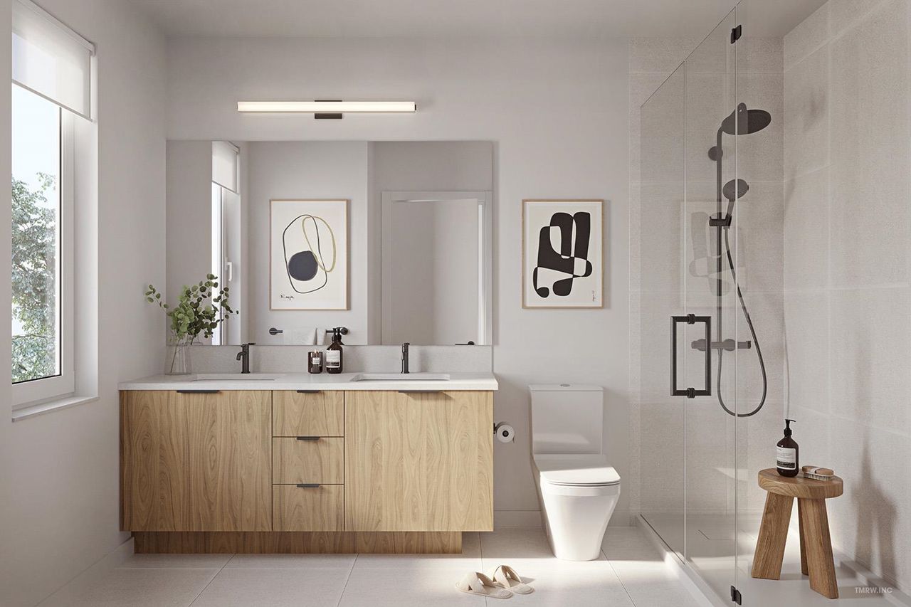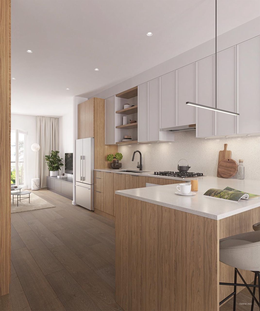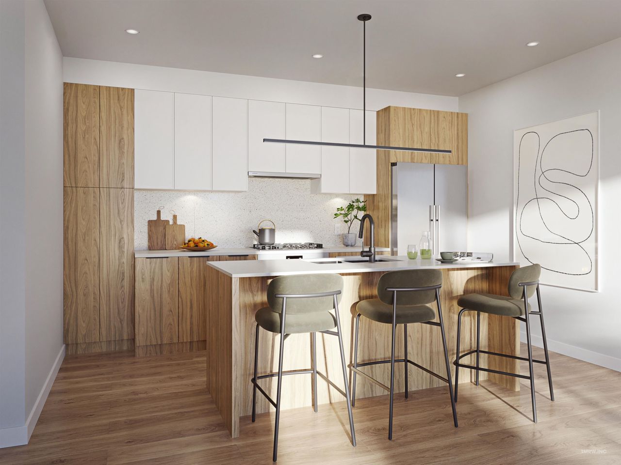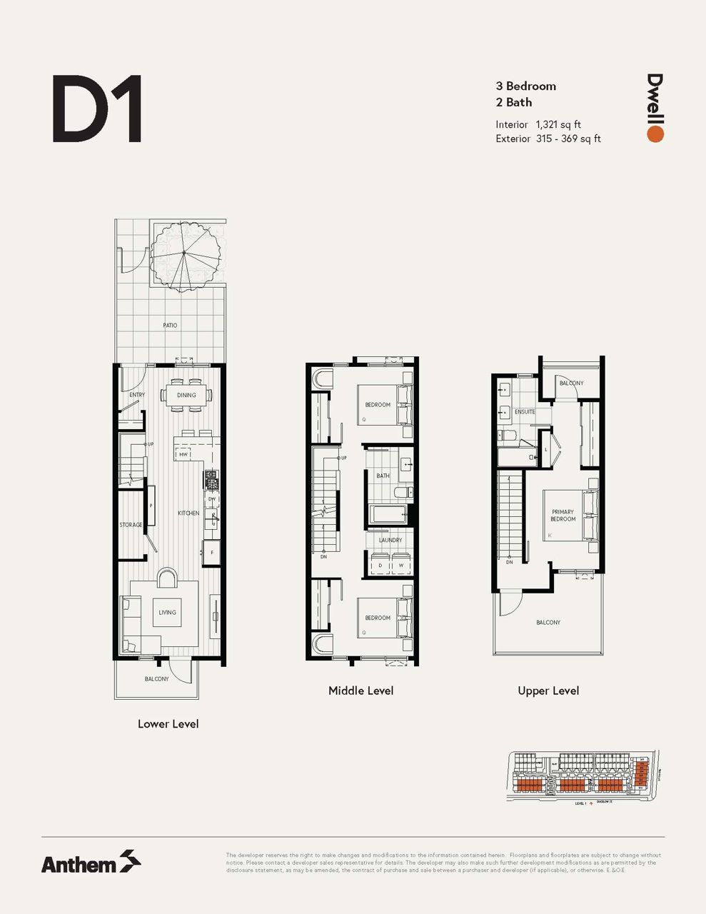 DWELL-This 3 bed & 2 bath home features ample outdoor space including a spacious patio and 3 balconies. The L-shaped kitchen offers plenty of extra storage in the pantry style cabinets and storage room, along with elevated stainless steel and integrated appliances. Primary retreat with double vanity is located on the top floor. DWELL is located on Ducklow St. and Smith Ave., poised in a quiet residential enclave just a short walk from Burquitlam Skytrain, shopping, grocery, dining, newly built YMCA, parks, and much more! One parking and one locker included. Own with only 10% deposit! We have exciting limited time incentives, so visit us today at Anthem's Coquitlam Discovery Centre located at 507 North Road. Open Sat - Wed 12pm-5pm. Sizes are approximate and included in Disclosure