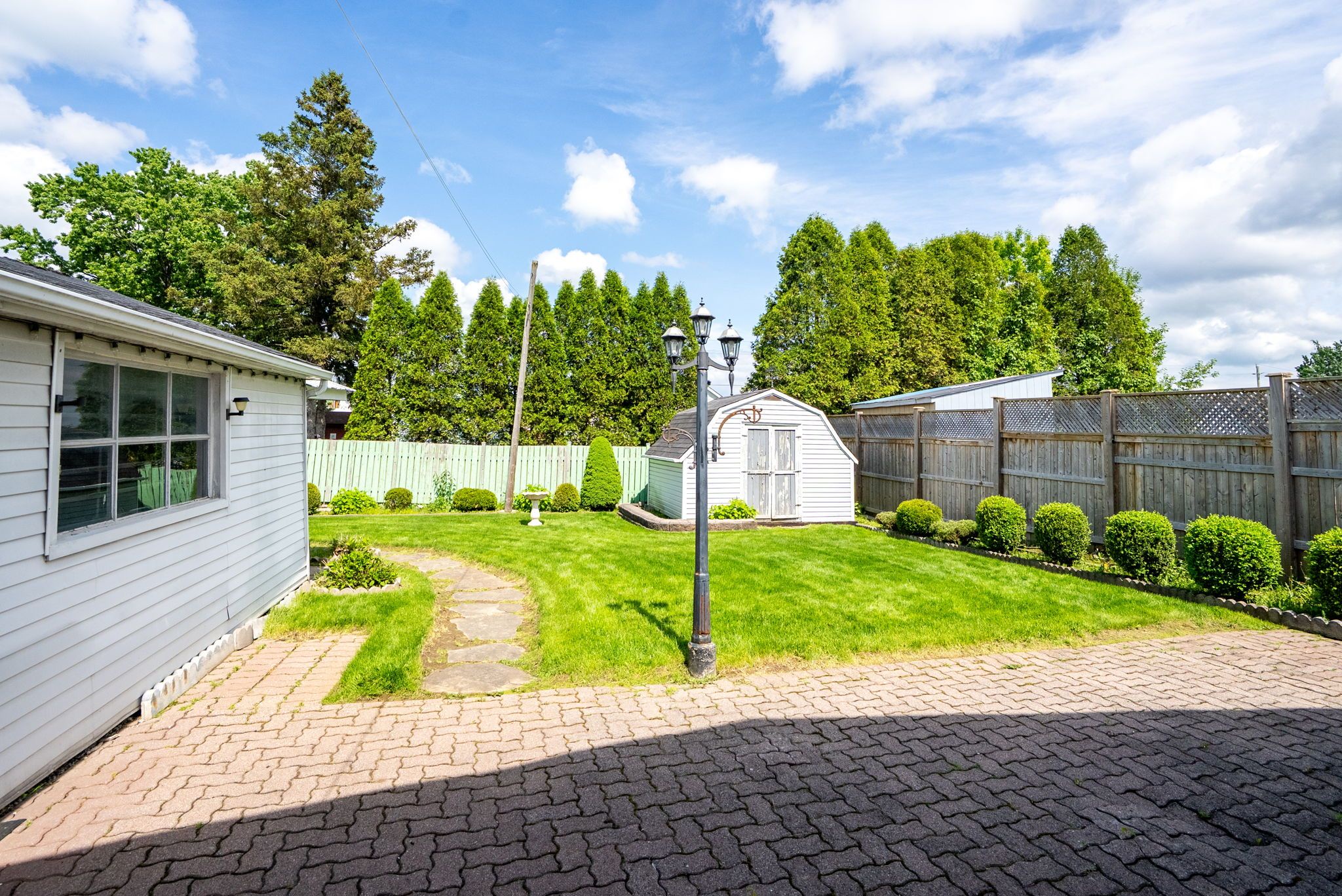 Pride of ownership shines through this meticulously maintained 2 bedroom / 1.5 bath brick bungalow, walking distance to all amenities in the East End of Cornwall. The kitchen boasts Cherrywood kitchen cabinets with built-in stove top & oven. Landscaped private fenced in backyard for your enjoyment. Gleaming hardwood floors in Family/Dining Room(s). South side entrance could potentially become a separate entry for lower level income. Detached 1 car garage boasts an additional back room equipped with a workbench that will cater to any handyman. 3 car length interlocking brick driveway, and side walkway. Roof 2010 with 35yrshingles. Furnace & A/C 2014. Most windows replaced in 2012.