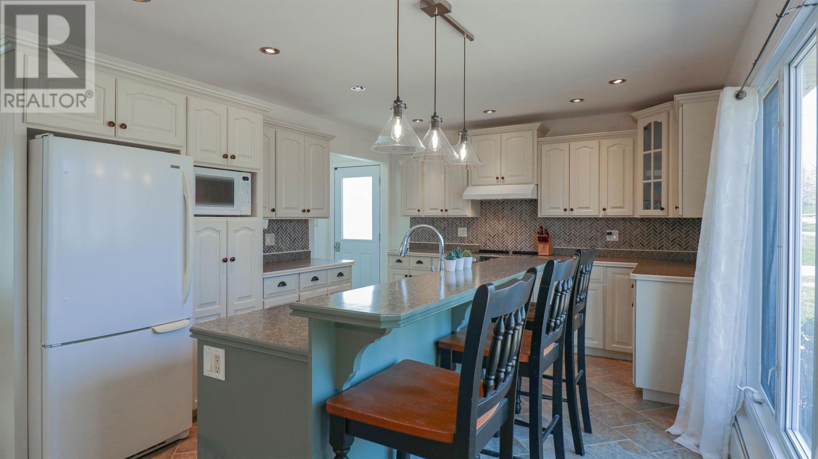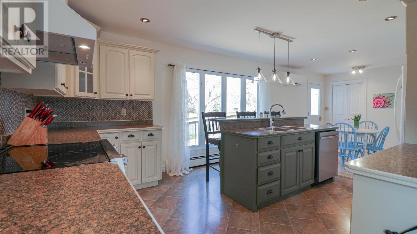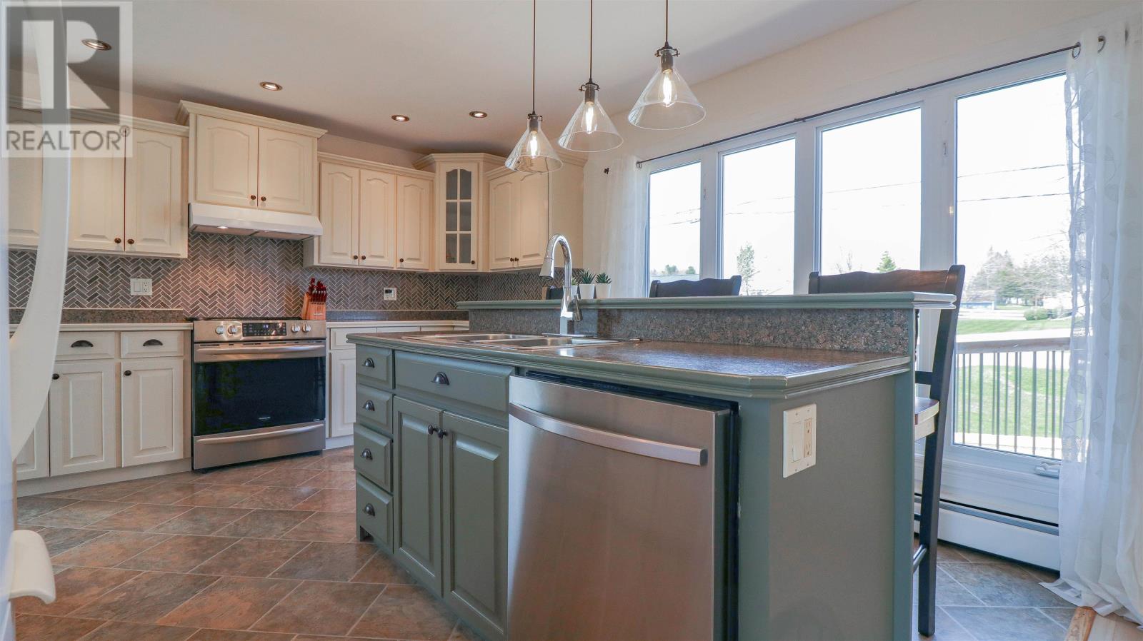 Welcome to 4 Birch Street in Cornwall, PEI! This rancher style home is situated in a quiet subdivision in Cornwall, but is close to many amenities. It has seen an incredible amount of updates recently and is move in ready! Inside, there is a large renovated kitchen with a two tiered island equipped with eat-in seating, tons of counter space, and storage. The cozy but spacious livingroom has access to the back two-level deck which boasts tons of sunshine throughout the entire day, for those hot summer days. There are two spacious bedrooms and a 4 piece bathroom on the main floor. Downstairs, you will find a 3rd bedroom, a large rec room (with brand new vinyl plank flooring), a den with french doors which would make a perfect office or crafting space, and a second 3 piece bathroom! Outside, the tastefully built wheel chair ramp offers easy access for those with mobility issues, a paved driveway, and a beautiful, spacious, and private 0.36 acre corner lot! Additional updates include: roof (2022), oil tank (2020), water heater (2022), vinyl plank flooring downstairs (2023), doors, custom cabinets, bathroom renovation, and much more! Heating is a breeze with two a ductless heat pump on both levels with a back up oil furnace. In addition, the heat pumps offer cooling in the summer! This lovely family home is close to Westwood and Eliot River schools, shopping, transit, and parks. Property Taxes are $1841 per year. Fridge, Stove, Washer, Dryer, Dishwasher, and Shed are included in the sale of this home. Call to arrange your viewing! All measurements are approximate and should be verified by purchaser(s). (id:22211)