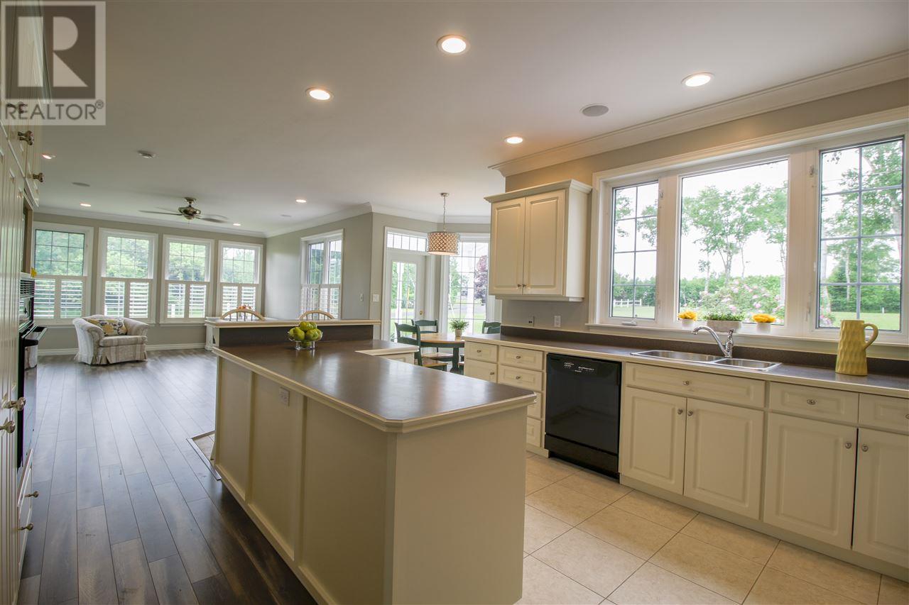 This custom built home with panoramic water views of the Charlottetown Harbour features fresh interior paint and flooring. Its move in ready! As an added bonus, there is a 936 sq. foot in-law suite or office over the triple garage. This could also be a perfect Air B&B area. Families will enjoy the bright and spacious open concept kitchen/great room with a bay window eating area, breakfast bar and a propane fireplace. With plenty of counter and cupboard space, this is the gathering area of the home. Both the dining room and living room with propane fireplace, look out to the views of the Charlottetown Harbour and can easily accommodate large groups of family and friends. Upstairs you?ll find the master suite with a propane fireplace, bay window overlooking the view and a spa like ensuite with a soaker tub, double sinks and separate shower. There are 2 generous size bedrooms on this floor and on the 3rd floor there are 2 more bedrooms which could be playrooms or office space. This home is family friendly with huge mudroom/entry off the triple garage. Being less than 10 minutes to Charlottetown allows one the peace of country style living with the convenience of the city just a short drive away. (id:22211)