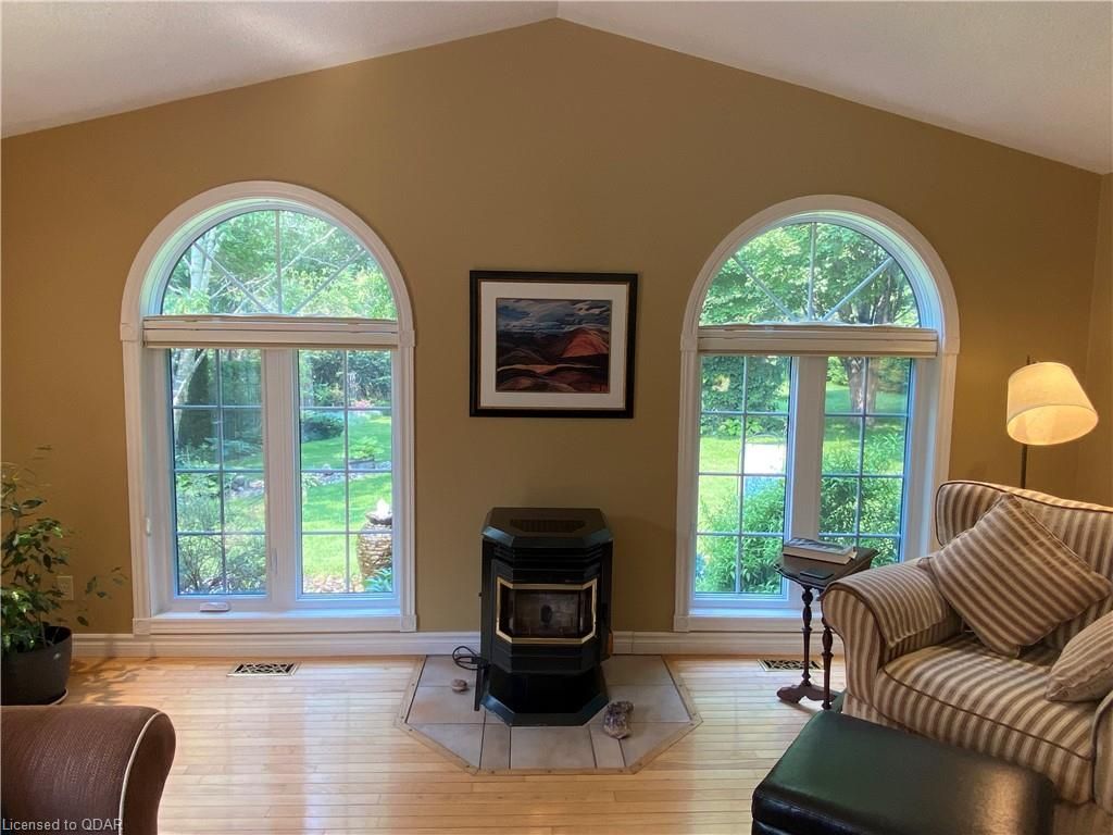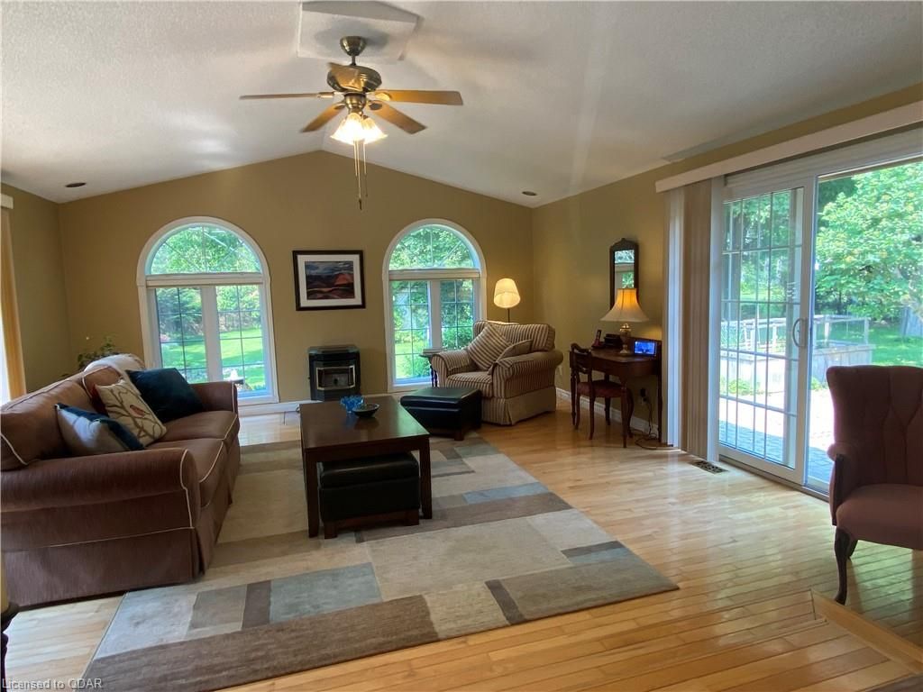 A beautiful well maintained and cared for home on almost 1/2 acre lot. Many well done updates and improvements over the past few years have created this edge of town Paradise. Upgraded appliances, Doors and windows, hardwood floors, central vac. Heated by Forced air heat pump system plus 2 wood pellet stoves for extra comfort. Full feature sheet shows list & dates of improvements available. Extra large yard with many perennials, many decorative and ornamental trees, shrubs and plants plus a yard water system. A patio area has w/o from living rm, and south deck also has w/o from living room. Great for family spaces. Truly a home ownership opportunity you will want view & consider.