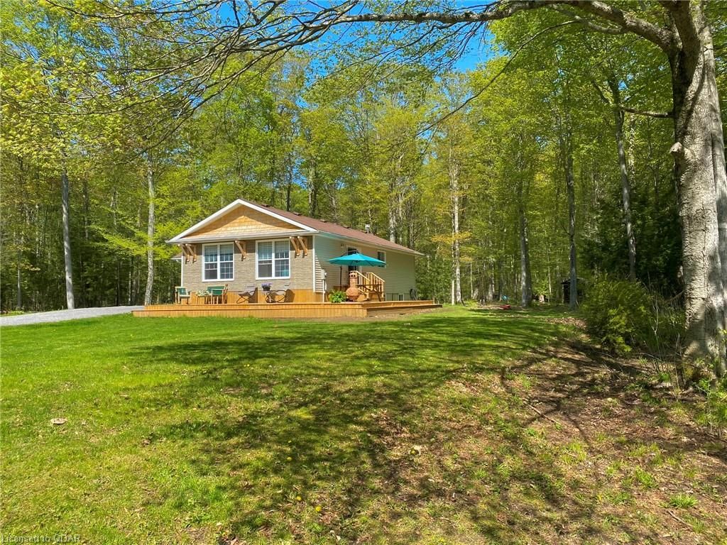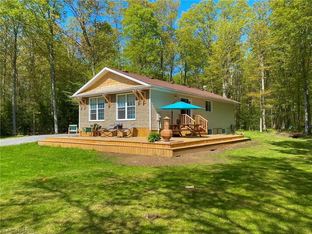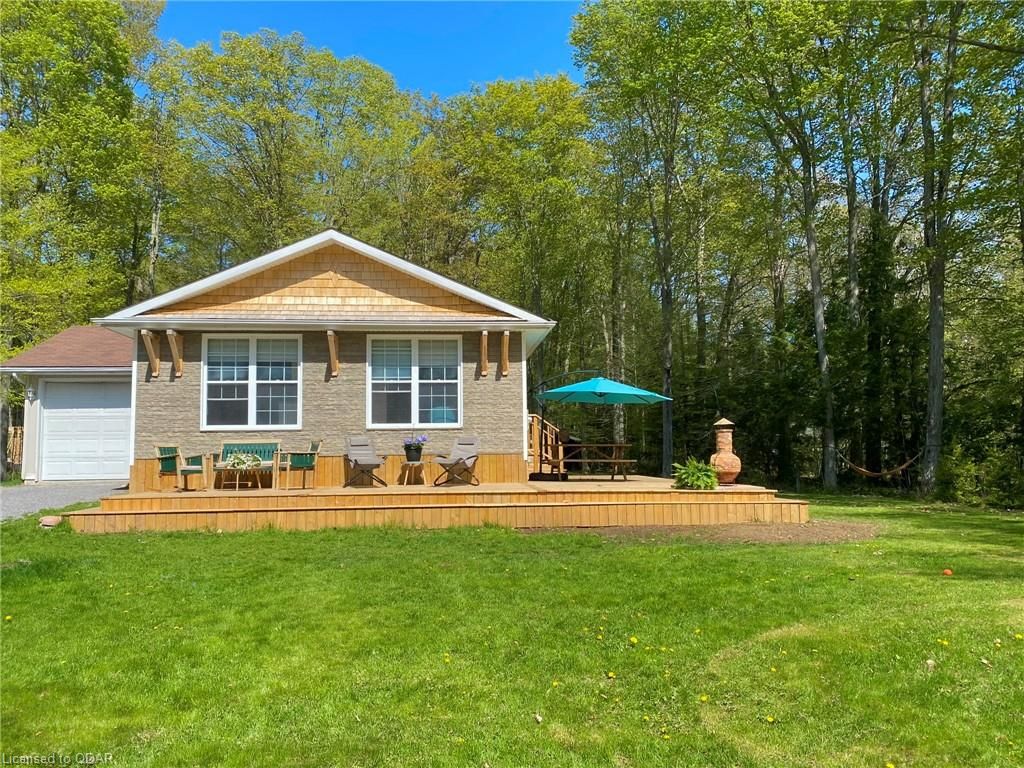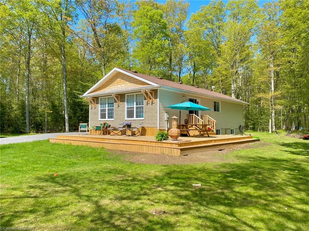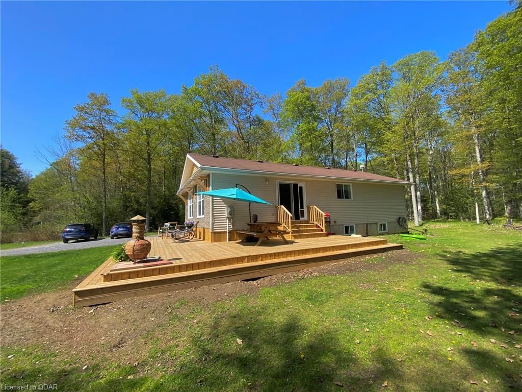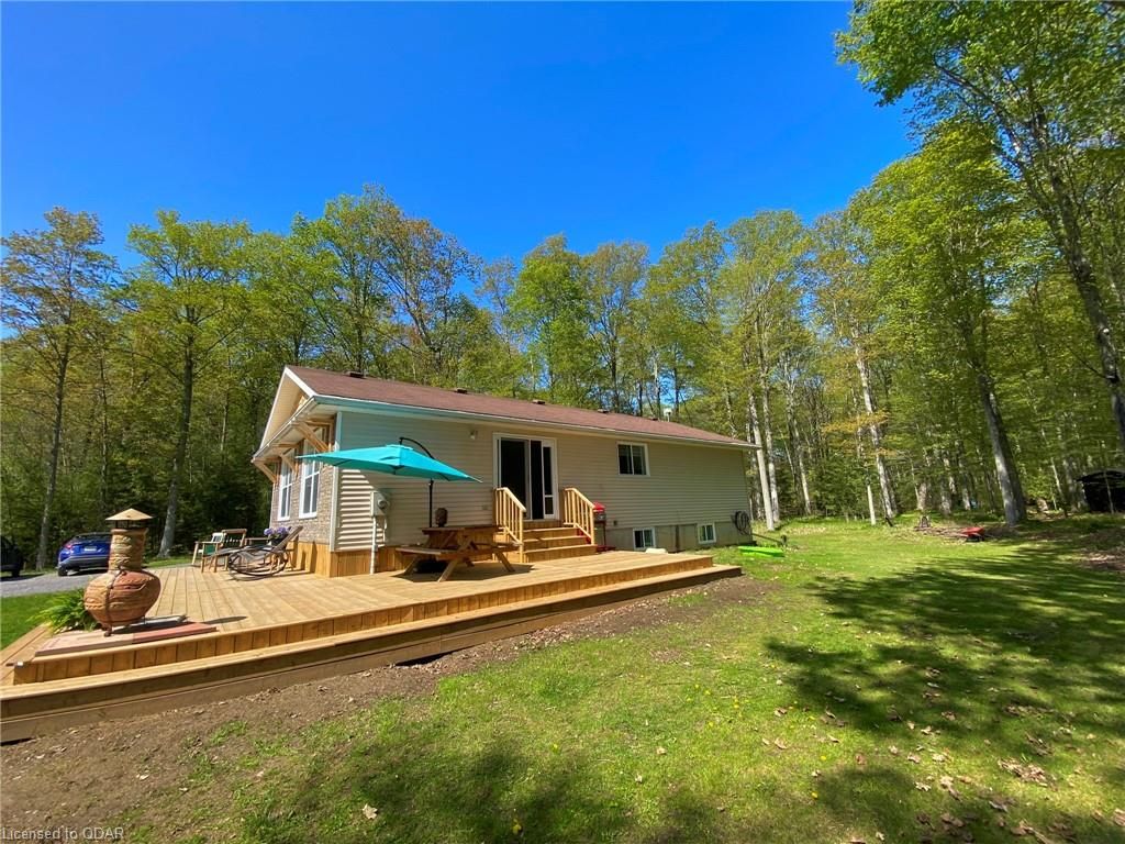 A Contemporary, well-upgraded interior awaits when you enter this unassuming home set on a bespoke lot known as ALEK's Acre. A Contemporary Raised Bungalow full of Culture & Style. The exterior suits the surroundings with cedar shake, beams & rustic curb appeal as the interior surprises with many upgrades & modern finishes. This home sits pretty & relaxed on a Private forested lot in a tranquil locale 5 Mins to the 401 yet feels light years away from the busy world. This well-curated home uses space wisely with a concise floor plan that affords easy maintenance & city style interior. Modern kitchen w/ granite counters, wood flooring & built-in cabinetry throughout main floor. Fireplace w/ Marble wall. Lots Of Sunlight & Relaxing Nature Views from many windows. The home is well-suited for entertaining. The Glass Doors walk out from an open-concept living/dining room to a newly built 640 sq ft Wrap-Around Deck & peaceful fresh air. Stroll your grounds & experience Forest Bathing on your own land. Less light pollution for stargazers. Privacy Trees Surround this demure home in a quiet location. Come to clear your mind and your to-do list. This is a home that is move-in ready. Unpack & unwind. If you seek an Environment inspiring enough to write your novel, or maybe just read some, you will find respite here. Great for weekend Staycations. Outdoor Recreation Fans can Snowshoe, Hike, Snowmobile or Bike from your door. This clean, clear home is a perfect place to set up a Work-From-Home Office that feels airy & joyful without distractions. The Raised bungalow brings lots of additional living space: a guest bedroom & large rec room & office with big windows to take in the views from the lower level too. Wood Flrs. Cathedral Ceiling. Marble Fireplace Wall W/ Electric Fp. Granite Counters, Tile Backsplash. New 640 sq ft warp-around Deck 2023. All Appliances: Fridge, Stove, Microwave, Dishwasher, Washer/Dryer. Dble Liner Oil Tank installed 2013.Wetlands/Ep On Some Areas.