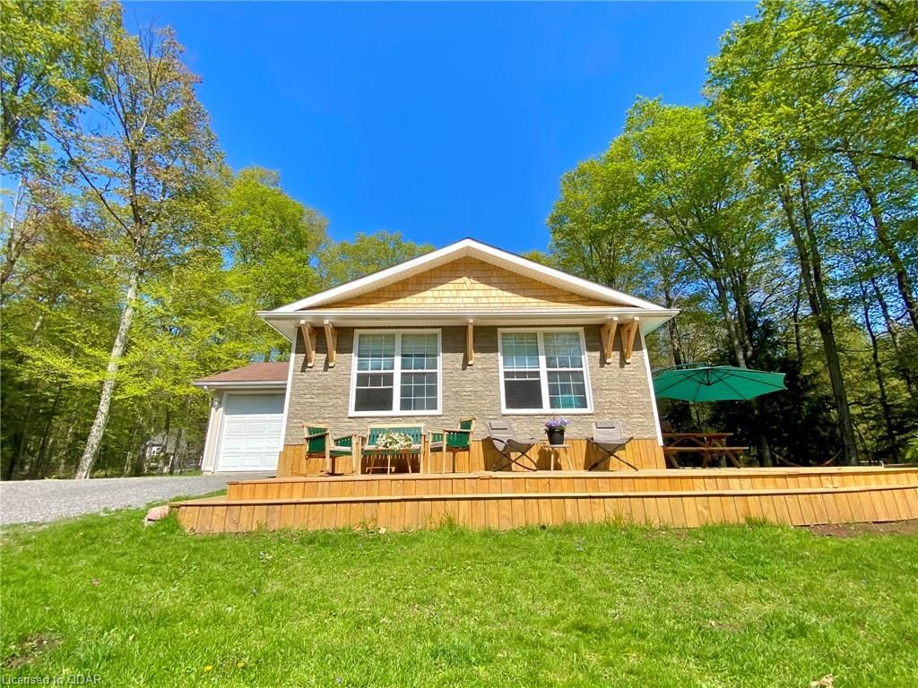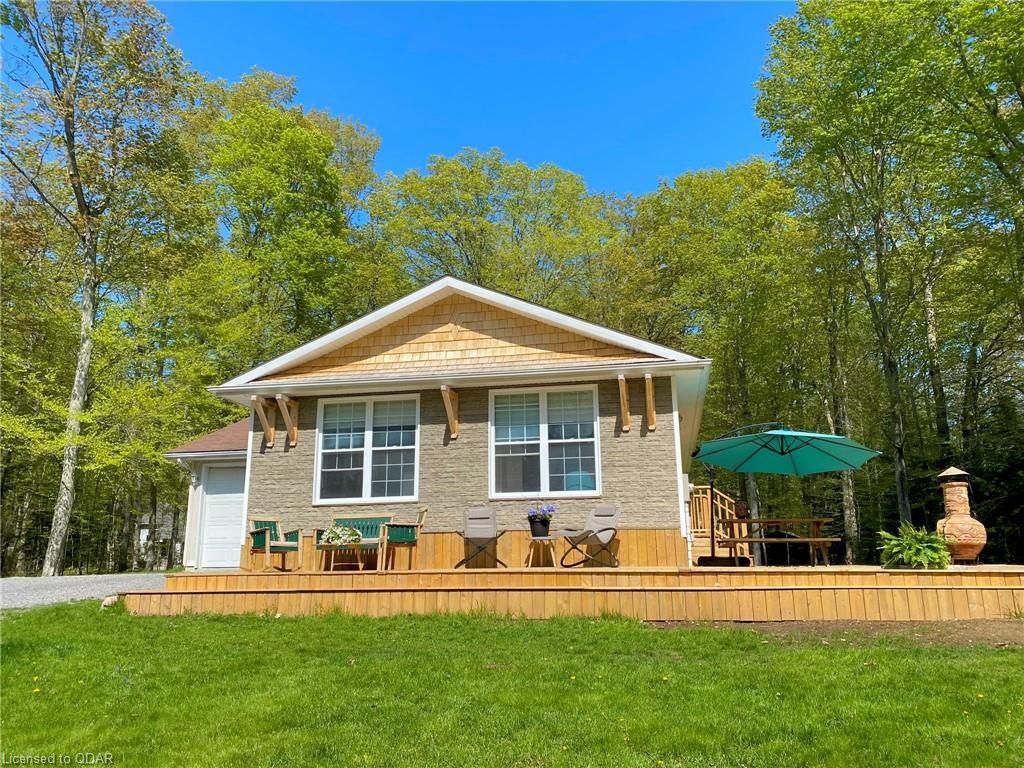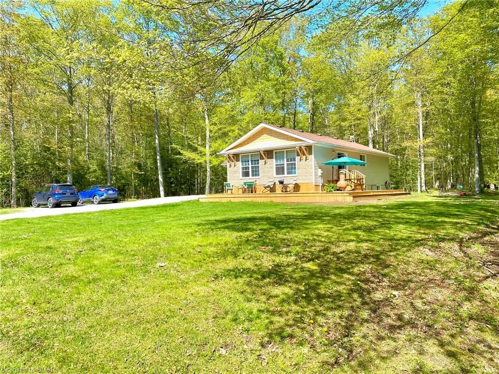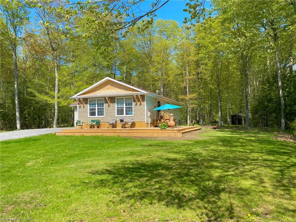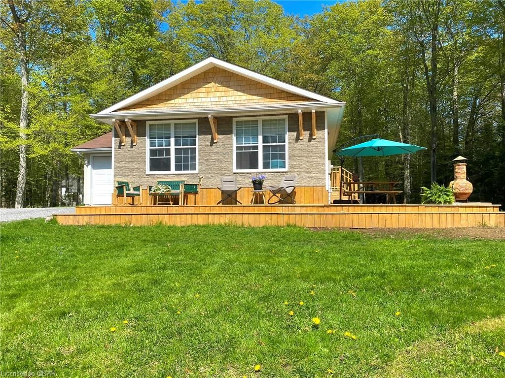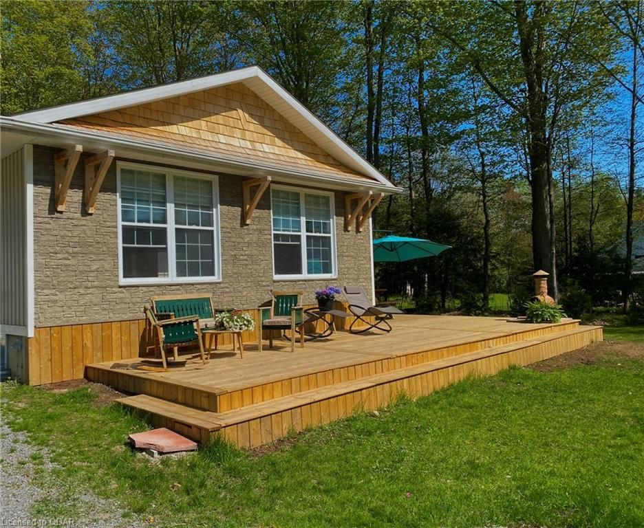 A Contemporary, well-upgraded interior awaits when you enter this unassuming home set on a bespoke lot known as ALEK's Acre. A Contemporary Raised Bungalow full of Culture & Style. The exterior suits the surroundings with cedar shake, beams & rustic curb appeal as the interior surprises with many upgrades & modern finishes. This home sits pretty & relaxed on a Private forested lot in a tranquil locale 5 Mins to the 401 yet feels light years away from the busy world. This well-curated home uses space wisely with a concise floor plan that affords easy maintenance & city style interior. Modern kitchen w/ granite counters, wood flooring & built-in cabinetry throughout main floor. Fireplace w/ Marble wall. Lots Of Sunlight & Relaxing Nature Views from many windows. The home is well-suited for entertaining. The Glass Doors walk out from an open-concept living/dining room to a newly built 640 sq ft Wrap-Around Deck & peaceful fresh air. Stroll your grounds & experience Forest Bathing on your own land. Less light pollution for stargazers. Privacy Trees Surround this demure home in a quiet location. Come to clear your mind and your to-do list. This is a home that is move-in ready. Unpack & unwind. If you seek an Environment inspiring enough to write your novel, or maybe just read some, you will find respite here. Great for weekend Staycations. Outdoor Recreation Fans can Snowshoe, Hike, Snowmobile or Bike from your door. This clean, clear home is a perfect place to set up a Work-From-Home Office that feels airy & joyful without distractions. The Raised bungalow brings lots of additional living space: a guest bedroom & large rec room & office with big windows to take in the views from the lower level too. Wood Flrs. Cathedral Ceiling. Marble Fireplace Wall W/ Electric Fp. Granite Counters, Tile Backsplash. New 640 sq ft warp-around Deck 2023. All Appliances: Fridge, Stove, Microwave, Dishwasher, Washer/Dryer. Dble Liner Oil Tank installed 2013.Wetlands/Ep On Some Areas.