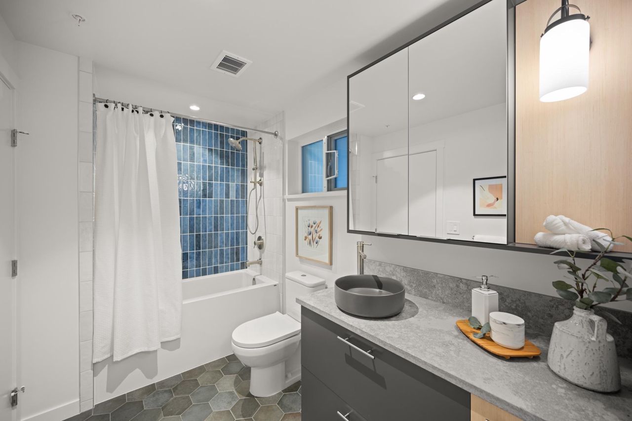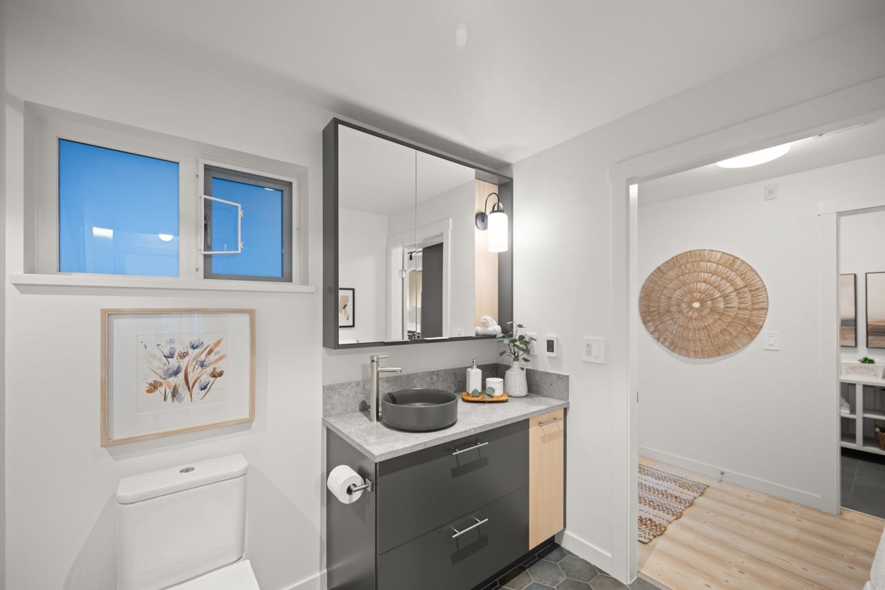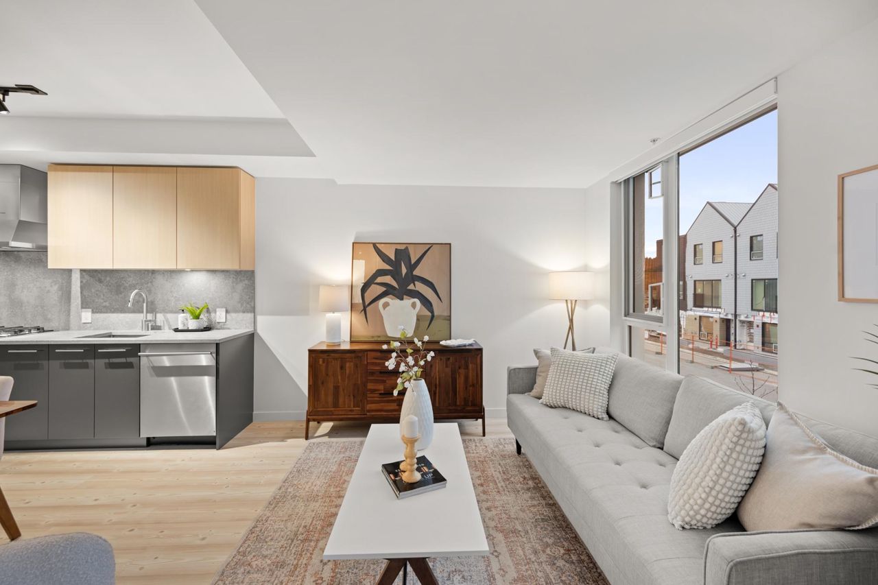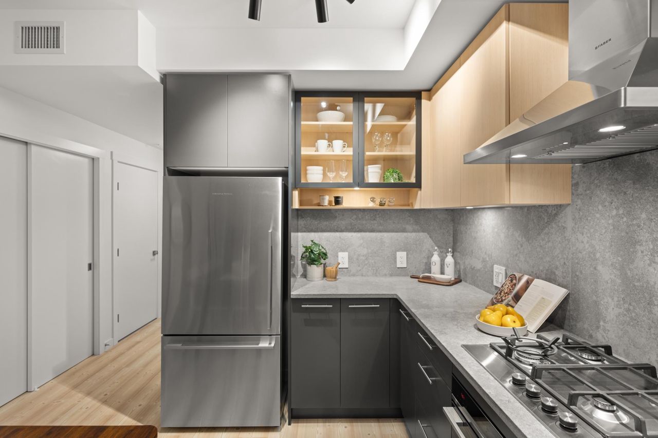 DISTRICT FLATS at Southlands, Beach community in Boundary Bay. This XL 1 bdrm w/ample storage, over-height ceilings, 713sqft of interior space+large, covered balcony w/gas hook-up is absolutely dreamy. Bdrm that fits king sized bed, spacious bathroom w/in-floor heating & window, glass entry door allows light to flood your home from East & West. Refined industrial interior design w/premium finishes, Fisher & Paykel appl. Shared courtyard & outdoor dining area design by van der Zalm. In the heart of Market District w/Prado Coffee, The Hub Refillery, Pedego E-bikes, Red Barn, Farmers Market, The Grange, Amphitheatre, Earthwise Garden & Farm. Steps to The Best Beach in Lower Mainland if you ask me (and I only tell those I like). Upsizing? Downsizing? Come by to appreciate it!
