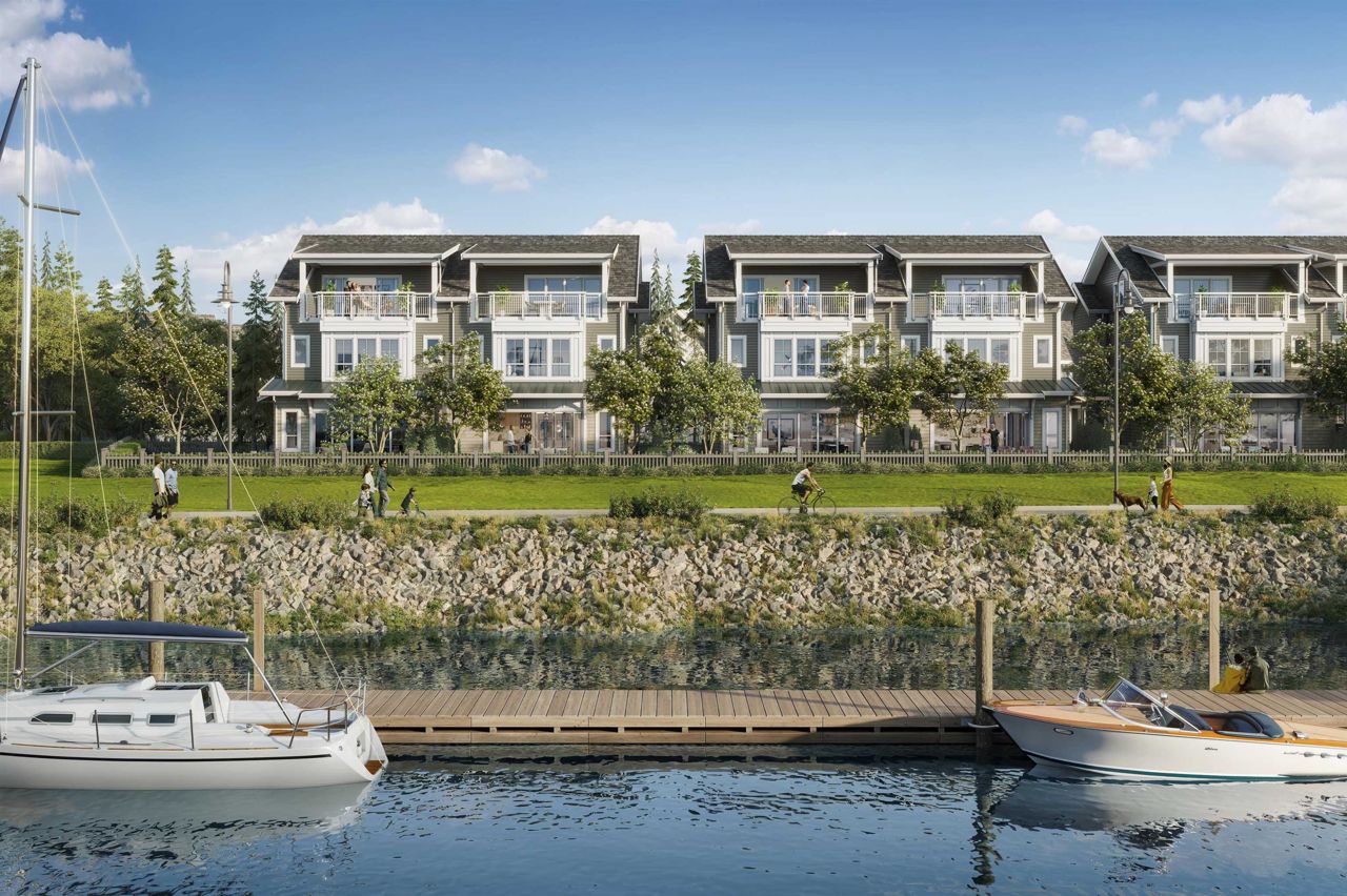 DUPLEX-STYLE 4 bed, 4.5 bath waterfront home apart of Westhampton by Polygon's Marinaside Collection in masterplanned community of Hampton Cove in Ladner. Enjoy 2,720 sq. ft. of living space with overheight ceilings on all 3 levels with beautiful water views. Integrated kitchen appliances include a wine fridge, gas cooktop and large central island. Indoor-outdoor living combined with accordion-style doors off the kitchen and living area leading to a spacious patio and fenced yard. Upstairs has a recreation room and a covered deck approx 13x20 with a gas outlet for a fire pit. 4 car parking with EV rough-in. AC available! Hampton Cove residents enjoy exclusive access to the Hampton Club - a 12,000 square foot residents-only clubhouse. Visit us at our sales office, daily except Fridays 12-6