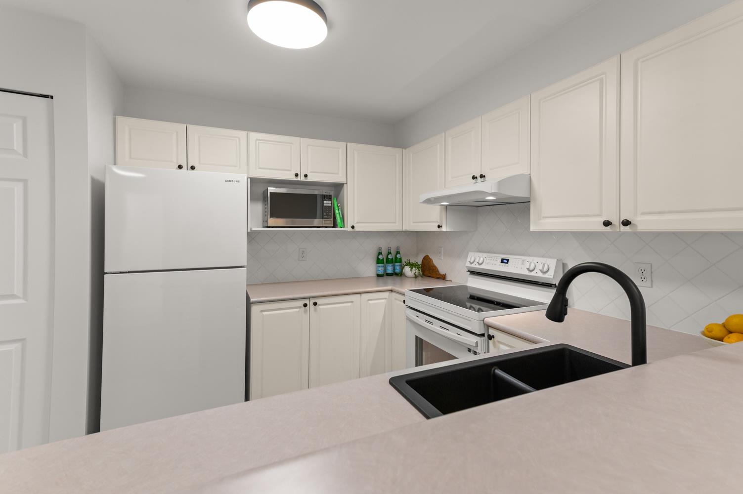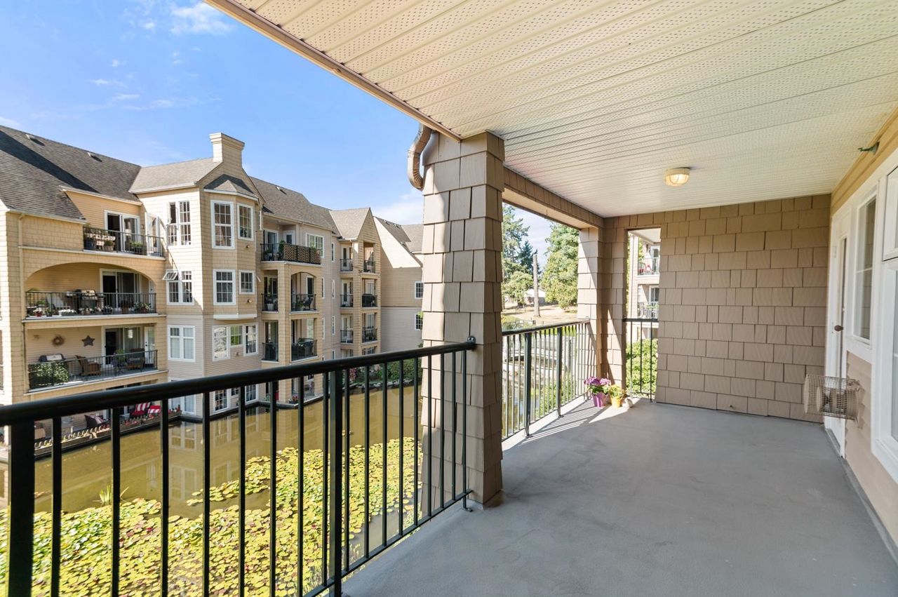 Superbly located, this premium 2 bed, 2 bath suite at Windsor Woods enjoy expansive and tranquil outlooks to the private lagoon and fountains below. Recently updated throughout, this 948 SF lovely suite offers brand new flooring, fresh contemporary paint, updated lighting, bath and kitchen fixtures and hardware, and all brand new appliances. Bright and spacious, the unit opens to an expansive covered balcony to enjoy year round. Ideally located adjacent to Highland Park and walking distance to Tsawwassen's town centre. 1 parking and 1 large locker included. This is easy living.