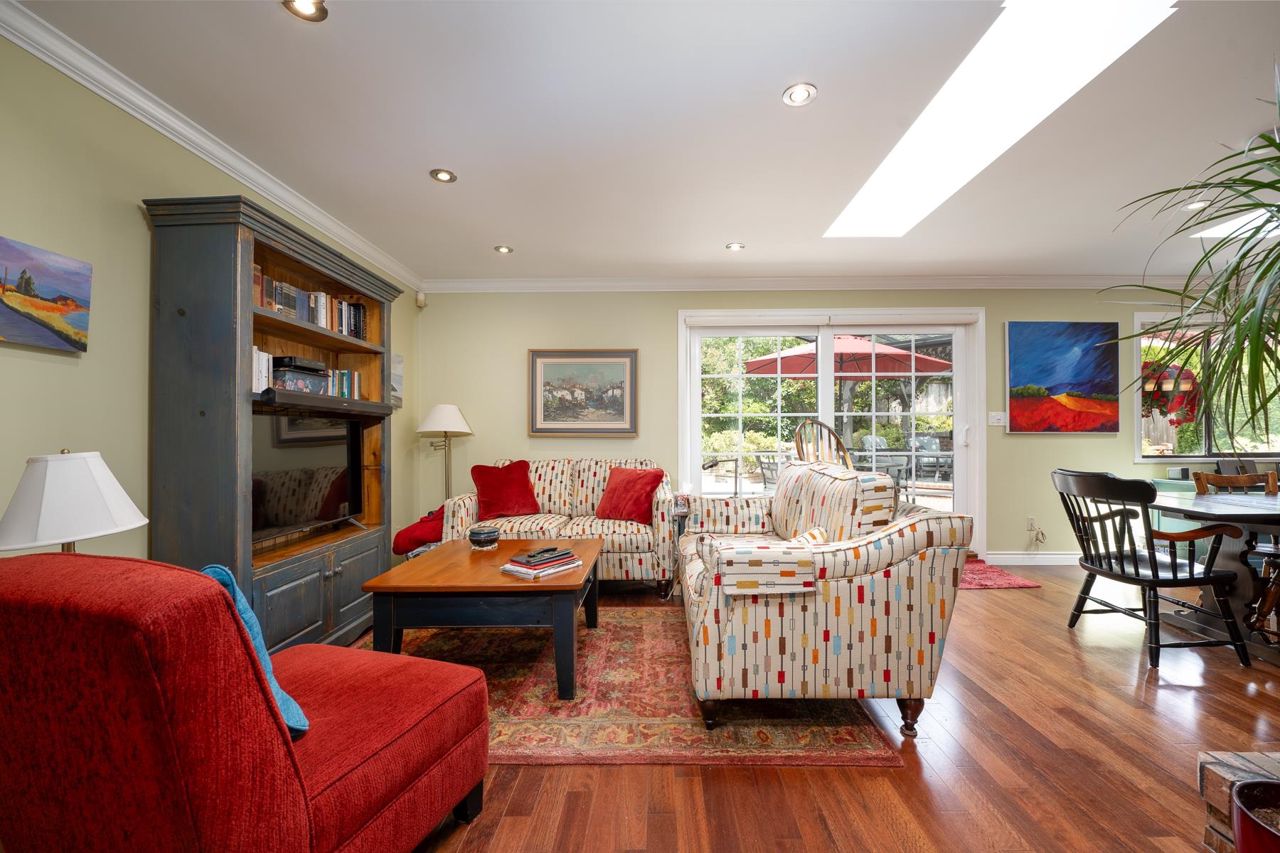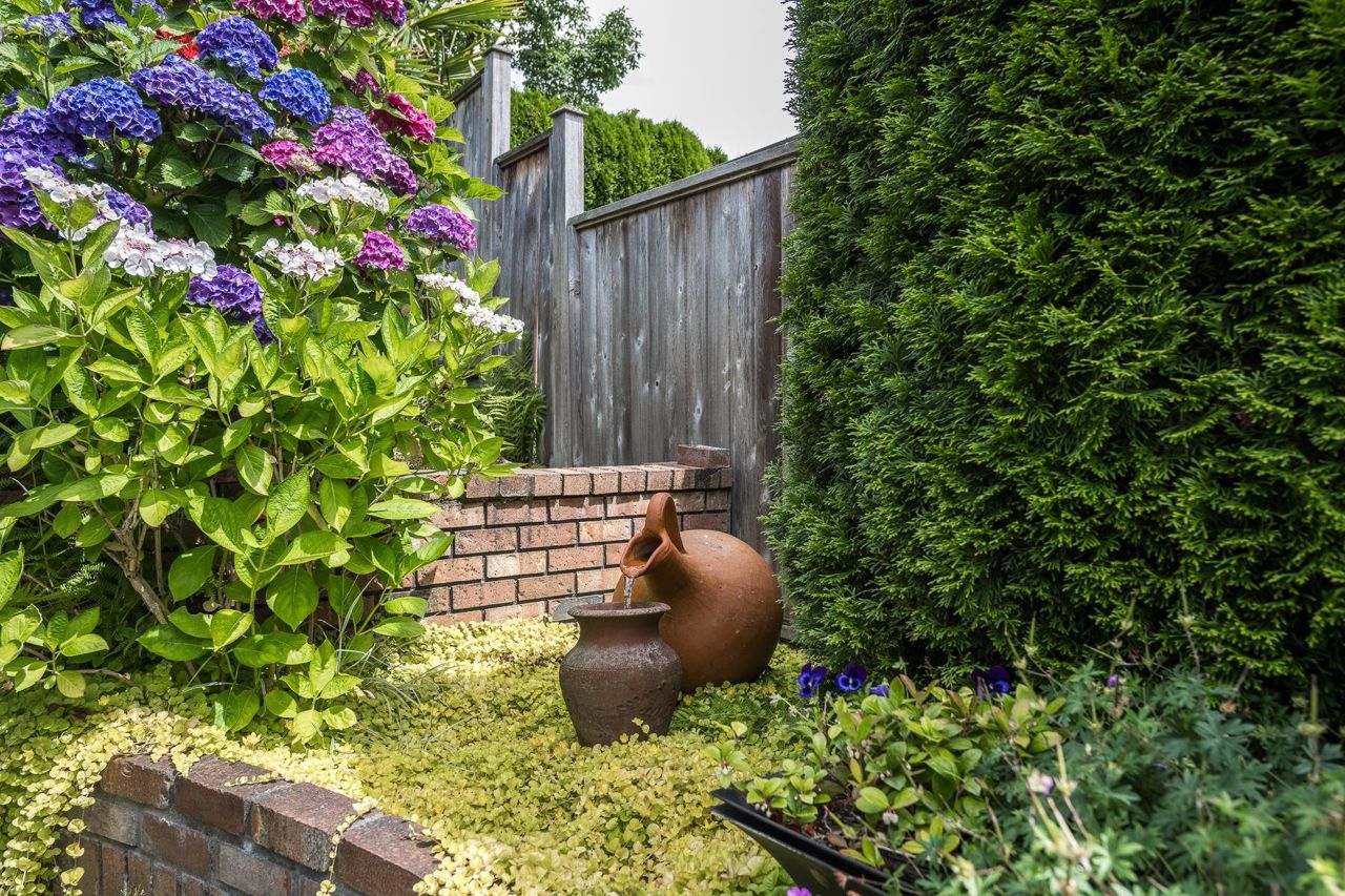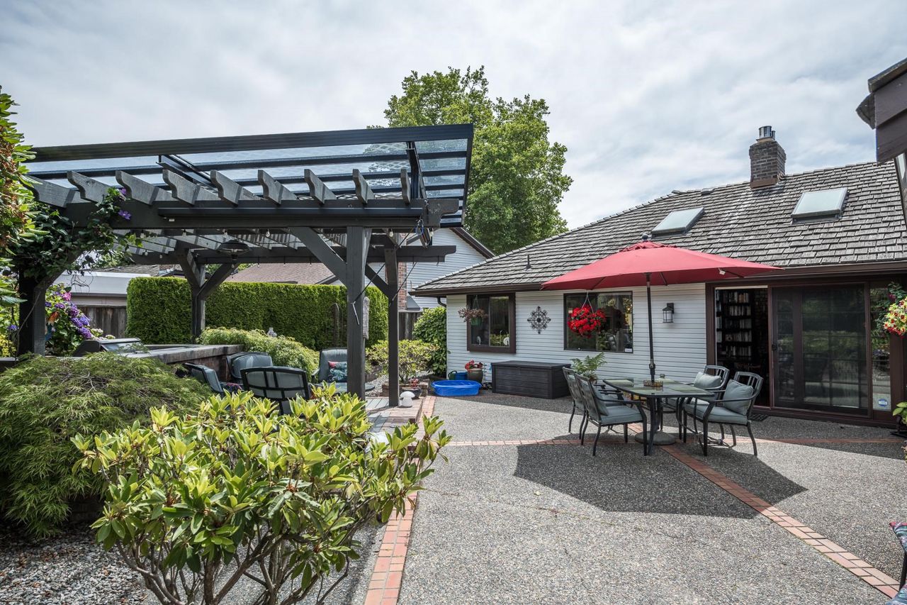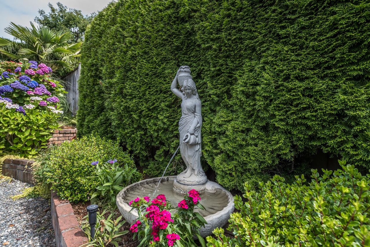 4 Bedroom Rancher – Quality built & beautifully maintained in Forest By The Bay. This home offers an extremely functional floor plan with grand living dining and family room space open to a beautiful manicured private back garden. The outdoor living space offers year-round enjoyment with aggregate patios, mature perennial landscaping, covered pergola with bbq area, and full irrigation. Upgrades include eucalyptus hardwood flooring in main living areas, updated ensuite w/seamless glass shower, new gas fireplace inserts, remote blinds, new perimeter drainage, new exterior paint , Navien hot water, newer garage doors. separate outdoor artists' studio with heat and electric. 5 min walk to town center, lawn bowling and rec center!