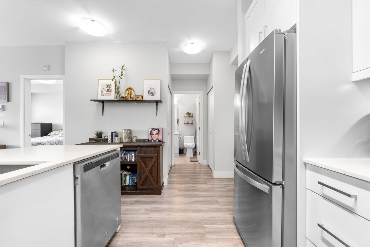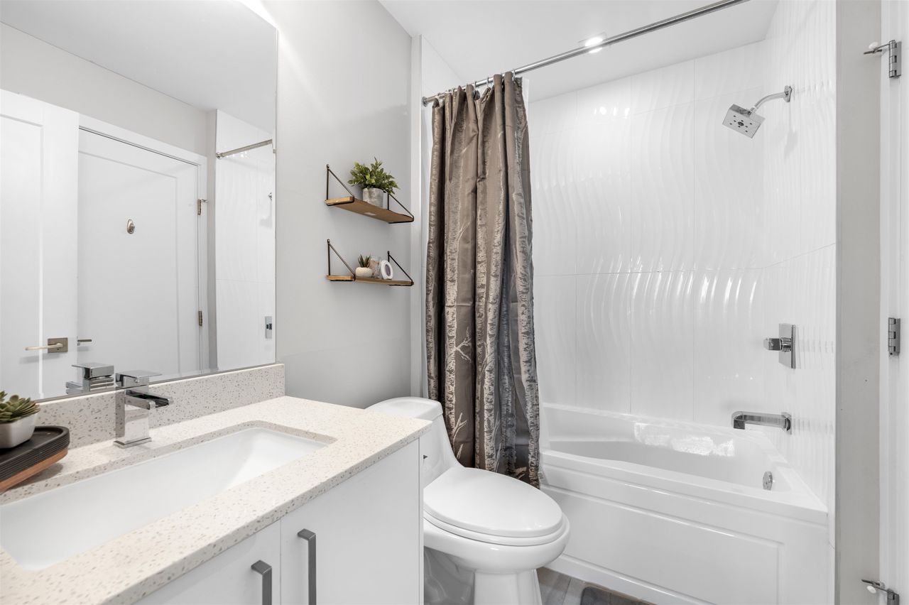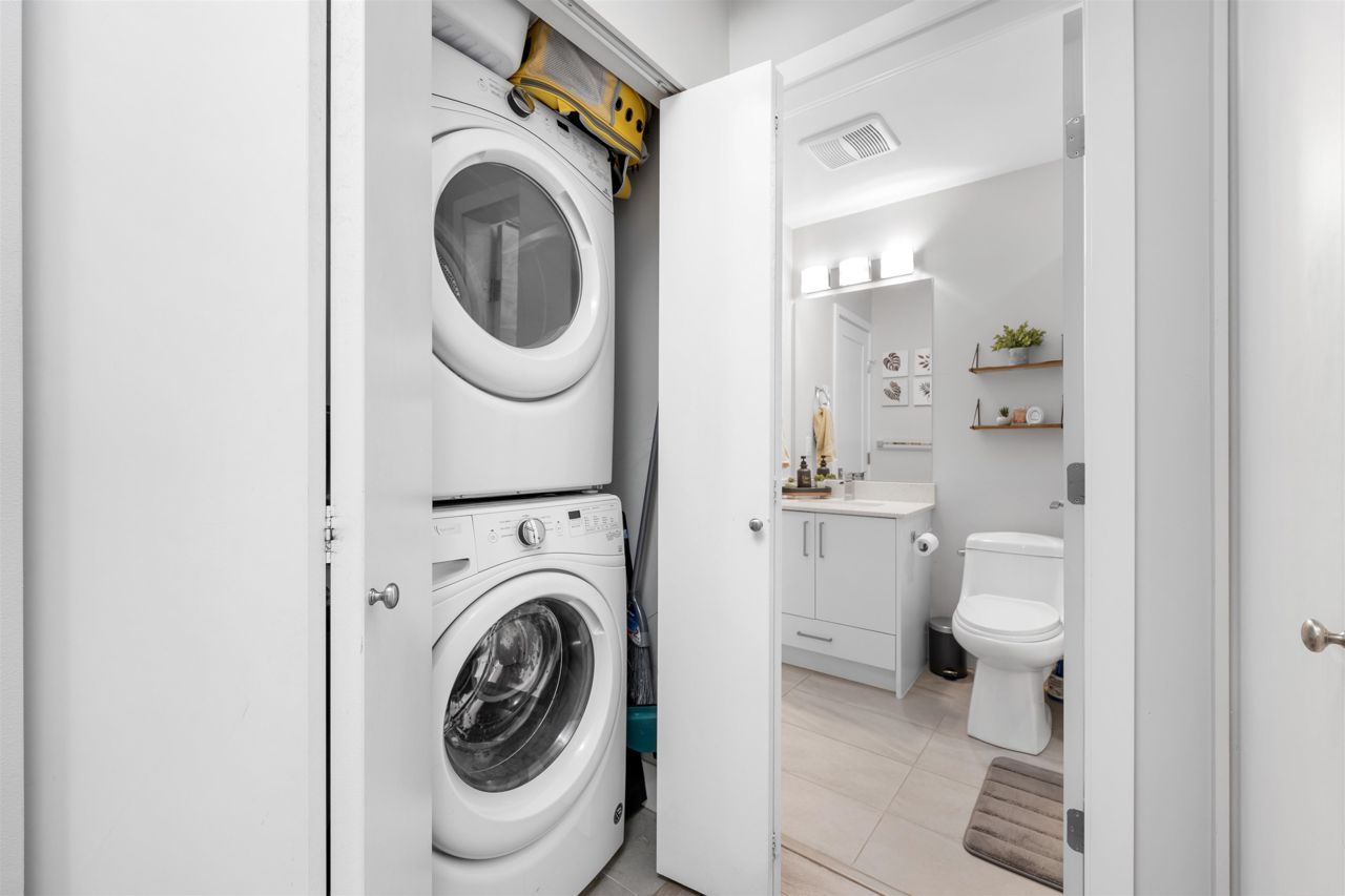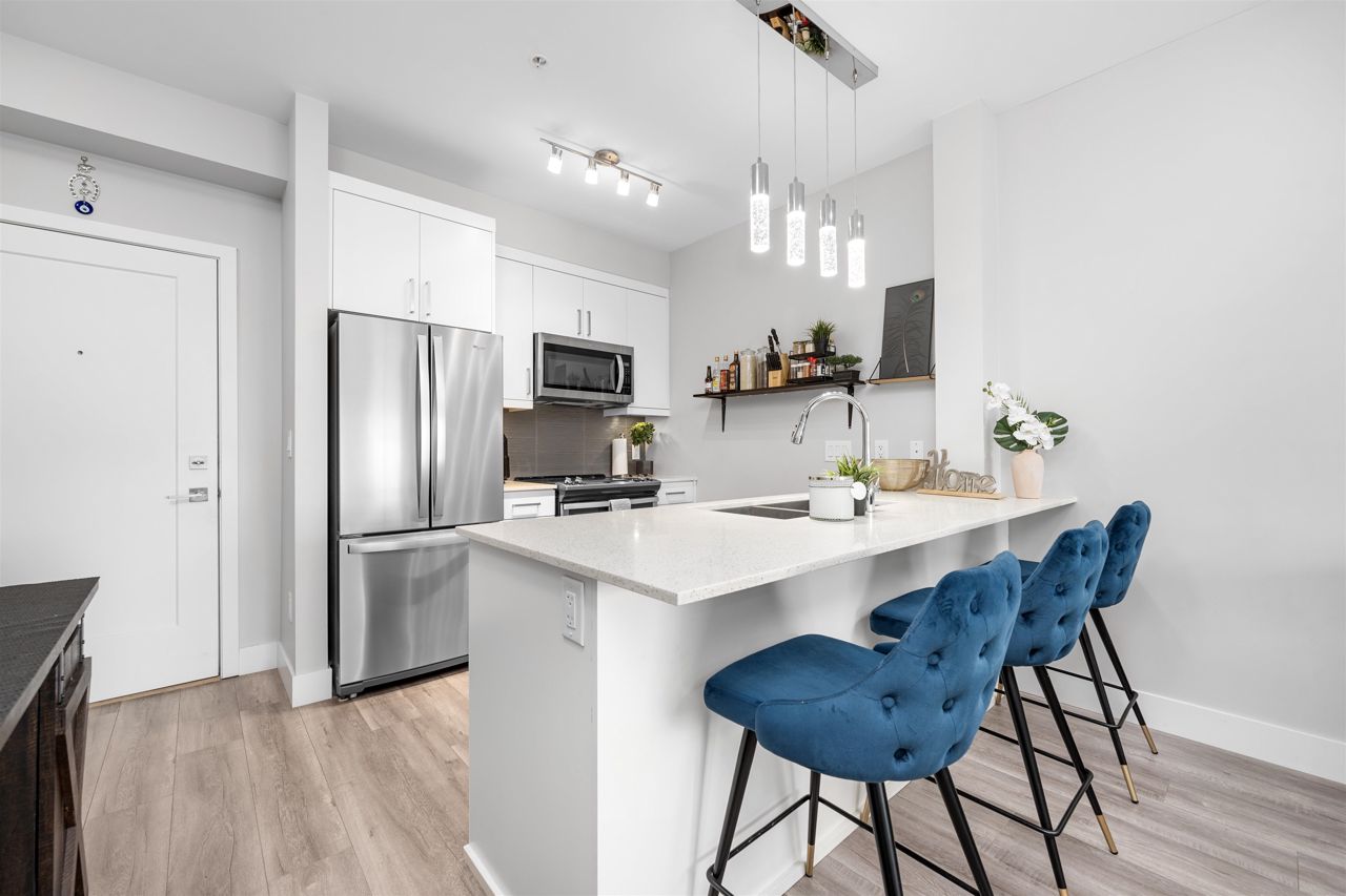 Welcome to your spacious and elegantly appointed 1 bedroom home in North Delta! This inviting unit features expansive 9-foot ceilings that enhance the sense of openness, sleek quartz countertops complemented by soft-touch cabinetry, a large balcony perfect for outdoor relaxation, a spacious primary bedroom with direct access to the balcony and a cheater ensuite bathroom for functionality. Enjoy access to fantastic amenities including a social lounge, exercise room, and a rooftop patio offering panoramic views. Situated in a convenient location close to malls and transit, this home offers both comfort and accessibility. 2 pets allowed, 1 parking and 1 locker included.