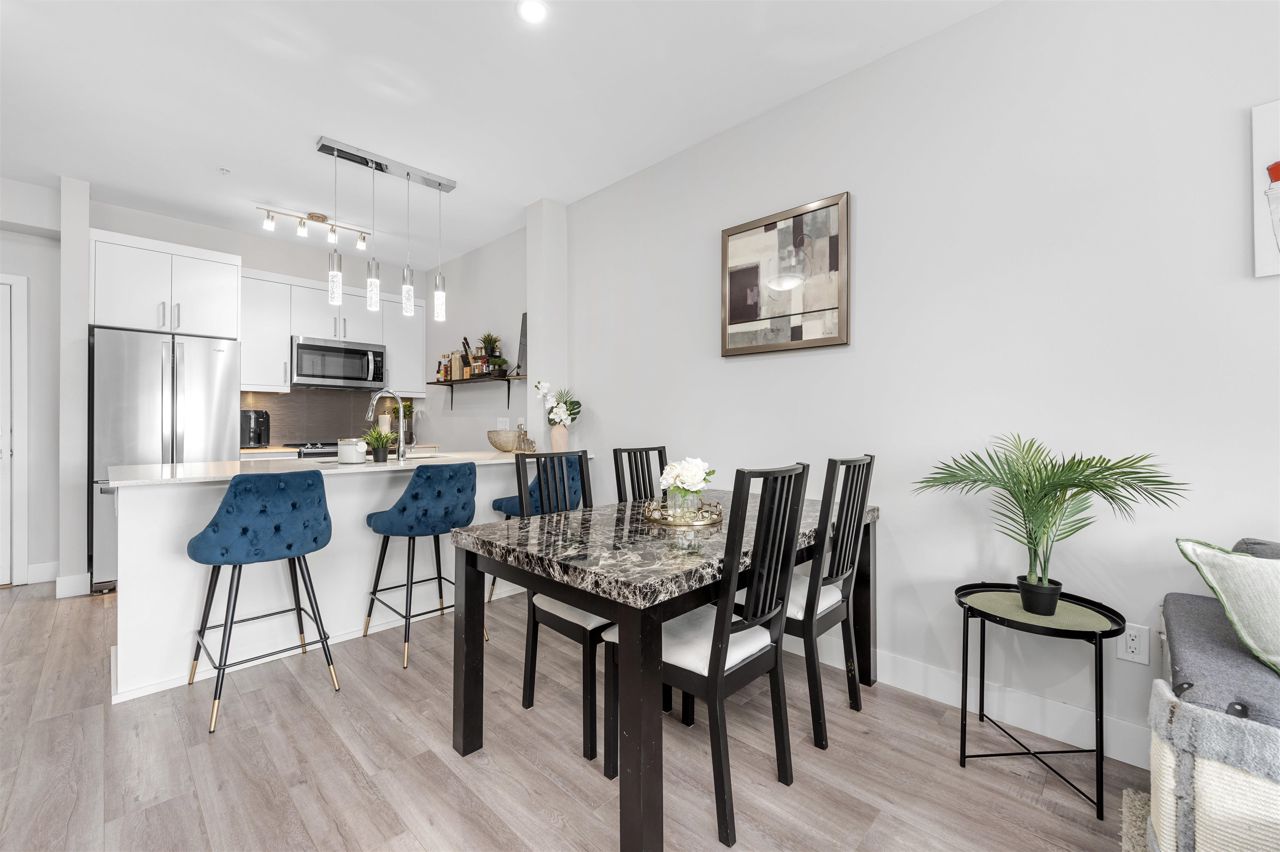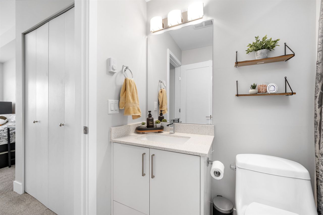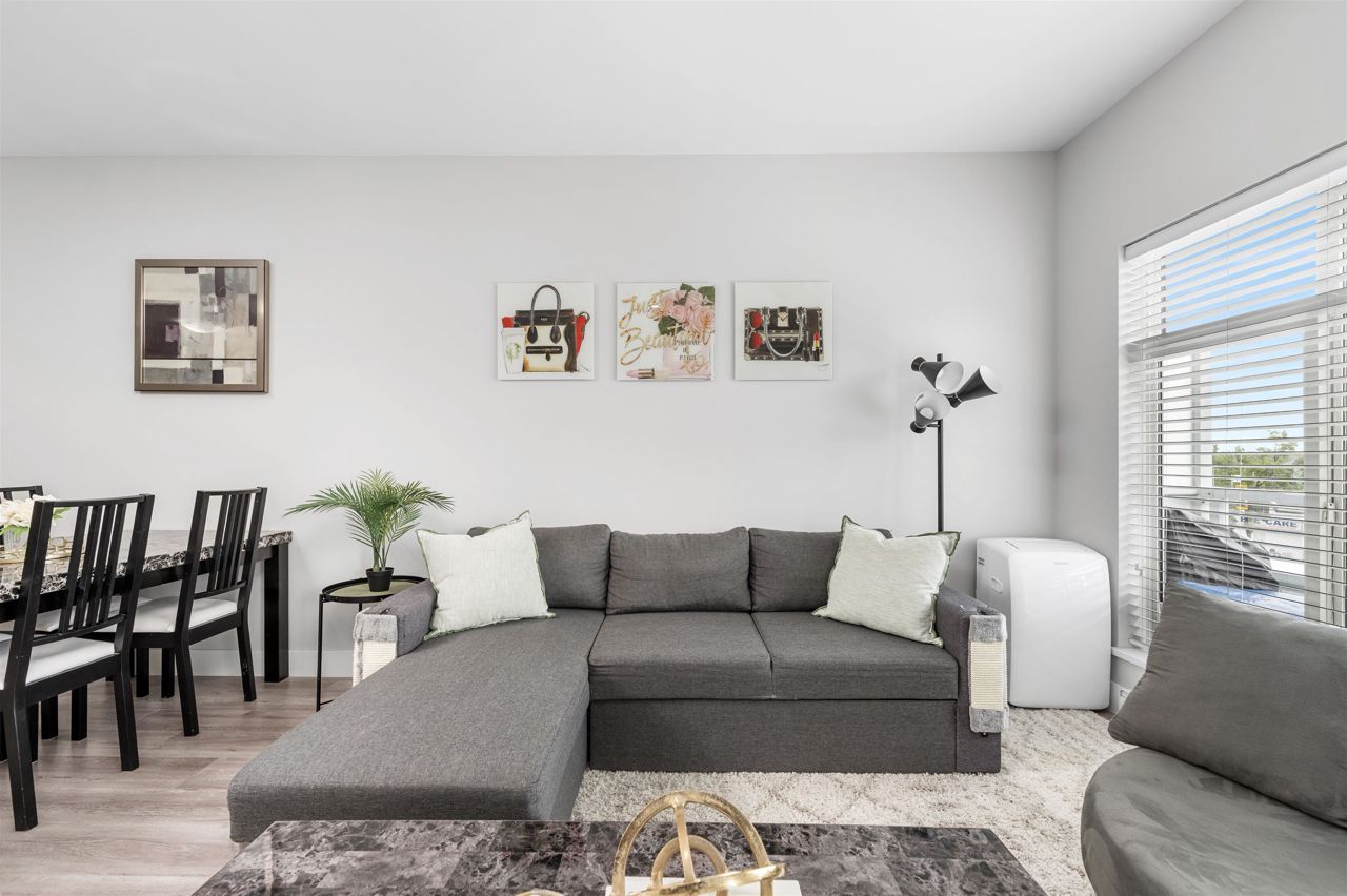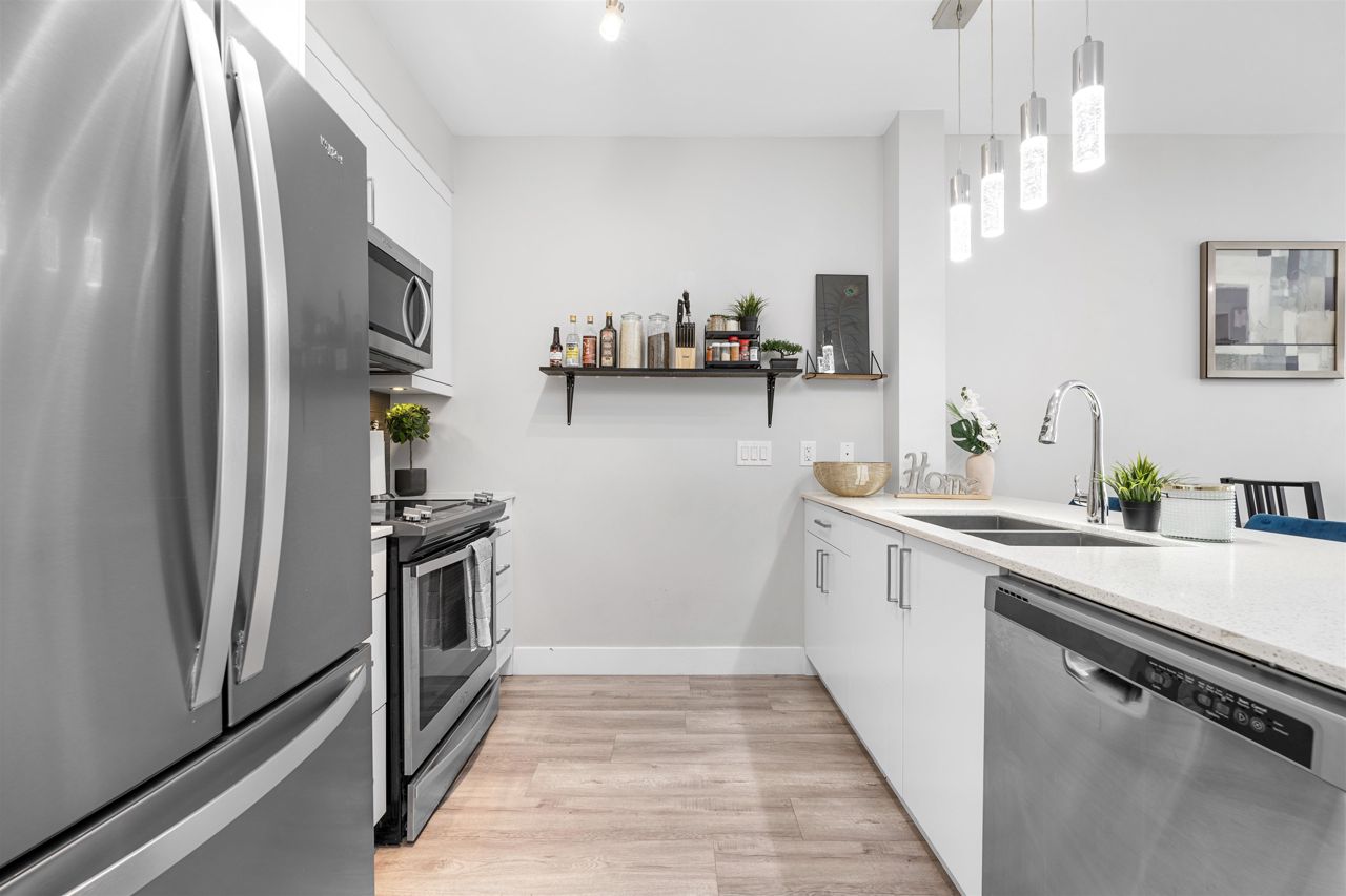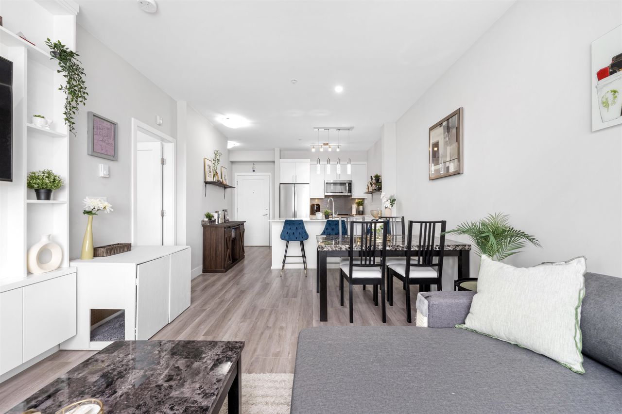 Welcome to your spacious and elegantly appointed 1 bedroom home in North Delta! This inviting unit features expansive 9-foot ceilings that enhance the sense of openness, sleek quartz countertops complemented by soft-touch cabinetry, a large balcony perfect for outdoor relaxation, a spacious primary bedroom with direct access to the balcony and a cheater ensuite bathroom for functionality. Enjoy access to fantastic amenities including a social lounge, exercise room, and a rooftop patio offering panoramic views. Situated in a convenient location close to malls and transit, this home offers both comfort and accessibility. 2 pets allowed, 1 parking and 1 locker included.