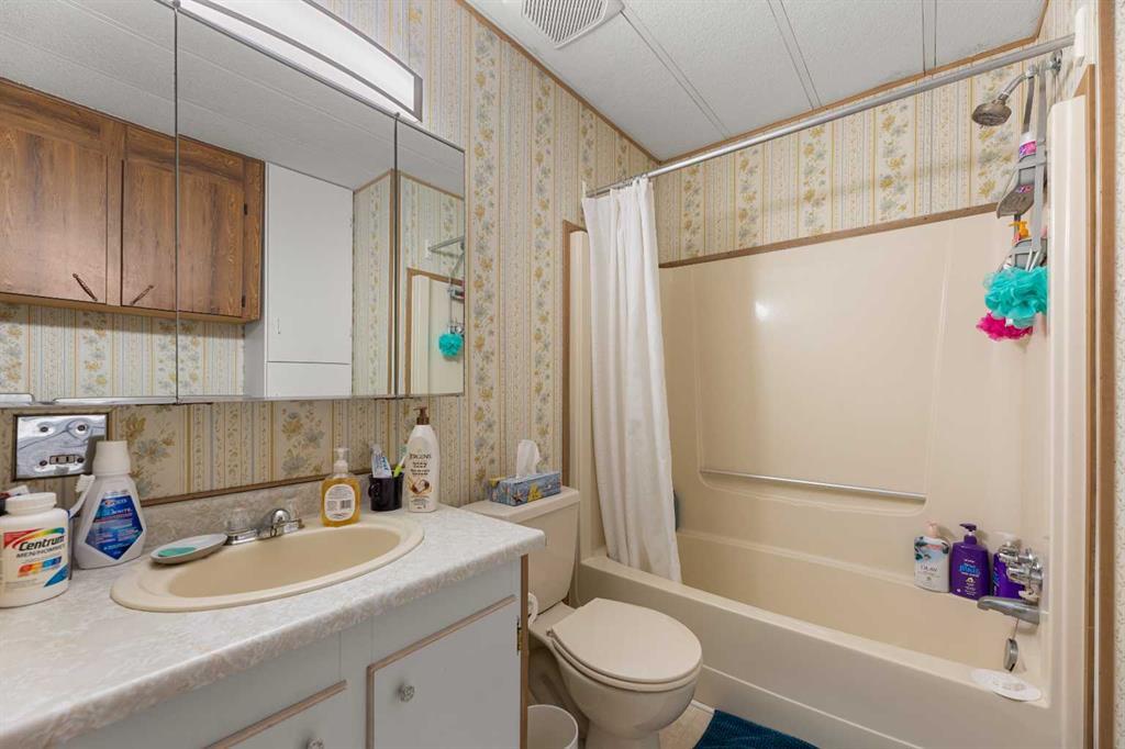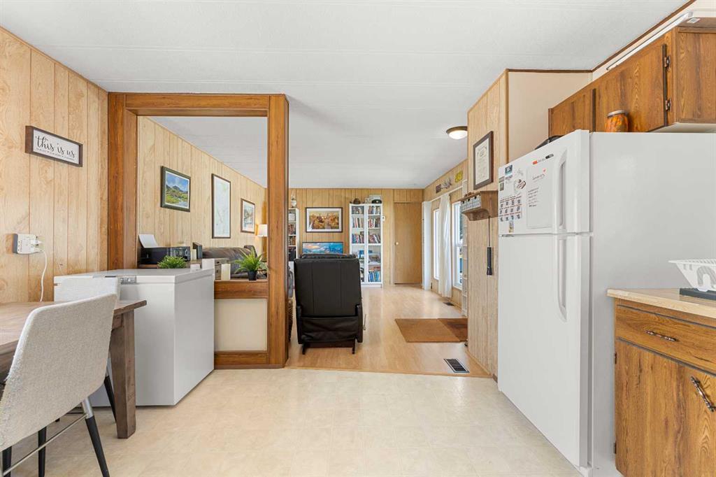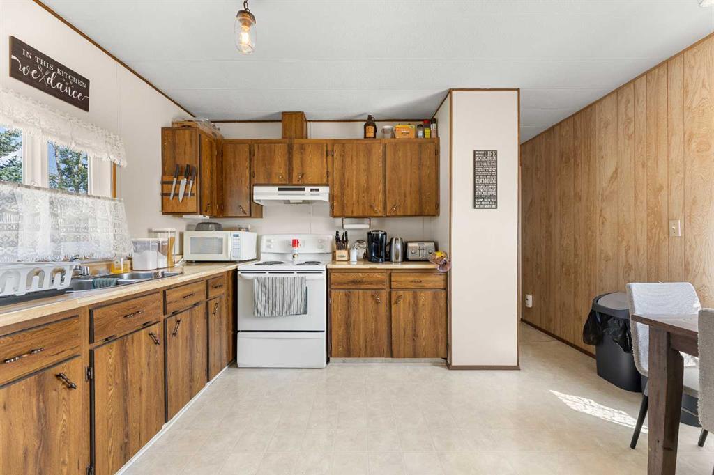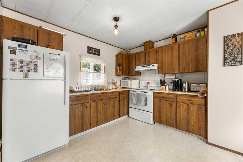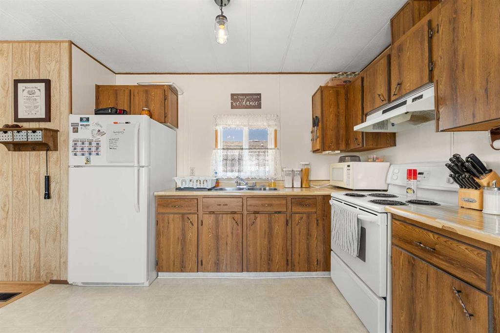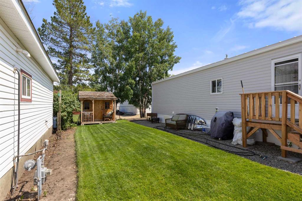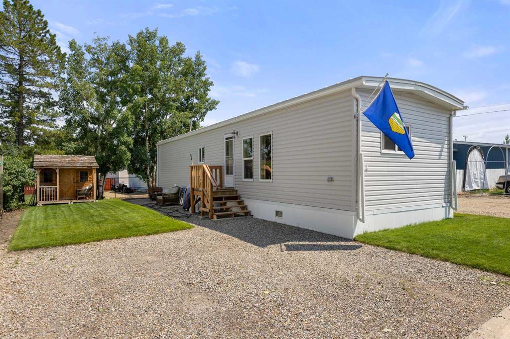 THIS COULD BE YOUR NEXT HOME!!! This is an extremely well maintained and renovated mobile in the Didsbury Mobile Home Park. It is an older model but the current owners have done some big ticket items here that you will most certainly benefit from including: new roof and sheathing, new siding and sheathing (both taken right down to the studs-this project alone was over $30K), new doors, new windows, hot water tank, bathroom vent and more. No expense was spared when remodeling. This unit was moved in a few years ago and so they also did major landscaping including new sod and a new shed. The inside is as clean as a whistle and has an open floor plan. There is an eat in kitchen with plenty of cabinets, large living room, 2 bedrooms and a bathroom/laundry combo. I have not seen an older model in this great of condition ever so if you are needing something affordable and ready to move into you will want to check this one out. Its very clean, very well maintained and has a lovely yard! Buyers will need to be approved by the park manager. Call today to book your viewing! (id:22211)